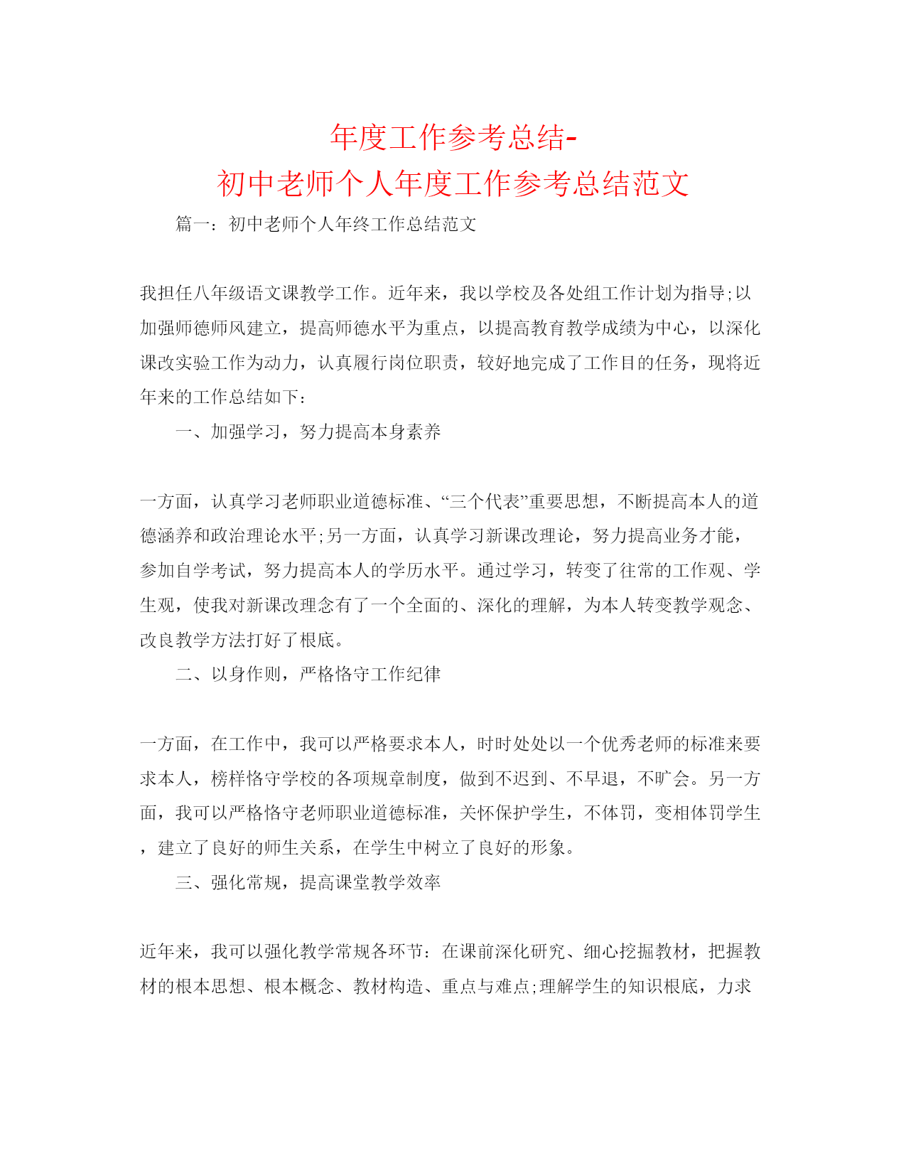 2022年度工作参考总结初中教师个人年度工作参考总结范文.docx