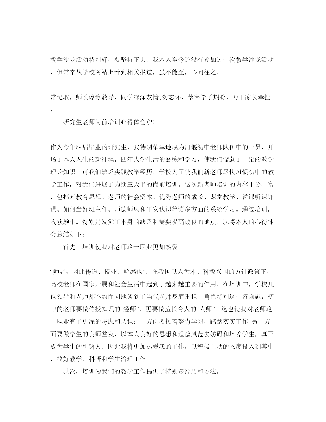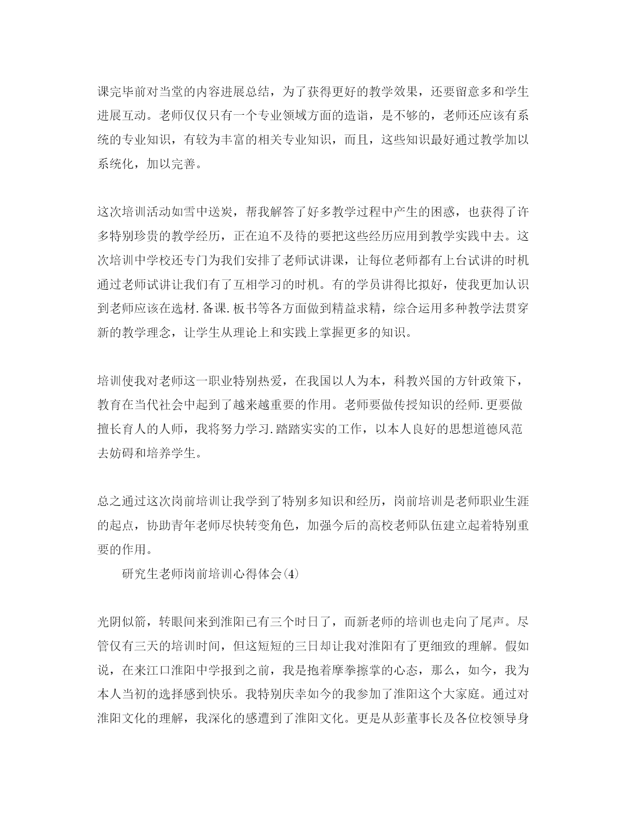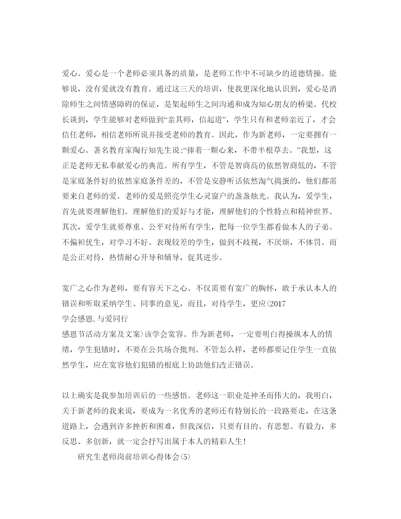 2022研究生教师岗前培训参考心得体会5篇.docx