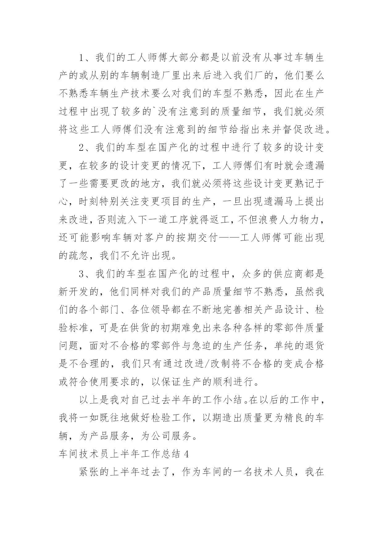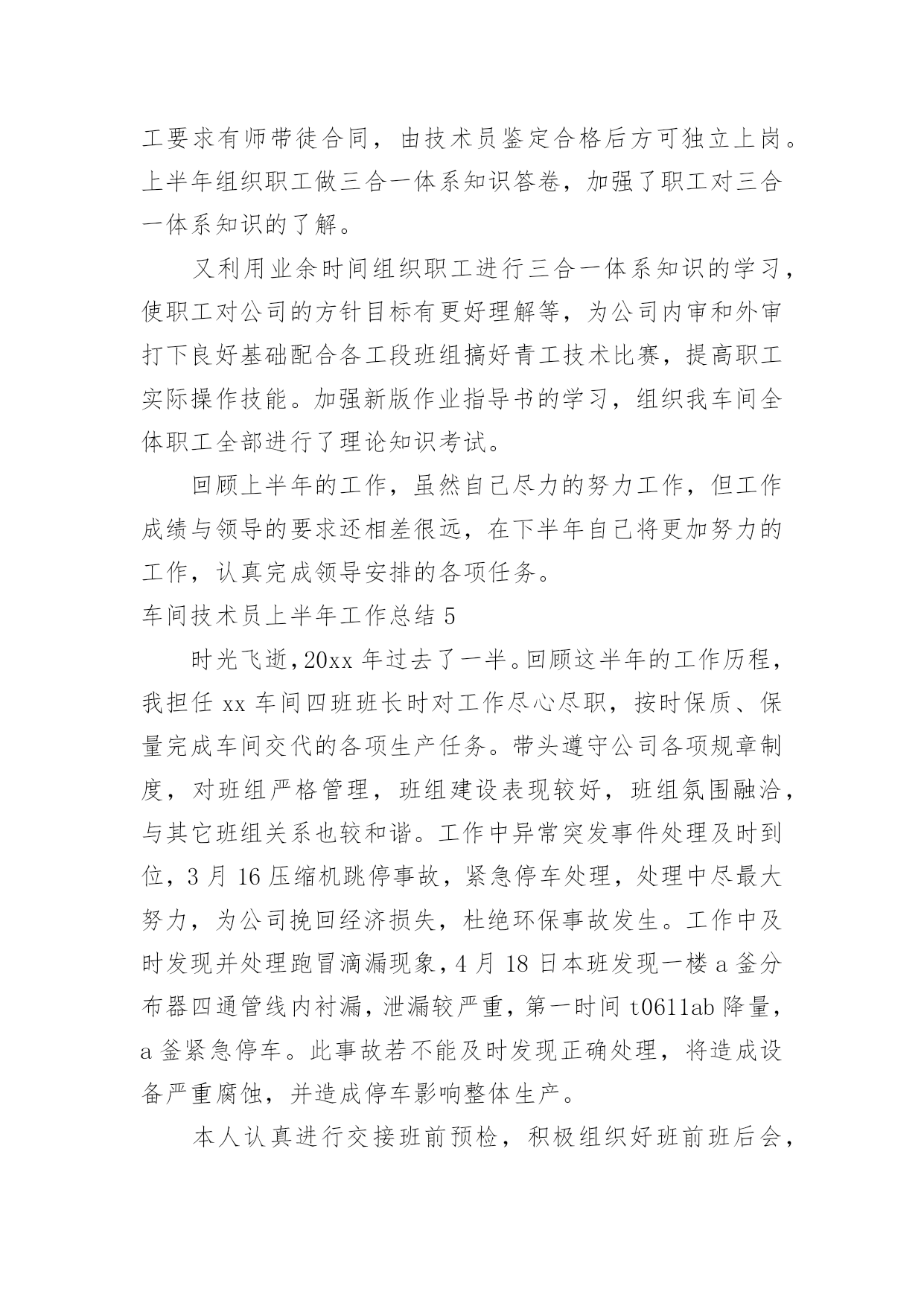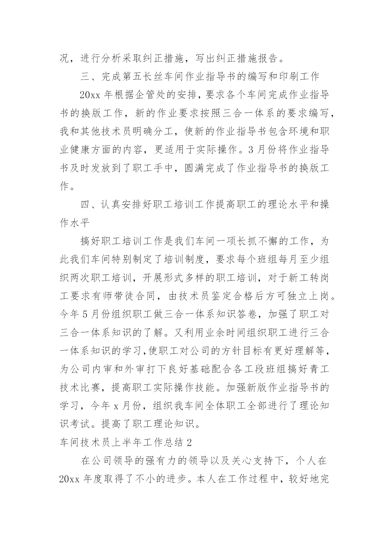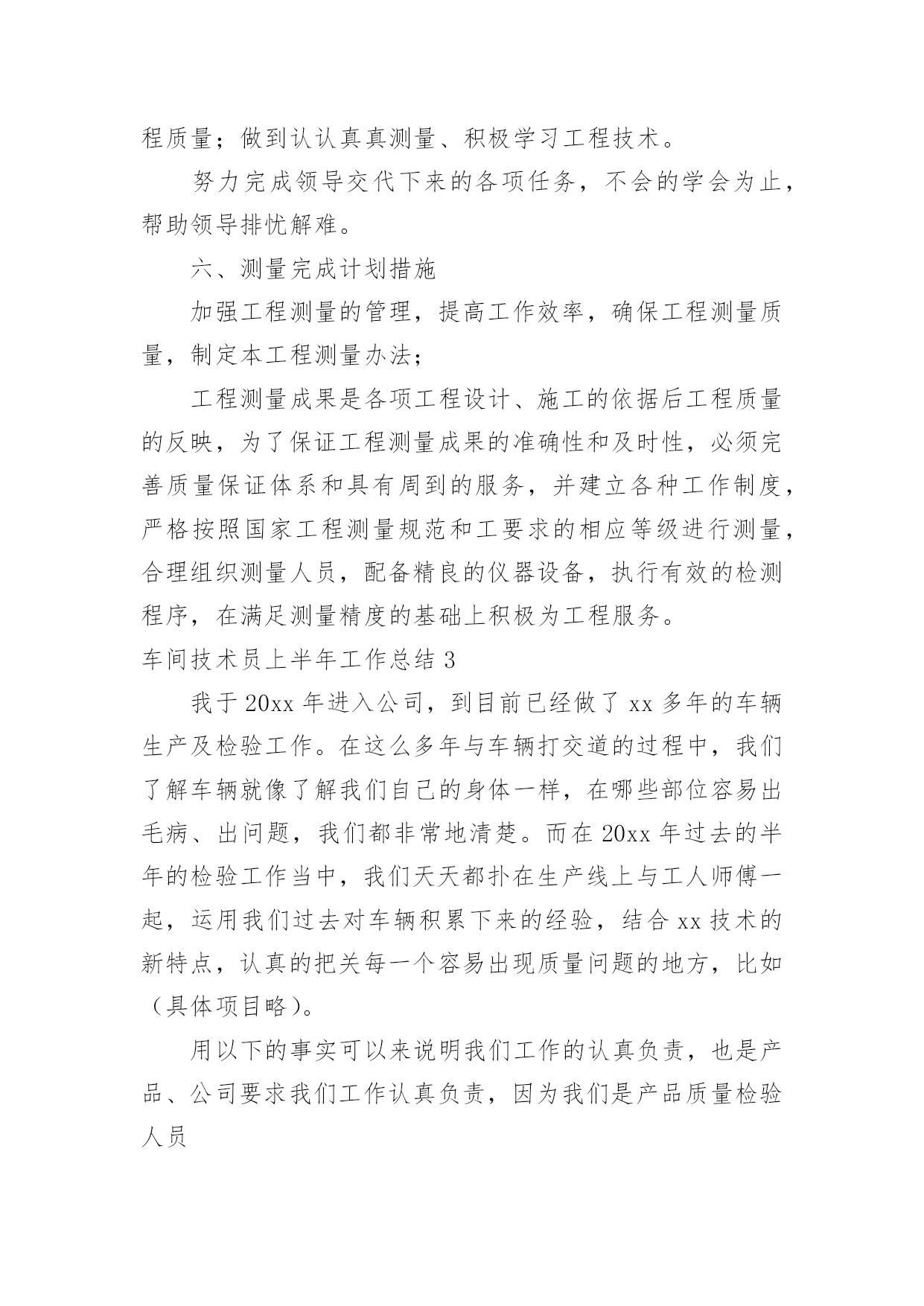 车间技术员上半年工作总结车间技术员上半年工作总结总结是指对某一阶段的工作、学习或思想中的经验或情况加以总结和概括的书面材料,他能够提升我们的书面表达能力,因此我们需要回头归纳,写一份总结了。那么我们该怎么去写总结呢?下面是小编收集整理的车间技术员上半年工作总结,仅供参考,欢迎大家阅读。车间技术员上半年工作总结1紧张的20xx年过去了一半,过去的半年可以说是不平凡的半年,作为车间的一名技术人员,我在车间领导和同志们的关心和支持下,通过努力工作,为企业做出了应有的贡献。在过去的半年中,我在工作和生活中高标准要求自己,做了很多工作,现将半年来的工作总结如下一、加强政治理论和技术知识学习,全面提高自己的政治文化素质和业务水平在20xx年上半年度的工作中,我紧跟时代的步伐,加强理论知识方面的学习,通过阅读《xxx》,努力做到认识上有新提高、运用上有新收获,达到指导实践、促进工作、提高工作水平和服务能力的目的,同时学习了社会主义荣誉,并及时写思想江报,积极向党组织靠拢,争取早日成为一名共产党员在工作中不断的学习新技术新工艺,不断的充实自己,不断的提高自己的技术水平,来指导自己的工作。二、工作中发扬团队合作精神,努务完成车间的生产任务1、在平时的工作中,首先做好日常工作,我与车间其他技术员既有分工又有合作,坚持经常和其他技术员进行工作交流,充分发扬民主,杜绝独断专行,统一思想统一步骤,从而圆满完成车间的各项生产任务。20xx年上半年配合其他技术员根据车间可纺性合理安排小修机台和换喷头机台,累计改纺413台,十几个品种。2、根据行业协会的精神,20xx年x月份公司要求xx车间北区停车,我配合其他技术员做好停车期间的工艺处理和平时的串碱工作,并把在工作中遇到的问题及时向车间领导汇报,安排相关人员解决x月份北区开车,做好开车前期的准备工作,做好工艺处理,提前将各项工艺参数调整到位,确保开车成功,保证产品质量车间技术员年终总结工作总结。3、由于xx车间长期纺木桨,导丝轮废丝多,可纺性差,我经常和原液车间的技术员沟通,反映车间的可纺性情况,并与职能处室的技术员多联系沟通,希望能够改变桨粕的配比来提高可纺性,今年公司采取了使用多种桨粕混用的办法,大大提高了可纺性。满筒率由原来的不足80%上升到了现的85%左右。4、每月将车间的生产情况进行一次总结,及时将总结上交到技术处;将车间的`主材消耗进行总结,及时上交计划处。做好统计技术分析工作,将车间生产中出现的异常情况,进行分析采取纠正措施,写出纠正措施报告。三、完成第五长丝车间作业指导书的编写和印刷工作20xx年根据企管处的安排,要求各个车间完成作业指导书的换版工作,新的作业要求按照三合一体系的要求编写,我和其他技术员明确分工,使新的作业指导书包含环境和职业健康方面的内容,更适用于实际操作。3月份将作业指导书及时发放到了职工手中,圆满完成了作业指导书的换版工作。四、认真安排好职工培训工作提高职工的理论水平和操作水平搞好职工培训工作是我们车间一项长抓不懈的工作,为此我们车间特别制定了培训制度,要求每个班组每月至少组织两次职工培训,开展形式多样的职工培训,对于新工转岗工要求有师带徒合同,由技术员鉴定合格后方可独立上岗。今年5月份组织职工做三合一体系知识答卷,加强了职工对三合一体系知识的了解。又利用业余时间组织职工进行三合一体系知识的学习,使职工对公司的方针目标有更好理解等,为公司内审和外审打下良好基础配合各工段班组搞好青工技术比赛,提高职工实际操作技能。加强新版作业指导书的学习,今年x月份,组织我车间全体职工全部进行了理论知识考试。提高了职工理论知识。车间技术员上半年工作总结2在公司领导的强有力的领导以及关心支持下,个人在20xx年度取得了不小的进步。本人在工作过程中,较好地完成了20xx年上班年度工作目标。下面我将这半年来的具体工作情况汇总如下一、认认真真,做好本职工作在xx项目中坚持完成了领导交办的各项任务,尽量做到让领导满意;在测量过程中遵章守纪,服从管理,做好本职工作;对测量工负责。熟悉设计图纸和施工图纸,严格执行测量技术和操作流程;按照规定的测量精度进行施测,确保精度和测量数据准确;施测后对测量成果进行复核工作;做好测量记录和定期对测量控制点测复查,确保测量数据正确;施测后对测量仪进行保养工作定期对测量仪进行自检自校;施工过程中,发现问题及时上报;在本职测量工作中没出现过较大失误。在xx5标项目中暂代技术负责认真完成领导安排的工作,做到尽职尽责。在各项目中一直工作在施工队第一线,对施工现场运作非常了解所以做起现场技术负责比较得心应手。在施工过程中认真履行规范要求严格细心发现并解决质量问题,工程质量和进度完成的比较顺利。二、自觉加强理论学习,努力提高政治思想素质,积极上进加强理论学习,首先是从思想上