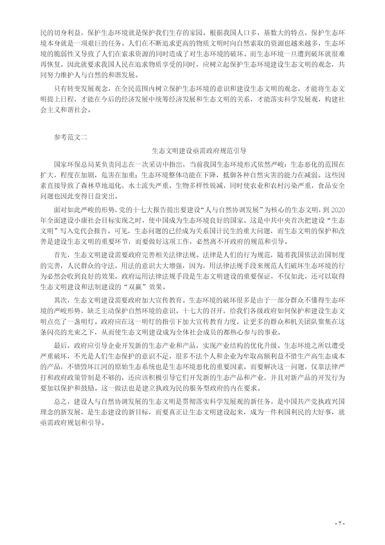 2007年天津市公务员考试《申论》真题(秋季)及参考答案