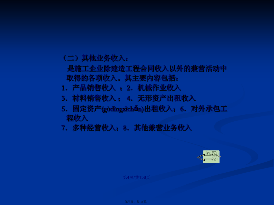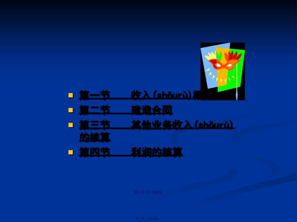 会计学第一节收入(shōurù)概述二、工程(gōngchéng)价款的核算71114第二节建造(jiànzào)合同313233343536373839404142434445464748495051525354555657585960616263646566676869707172737475767778798081828384858687888990919293979899100101102103104105106107108109110111112113114115116117118119120121122123124125126127128129130131132133134135136137138139第三节其他(qítā)业务收入的核算一、其他(qítā)业务收入的确认143二、其他(qítā)业务收入的核算第四节利润(lìrùn)的核算