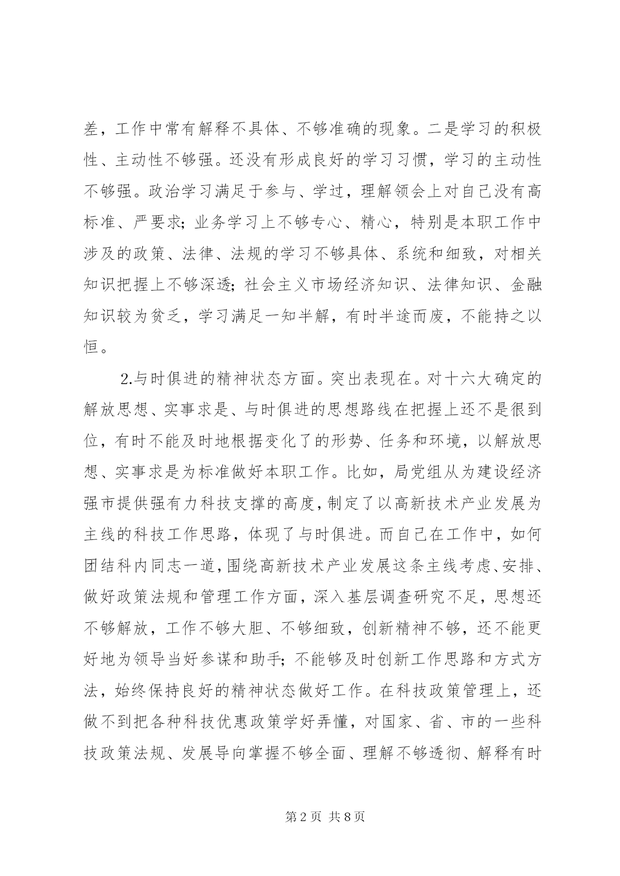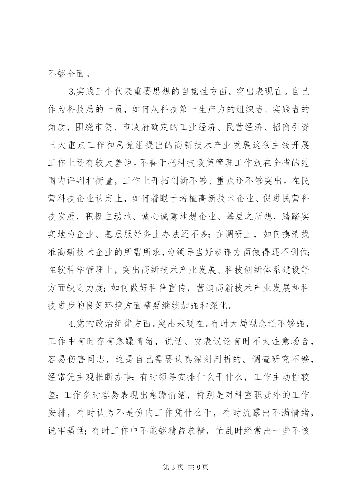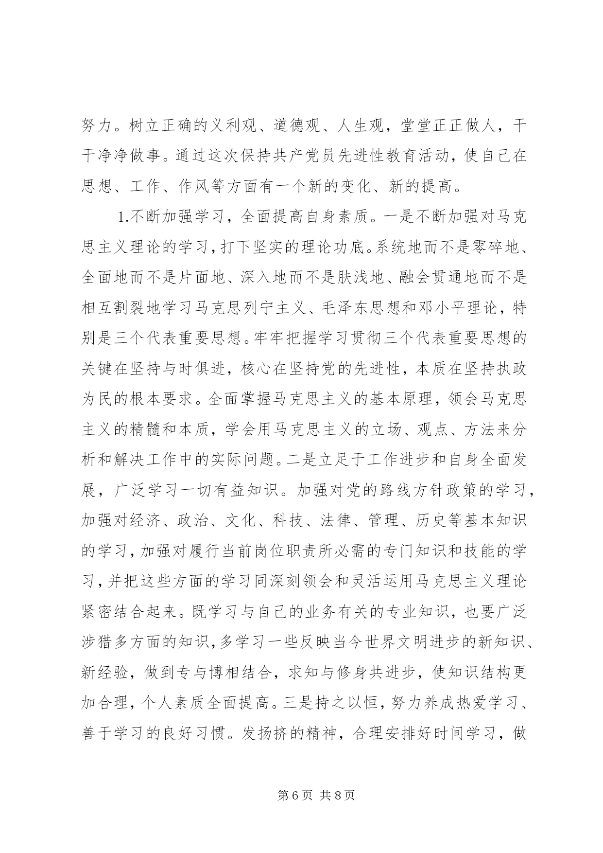 第PAGE\*Arabic\*MERGEFORMAT8页共NUMPAGES\*MERGEFORMAT8页个人党性剖析材料(公务员版)根据局保持共产党员先进性教育活动领导小组的要求,近段时间,我自己结合回头看过程中查摆的问题和不足,通过征求党员同志意见、建议、听取党小组和党组反馈意见,找出了自己在党性方面存在的突出问题和不足,并查找了根源。对存在的问题和不足,自己进行了认真反思,总觉着:党员同志们从爱护、帮助的角度提出的这些问题和不足,确实提到了点子上,对自己今后的工作、学习和做人具有非常重要的指导作用。自己从内心深处对党员同志们的关心和帮助表示感谢,并将在今后工作中努力加以改正。一、存在的主要问题和不足对存在的问题和不足,自己也从党性方面,对照党员先进性标准进行了深刻剖析,认为突出表现在八个方面:就是自身素质还需要不断提高,不能始终保持与时俱进的精神状态,中心意识不到位,工作标准太低,大局观念树立的不够牢固,服务水平、工作效率不高,工作的主动性和组织纪律性不强等方面。⒈自身素质方面。突出表现在。一是政治思想素质不够过硬。对党的一些大政方针只求学过为止,理解上不深不透,特别是对三个代表重要思想的学习领会还处在浅尝辄止的状态,一些关键点、创新点认真思考领会的非常不到位;对国家、省、市的一些科技政策法规、发展导向掌握的很不全面,理解上有相当大的误差,工作中常有解释不具体、不够准确的现象。二是学习的积极性、主动性不够强。还没有形成良好的学习习惯,学习的主动性不够强。政治学习满足于参与、学过,理解领会上对自己没有高标准、严要求;业务学习上不够专心、精心,特别是本职工作中涉及的政策、法律、法规的学习不够具体、系统和细致,对相关知识把握上不够深透;社会主义市场经济知识、法律知识、金融知识较为贫乏,学习满足一知半解,有时半途而废,不能持之以恒。⒉与时俱进的精神状态方面。突出表现在。对十六大确定的解放思想、实事求是、与时俱进的思想路线在把握上还不是很到位,有时不能及时地根据变化了的形势、任务和环境,以解放思想、实事求是为标准做好本职工作。比如,局党组从为建设经济强市提供强有力科技支撑的高度,制定了以高新技术产业发展为主线的科技工作思路,体现了与时俱进。而自己在工作中,如何团结科内同志一道,围绕高新技术产业发展这条主线考虑、安排、做好政策法规和管理工作方面,深入基层调查研究不足,思想还不够解放,工作不够大胆、不够细致,创新精神不够,还不能更好地为领导当好参谋和助手;不能够及时创新工作思路和方式方法,始终保持良好的精神状态做好工作。在科技政策管理上,还做不到把各种科技优惠政策学好弄懂,对国家、省、市的一些科技政策法规、发展导向掌握不够全面、理解不够透彻、解释有时不够全面。⒊实践三个代表重要思想的自觉性方面。突出表现在。自己作为科技局的一员,如何从科技第一生产力的组织者、实践者的角度,围绕市委、市政府确定的工业经济、民营经济、招商引资三大重点工作和局党组提出的高新技术产业发展这条主线开展工作上还有较大差距。不善于把科技政策管理工作放在全省的范围内评判和衡量,工作上开拓创新不够、重点还不够突出。在民营科技企业认定上,如何着眼于培植高新技术企业、促进民营科技发展,积极主动地、诚心诚意地想企业、基层之所想,踏踏实实地为企业、基层服好务上办法还不多;在调研上,如何摸清找准高新技术企业的所需所求,为领导当好参谋方面做得还不到位;在软科学管理上,突出高新技术产业发展、科技创新体系建设等方面缺乏力度;如何做好科普宣传,营造高新技术产业发展和科技进步的良好环境方面需要继续加强和深化。⒋党的政治纪律方面。突出表现在。有时大局观念还不够强,工作中有时存有急躁情绪,说话、发表议论有时不太注意场合,容易伤害同志,这是自己需要认真深刻剖析的。调查研究不够,经常凭主观推断办事;有时领导安排什么干什么,工作主动性较差;工作多时容易表现出急躁情绪,特别是对科室职责外的工作安排,有时认为不是份内工作凭什么干,有时流露出不满情绪,说牢骚话;有时工作中不能够精益求精,忙乱时经常出一些不该出的差错,犯一些常识性错误。⒌工作标准方面。突出表现在。有时工作标准不够高,把自己等同于一般群众,还不能时时、处处以一名党员的标准严格要求自己,工作上争创一流的意识不够强。比如,如何把科技政策法规与管理工作放在全省范围内考虑,如何在民营科技企业、园区发展、科普宣传、政策管理、调查研究等方面树立在全省科技系统创一流、争先进的思想等确实有差距,在具体工作和行动上有时表现不够主动、积极。争创一流工作的信心不够坚定,只满足于用习惯方式方法干工作、做事情,且多年一贯制,满足于应付的工作多,主动开拓创新的工作少;对科室工作还缺少足够的创新思路和措施去完成。⒍廉洁勤政方面。突出表现在。有时碍个