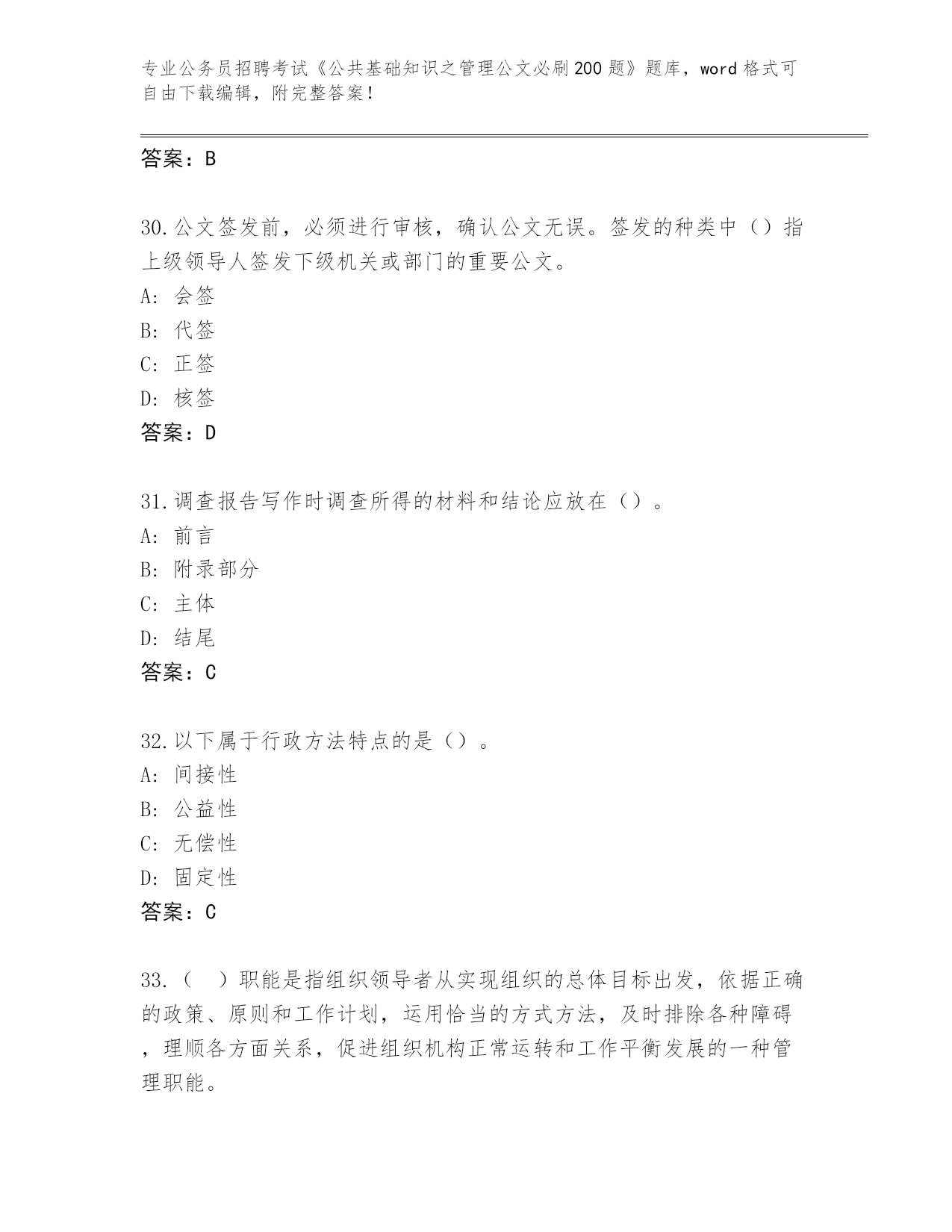 贵州省观山湖区历年公务员招聘考试《公共基础知识之管理公文必刷200题》内部题库(精练)