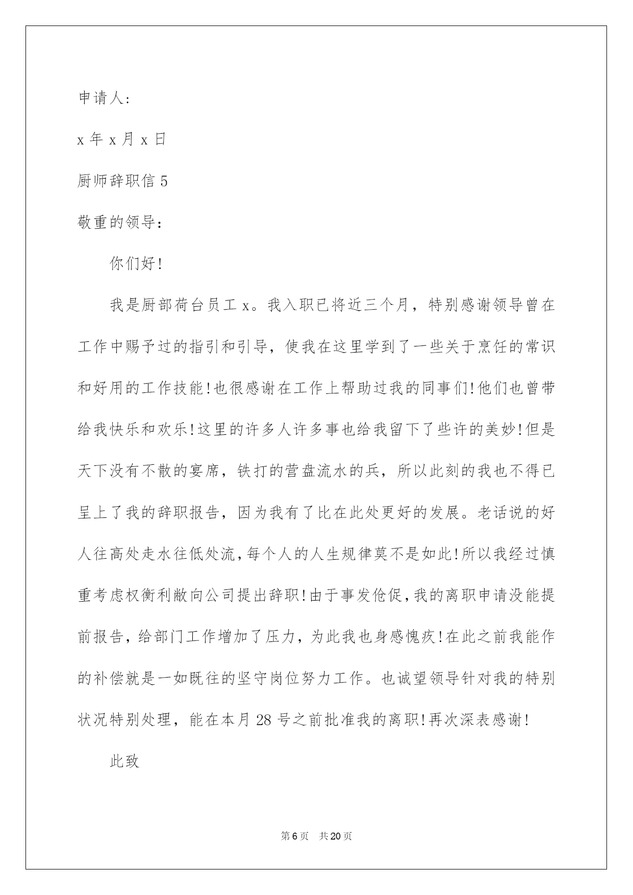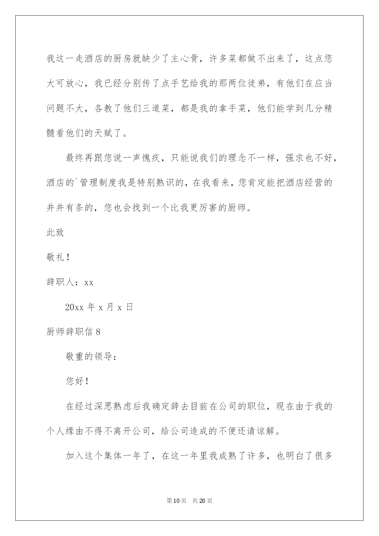 第PAGE\*Arabic\*MERGEFORMAT20页共NUMPAGES\*Arabic\*MERGEFORMAT20页第PAGE\*MERGEFORMAT20页共NUMPAGES\*MERGEFORMAT20页第PAGE\*MERGEFORMAT20页共NUMPAGES\*MERGEFORMAT20页第PAGE\*MERGEFORMAT20页共NUMPAGES\*MERGEFORMAT20页第PAGE\*MERGEFORMAT20页共NUMPAGES\*MERGEFORMAT20页第PAGE\*MERGEFORMAT20页共NUMPAGES\*MERGEFORMAT20页第PAGE\*MERGEFORMAT20页共NUMPAGES\*MERGEFORMAT20页第PAGE\*MERGEFORMAT20页共NUMPAGES\*MERGEFORMAT20页第PAGE\*MERGEFORMAT20页共NUMPAGES\*MERGEFORMAT20页第PAGE\*MERGEFORMAT20页共NUMPAGES\*MERGEFORMAT20页第PAGE\*MERGEFORMAT20页共NUMPAGES\*MERGEFORMAT20页2022厨师辞职信厨师辞职信15篇在现在这个社会,职场人才流淌是很正常的事情,某种状况下,我们会告辞公司,这也意味着,须要写辞职信了。是不是苦于写不出正规的辞职信呢?下面是我细心整理的厨师辞职信,供大家参考借鉴,希望可以帮助到有须要的挚友。厨师辞职信1敬重的领导:您好!首先感谢您在百忙当中抽出时间阅读我的辞职信。我是怀着非常困难的心情写这封的。自从我进了食堂以后,由于你对我的指导和信任,使我取得了许多机遇和挑战。经过这段时间在食堂的工作,我从中学到了许多学问,积累了肯定的阅历,对此我深表感谢。由于我本身工作实力不足,近期的工作让我觉得力不从心,为此我作了很长时间的思索,我确定递上辞呈。为了不由于我个人实力不足的缘由影响了食堂的正常运作,更迫切的缘由是我必需在20xx年x月后参与计算机等级证的培训,较长时间内都不能上班,所以经过深思熟虑以后,我确定在20xx年x月前辞往而我在食堂的工作。我知道这个进程中会给你带来肯定程度上的不便,但是我也很缺憾不能接着工作,很感谢你和食堂各位同事对我的教育和照看,在食堂这段经验对我而言异样的宝贵。将来不管甚么时候,我都会以自己曾是食堂的一员而感到荣幸。我确信在食堂的工作历程将是我整个职业生涯发展中相当重要的部份。祝食堂领导和各位同事身体健康、工作顺当!此致敬礼辞职人:xxx20xx年x月x日厨师辞职信2敬重的公司领导:你们好!我是xx厨师xx。这个月的七月二日是我来海外xx工作满五年的日子,回首这五年的点点滴滴,一张又一张熟识的脸庞,无论是遇到的领导,或者服务过的员工,还有十多位兄弟般的同事,都在眼前出现,更多的是很感谢之情和精彩的画面。五年的海外生活,更多的是收获,无论是金钱,幻想,价值还是理想,都让我得到扎扎实实的升华,欣慰之余,唯一愧疚的是对家人的爱,特殊是对两个孩子的内疚,我想,做为父亲,不能陪伴在他们童年成长的脚步里,是任何东西都无法弥补的。很感谢像你们一样一个又一个我遇到过的领导对我的关切,帮助,信任和确定,让我在印度这五年经验过许多挑战,肩负过好几次的重托,老板都说过,将军是打出来的,我想,在回到家乡的人生道路上,我所学会和拥有的这些阅历和品质,确定能派上用场。深深的很感谢你们!!下这样一个辞职的艰难确定真的很不简单,和家人,父母,不断沟通,还有孩子,甚至听取了其他城市的同事的看法,经过这一个月的深思熟虑,今日我最终下定决心,鼓起志气,为自己的人生又一次重大的转折做出无愿无悔的选择:辞职。我的签证七月二十二日到期,上次注册地从xx转过来xx还没搞定,估计延期胜利的话要到八月底了,知道现在人手惊慌,我会耐性的等待你们的支配,剩下的日子里,工作上我依旧会一如既往的努力和负责,这点请你们放心.期盼拿到回国的单程机票的那天。为谢!!此致敬礼!辞职申请人:xxx20xx年x月x日厨师辞职信3敬重的领导:你们好!我是厨部荷台员工xx。我入职已将近三个月,特别感谢领导曾在工作中赐予过的指引和引导,使我在这里学到了一些关于烹饪的常识和好用的工作技能!也很感谢在工作上帮助过我的同事们!他们也曾带给我快乐和欢乐!这里的许多人许多事也给我留下了些许的美妙!但是天下没有不散的宴席,铁打的营盘流水的兵,所以此刻的我也不得已呈上了我的辞职报告!因为我有了比在此处更好的发展。老话说的好人往高处走水往低处流,每个人的人生规律莫不是如此