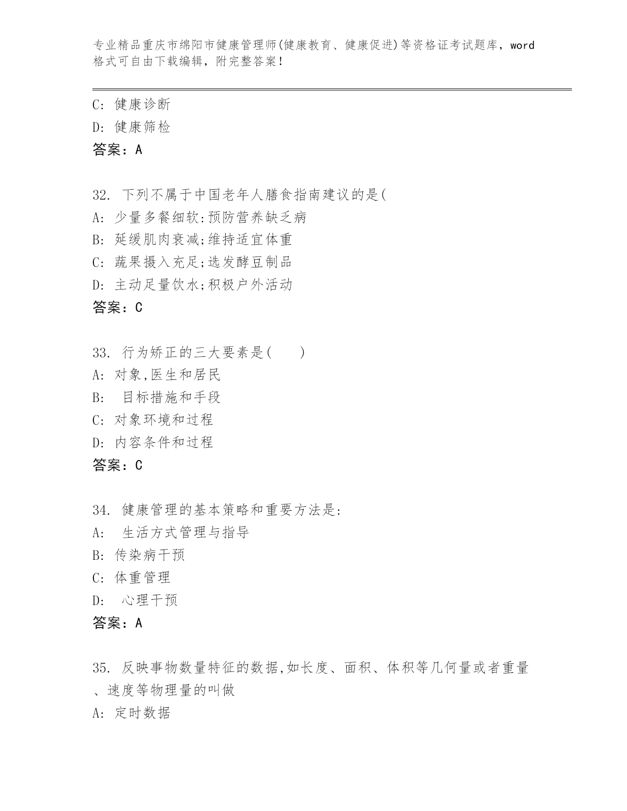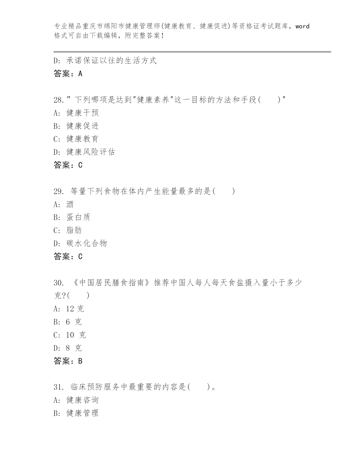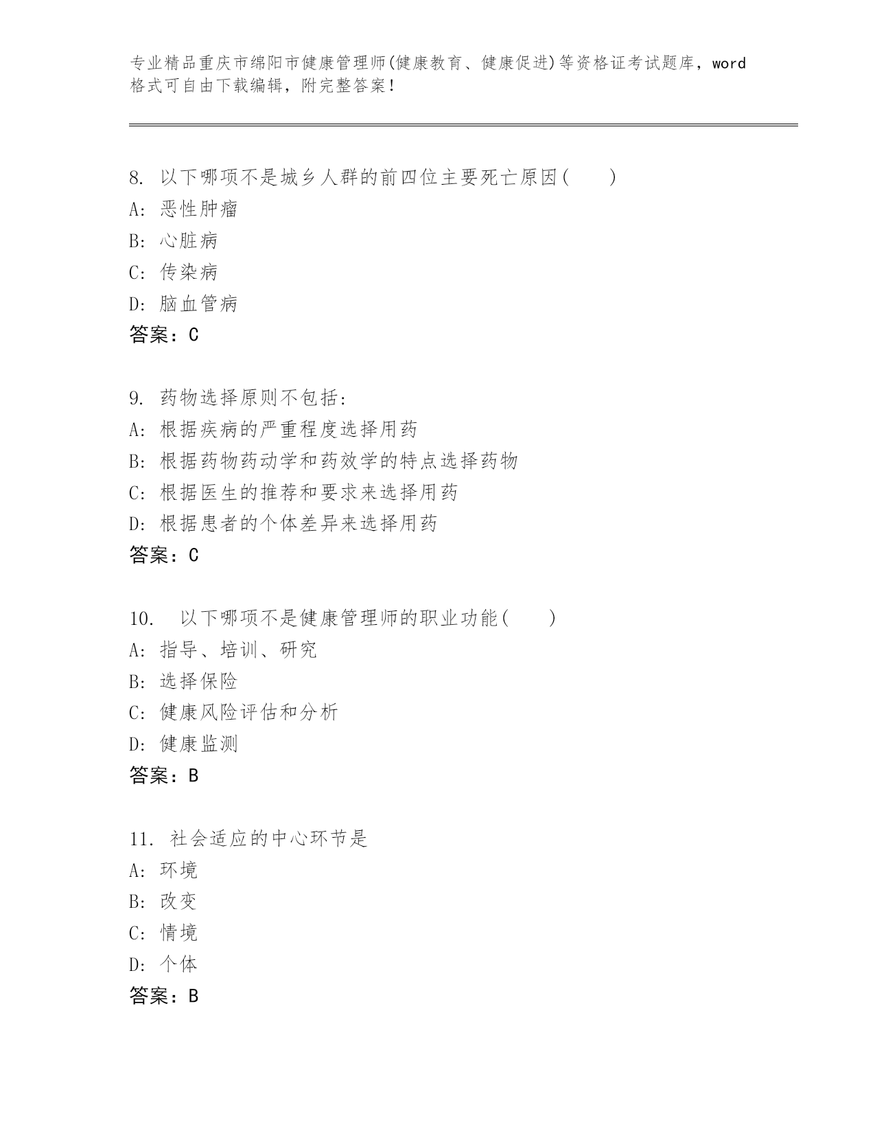 精品重庆市绵阳市健康管理师(健康教育、健康促进)等资格证考试优选题库通用