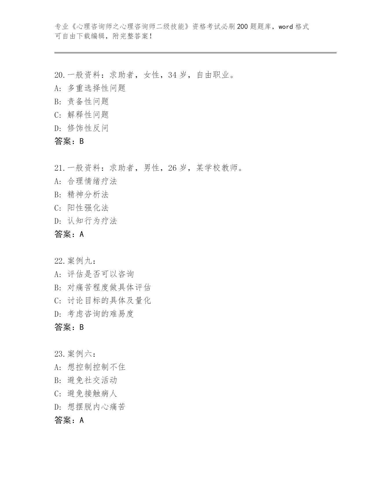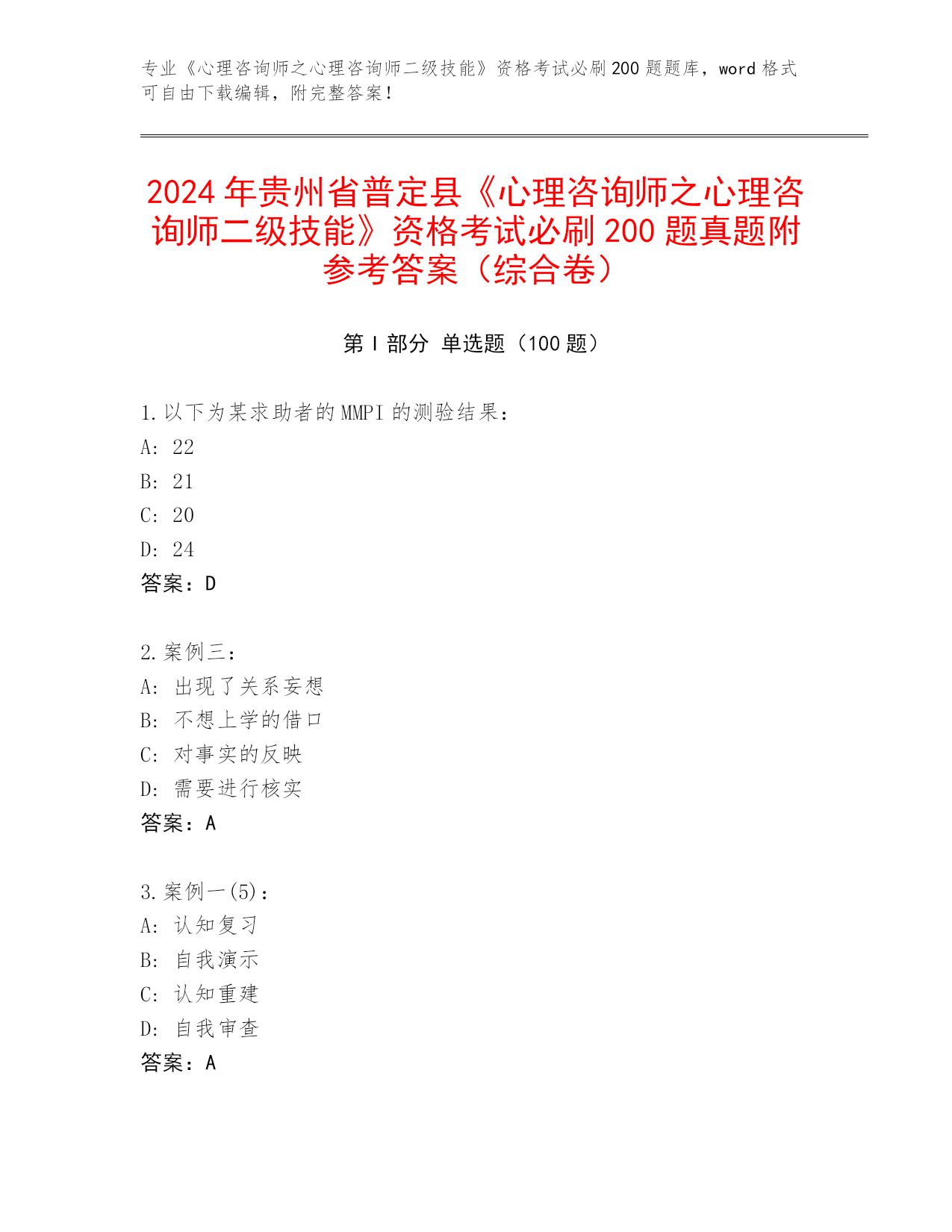 贵州省普定县2023-24年《心理咨询师之心理咨询师二级技能》考试必刷200题真题题库含答案(综合卷)
