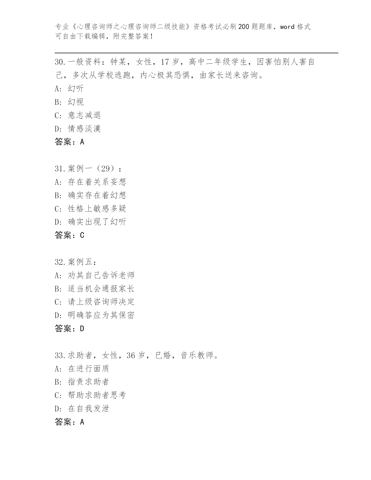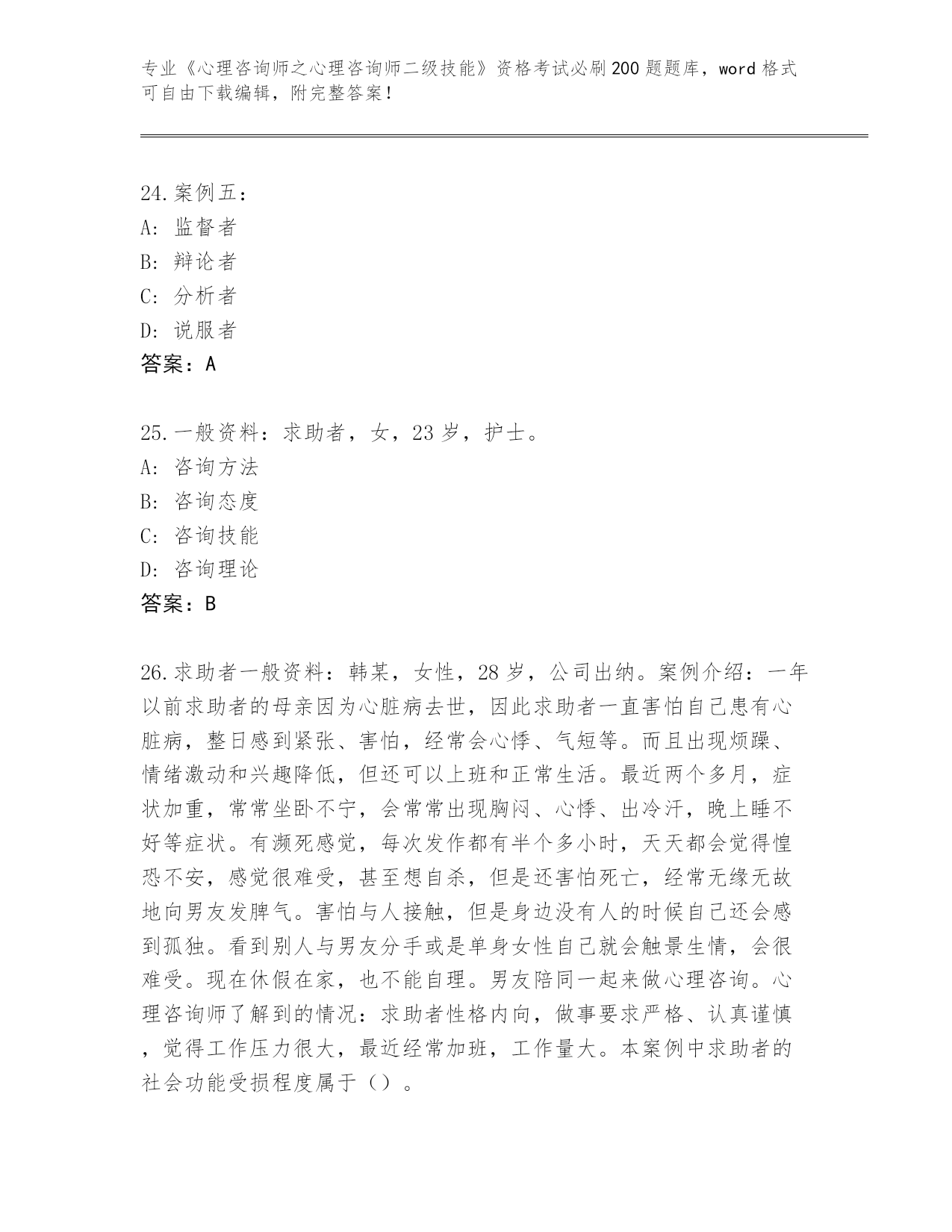 贵州省普定县2024《心理咨询师之心理咨询师二级技能》资格考试必刷200题大全(易错题)