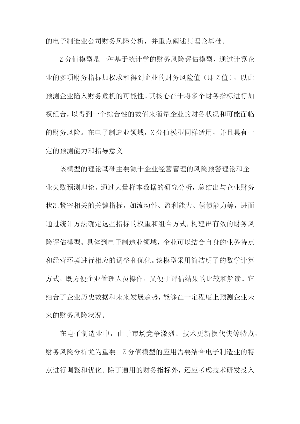 基于Z分值模型的电子制造业公司财务风险分析.docx