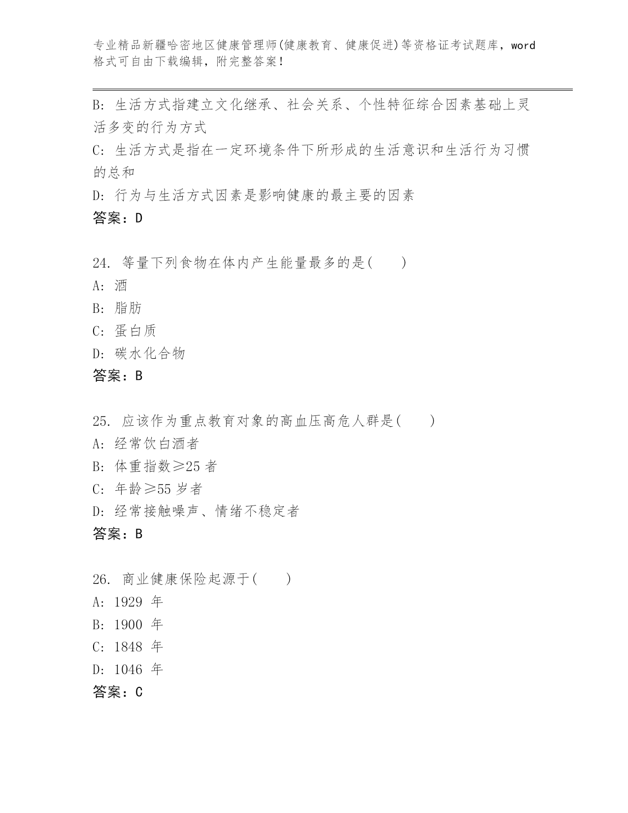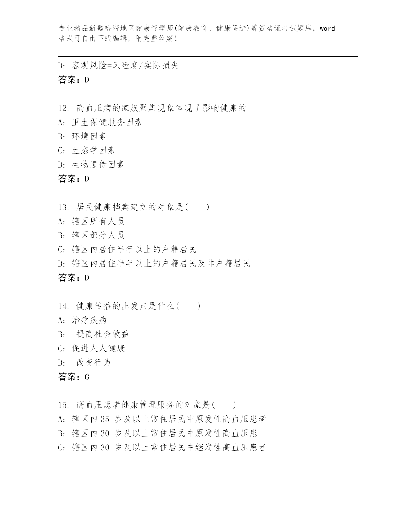 优选新疆哈密地区健康管理师(健康教育、健康促进)等资格证考试精选题库含答案(A卷).docx