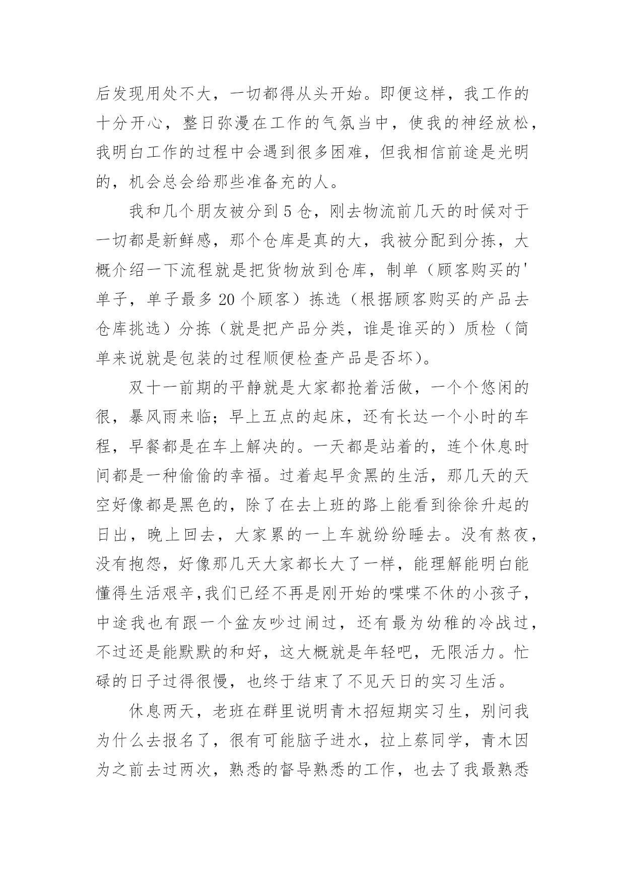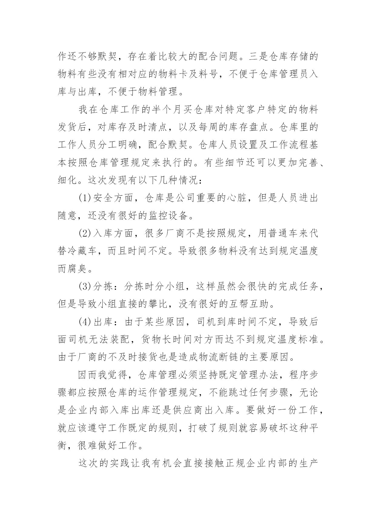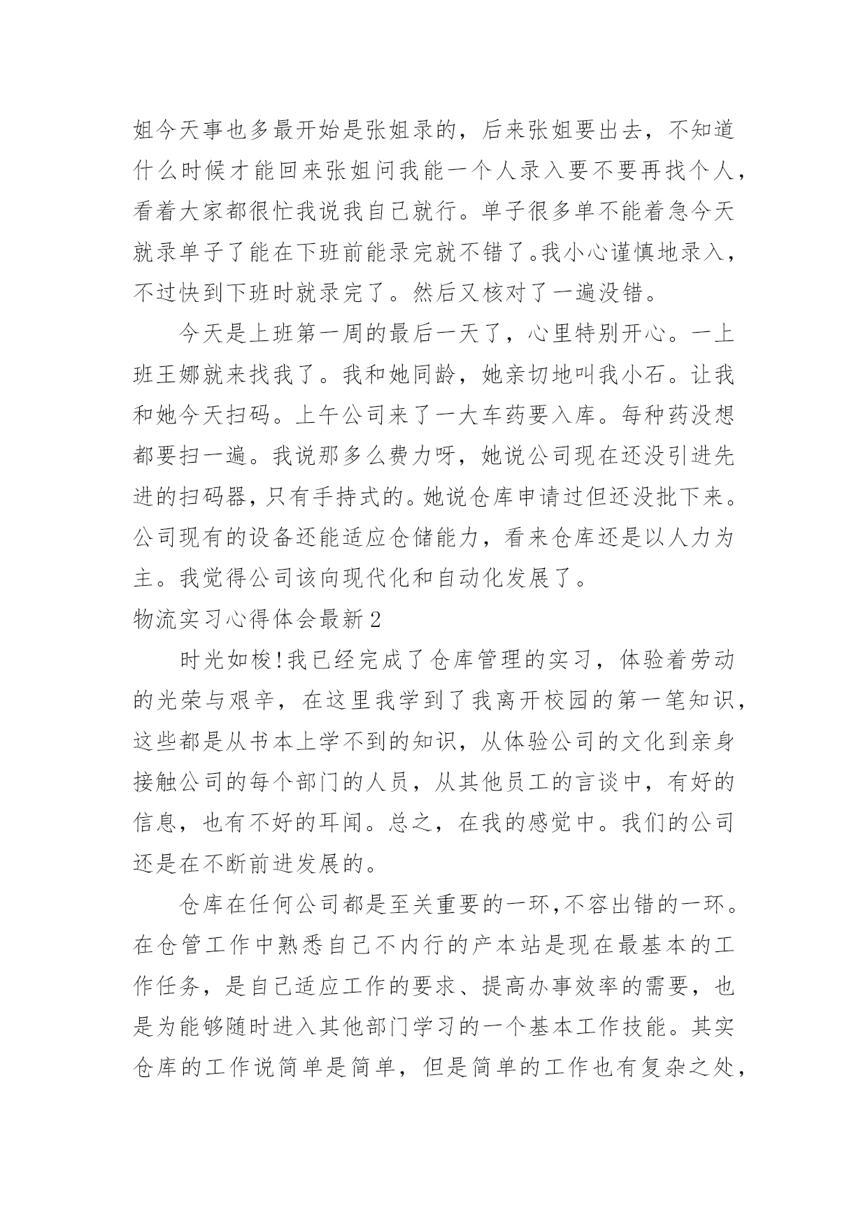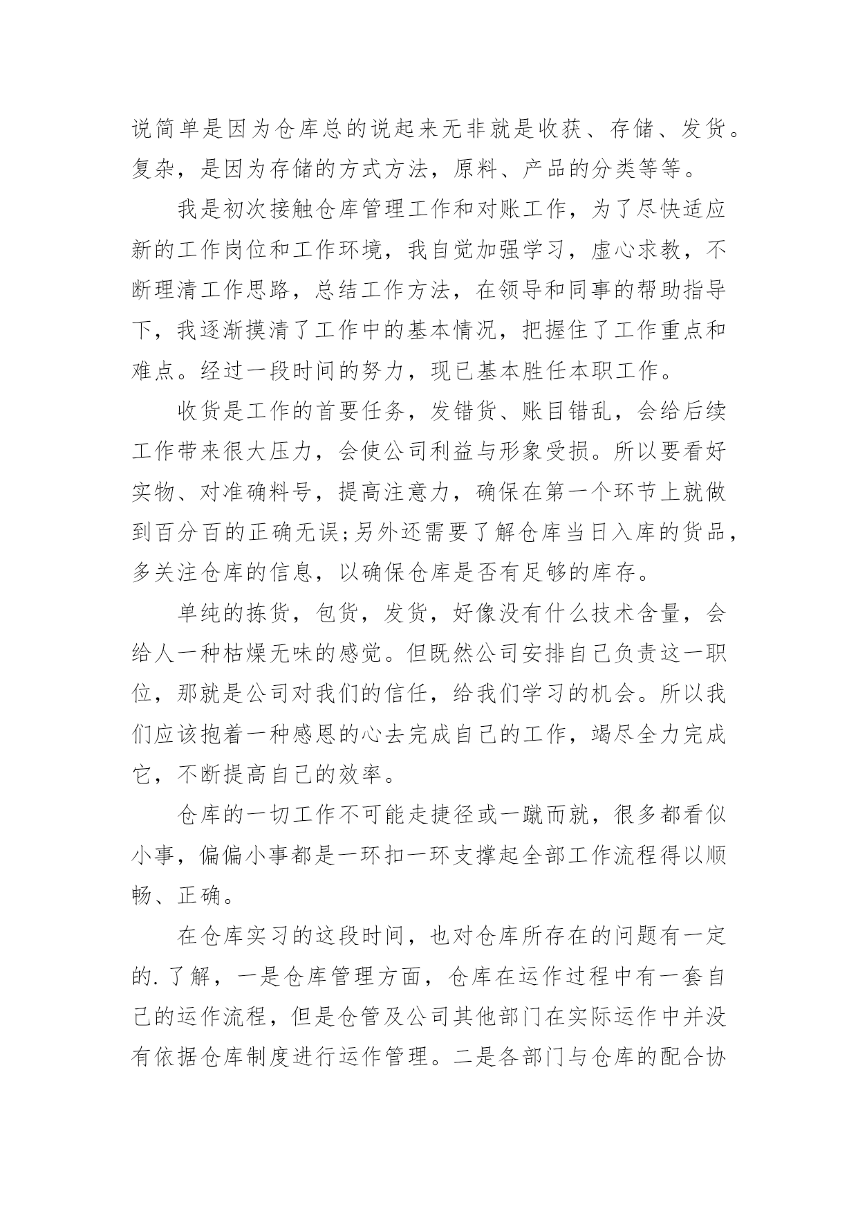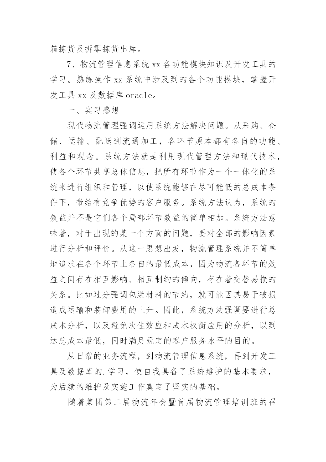 物流实习心得体会最新物流实习心得体会最新在平日里,心中难免会有一些新的想法,不如来好好地做个总结,写一篇心得体会,它可以帮助我们了解自己的这段时间的学习、工作生活状态。那么你知道心得体会如何写吗?以下是小编帮大家整理的物流实习心得体会最新,希望能够帮助到大家。物流实习心得体会最新1今天是实习第一天,很开心。在家里呆了好久,真想出来干些事。很快就要毕业了,为了迎接新的工作也该学些新东西了。包括工作时要用的各种工具以及和别人沟通和应变的能力。工作时去很远的地方什么事都要自己处理。一大早就起床了整理好后我去公司了。由于专业我被分到了仓储部了。第一天报到看到的都是新面孔。心里既紧张又兴奋。因为要记住很多人的称呼。这是对人最起码的尊重。首先见的是马经理,简单介绍了一下就带我去见仓储部的张姐了。实习期间我就在张姐的.带领下工作了。张姐带我在仓库里转了一圈边走边介绍。简单介绍了一下仓库布局,公司总共有3个仓库,仓库里设备齐全。有叉车、堆垛机、扫码器。张姐向我介绍了一下各区及各区存放的药品种类,种类太多了,有片状药、针剂药、胶囊药、还有各种医疗器材。还有一个冷藏区,专门存储需低温保存的药品。因为第一天来张姐让我大概熟悉一下,可我好多区没记下来,张姐说没关系慢慢来。来公司后要按公司制度做事,每天上午8点上班,12点下班,下午1点上班5点下班,中午在公司吃饭,由于我来这实习公司安排我周六日休息。早上一上班就点名,然后开始工作。刚开始我还不熟悉这的工作流程,今天张姐先让我跟着小赵工作。小赵主要负责药品进出库单据的录入工作。据他说有时每天出入库量大,就特别忙。但有时也很清闲。今天正好赶上忙的时候了。上午我就看他怎样录入,下午还是忙就问了问看我能不能帮上忙。小赵答应了。我录入库的单子,他录出库的单子,生怕出什么差错我录入一张就检查一遍。工作起来时间过的真快一会就到下班时间了。一上班张姐问我还适应吗?我说适应。张姐说今天还和小赵一起工作。张姐说逐步会让我把仓库整个流程都熟悉了。和小赵一起工作很开心,他大我5岁,人很幽默,明白的请教他她很乐于帮助人。今天出库的的货不多工作比较轻松。小赵今天教我录出库单,首先把一个购货公司的所有单据找出来,再按各个公司分别录入。我今天的工作就是把出库单分好再录入。虽然单子不多但每个购货单的种类还是很多的。小赵说今单子不多慢点录不着急。我哪敢录得快了小心翼翼的录每张单子。张姐很忙单也偶尔来看看我工作的情况。经过两天的工作对录入出入库单据有一定的了解,并能地录入了。今天点名时没看到小赵,后来听张姐说他有事请假了。张姐本来打算今天让我和王娜扫码呢。可小赵没来张姐今天事也多最开始是张姐录的,后来张姐要出去,不知道什么时候才能回来张姐问我能一个人录入要不要再找个人,看着大家都很忙我说我自己就行。单子很多单不能着急今天就录单子了能在下班前能录完就不错了。我小心谨慎地录入,不过快到下班时就录完了。然后又核对了一遍没错。今天是上班第一周的最后一天了,心里特别开心。一上班王娜就来找我了。我和她同龄,她亲切地叫我小石。让我和她今天扫码。上午公司来了一大车药要入库。每种药没想都要扫一遍。我说那多么费力呀,她说公司现在还没引进先进的扫码器,只有手持式的。她说仓库申请过但还没批下来。公司现有的设备还能适应仓储能力,看来仓库还是以人力为主。我觉得公司该向现代化和自动化发展了。物流实习心得体会最新2时光如梭!我已经完成了仓库管理的实习,体验着劳动的光荣与艰辛,在这里我学到了我离开校园的第一笔知识,这些都是从书本上学不到的知识,从体验公司的文化到亲身接触公司的每个部门的人员,从其他员工的言谈中,有好的信息,也有不好的耳闻。总之,在我的感觉中。我们的公司还是在不断前进发展的。仓库在任何公司都是至关重要的一环,不容出错的一环。在仓管工作中熟悉自己不内行的产本站是现在最基本的工作任务,是自己适应工作的要求、提高办事效率的需要,也是为能够随时进入其他部门学习的一个基本工作技能。其实仓库的工作说简单是简单,但是简单的工作也有复杂之处,说简单是因为仓库总的说起来无非就是收获、存储、发货。复杂,是因为存储的方式方法,原料、产品的分类等等。我是初次接触仓库管理工作和对账工作,为了尽快适应新的工作岗位和工作环境,我自觉加强学习,虚心求教,不断理清工作思路,总结工作方法,在领导和同事的帮助指导下,我逐渐摸清了工作中的基本情况,把握住了工作重点和难点。经过一段时间的努力,现已基本胜任本职工作。收货是工作的首要任务,发错货、账目错乱,会给后续工作带来很大压力,会使公司利益与形象受损。所以要看好实物、对准确料号,提高注意力,确保在第一个环节上就做到百分百的正确无误;另外还需要了解仓库当日入库的货品,多关注仓库的信息,以确保仓库是否有足够的库存。单纯的拣货,包货,发货,好像没有什