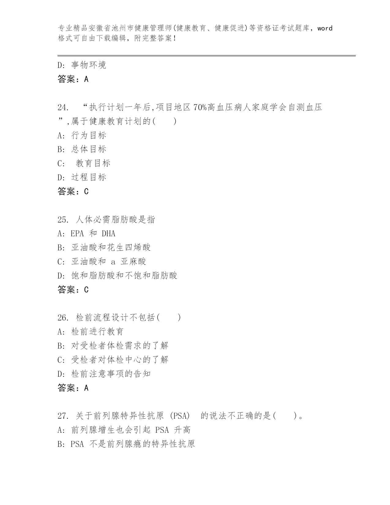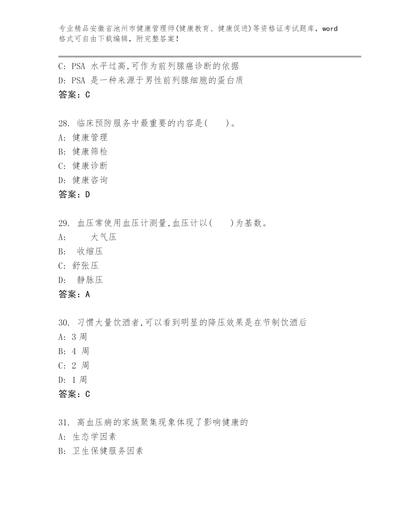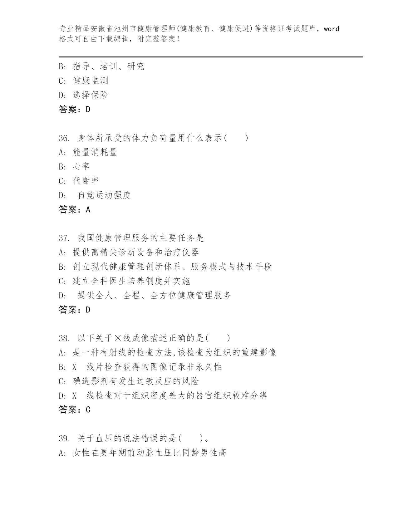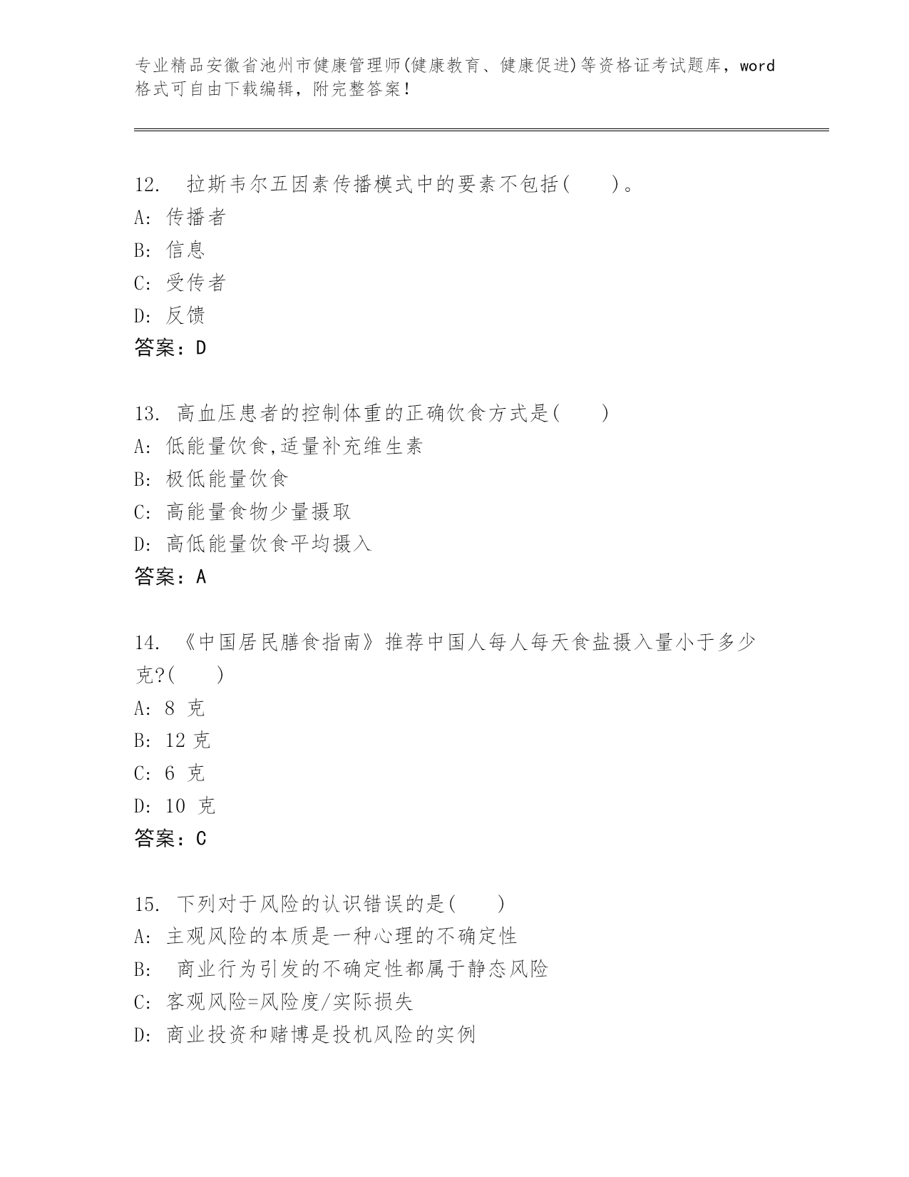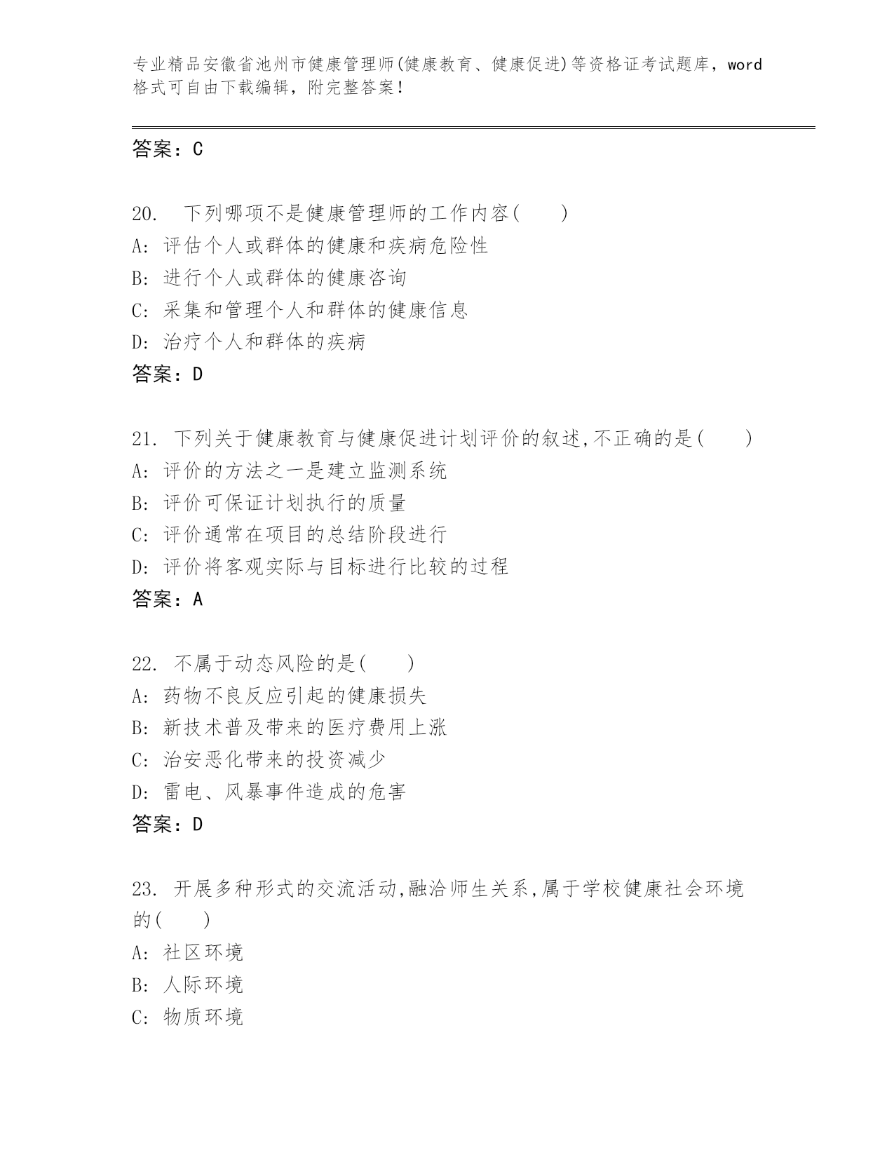 优选安徽省池州市健康管理师(健康教育、健康促进)等资格证考试完整题库及完整答案.docx