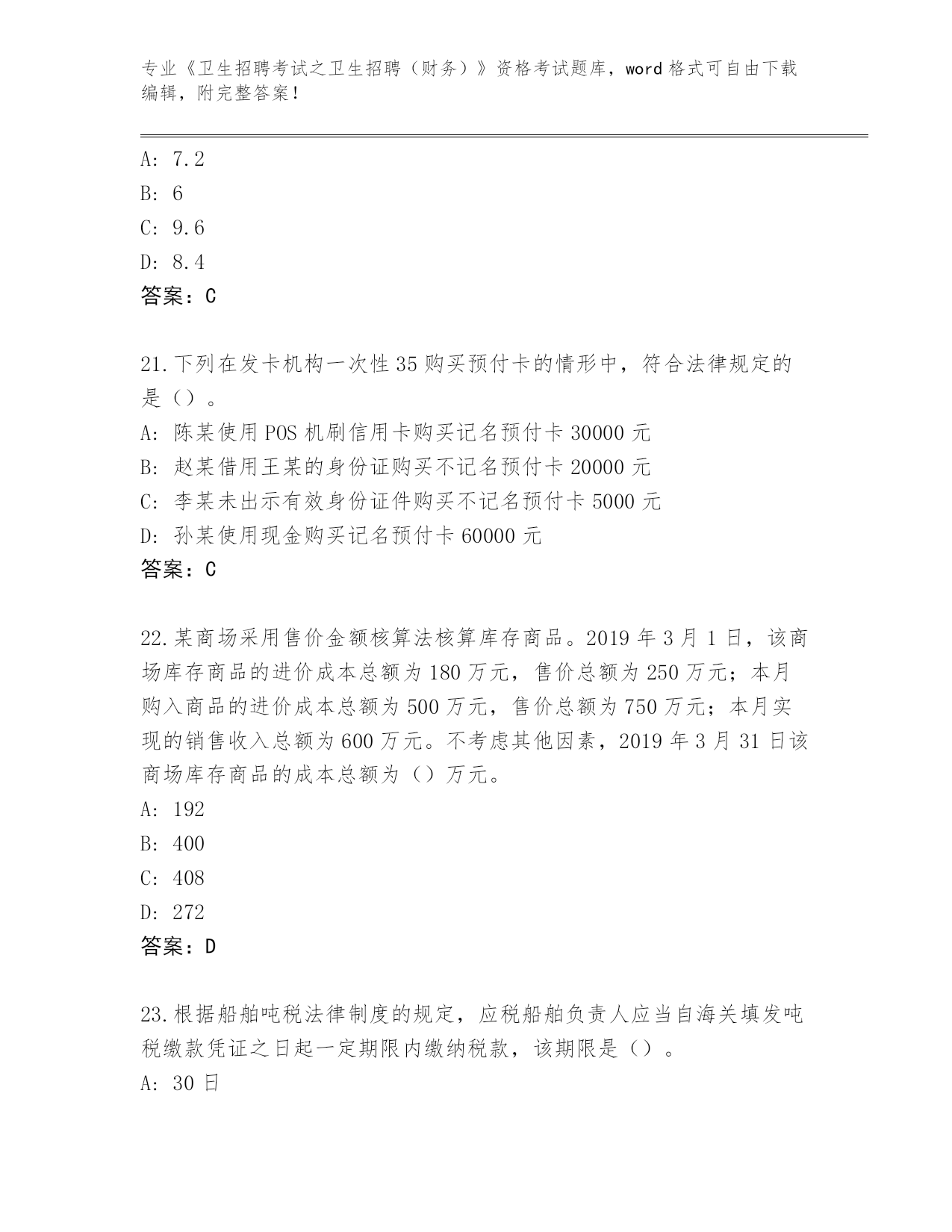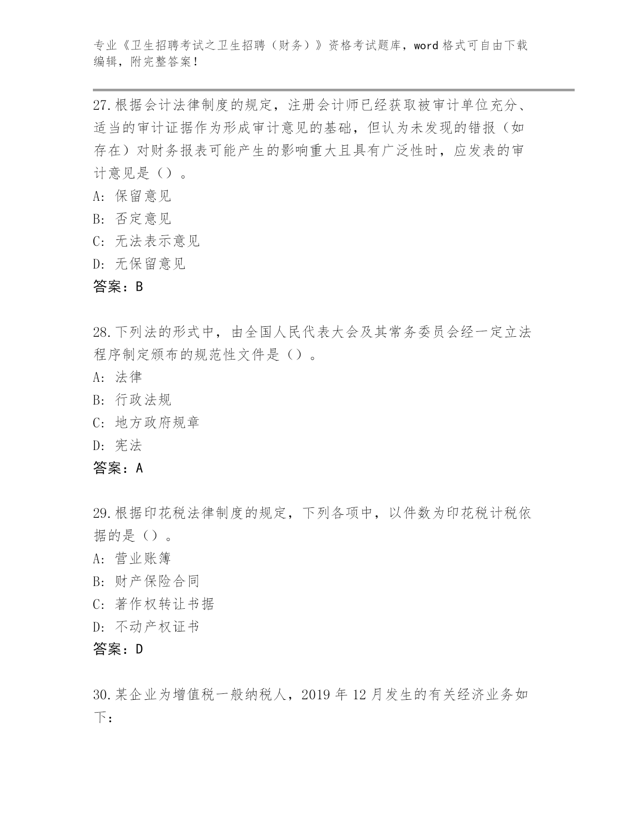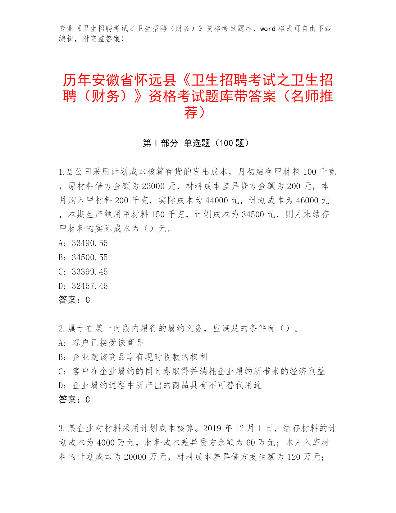 历年安徽省怀远县《卫生招聘考试之卫生招聘(财务)》资格考试完整题库及答案(考点梳理)