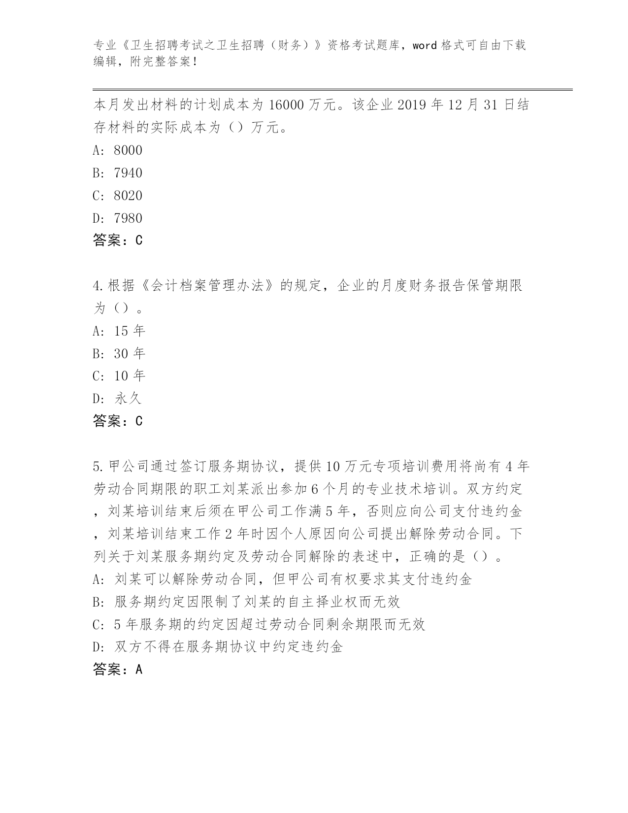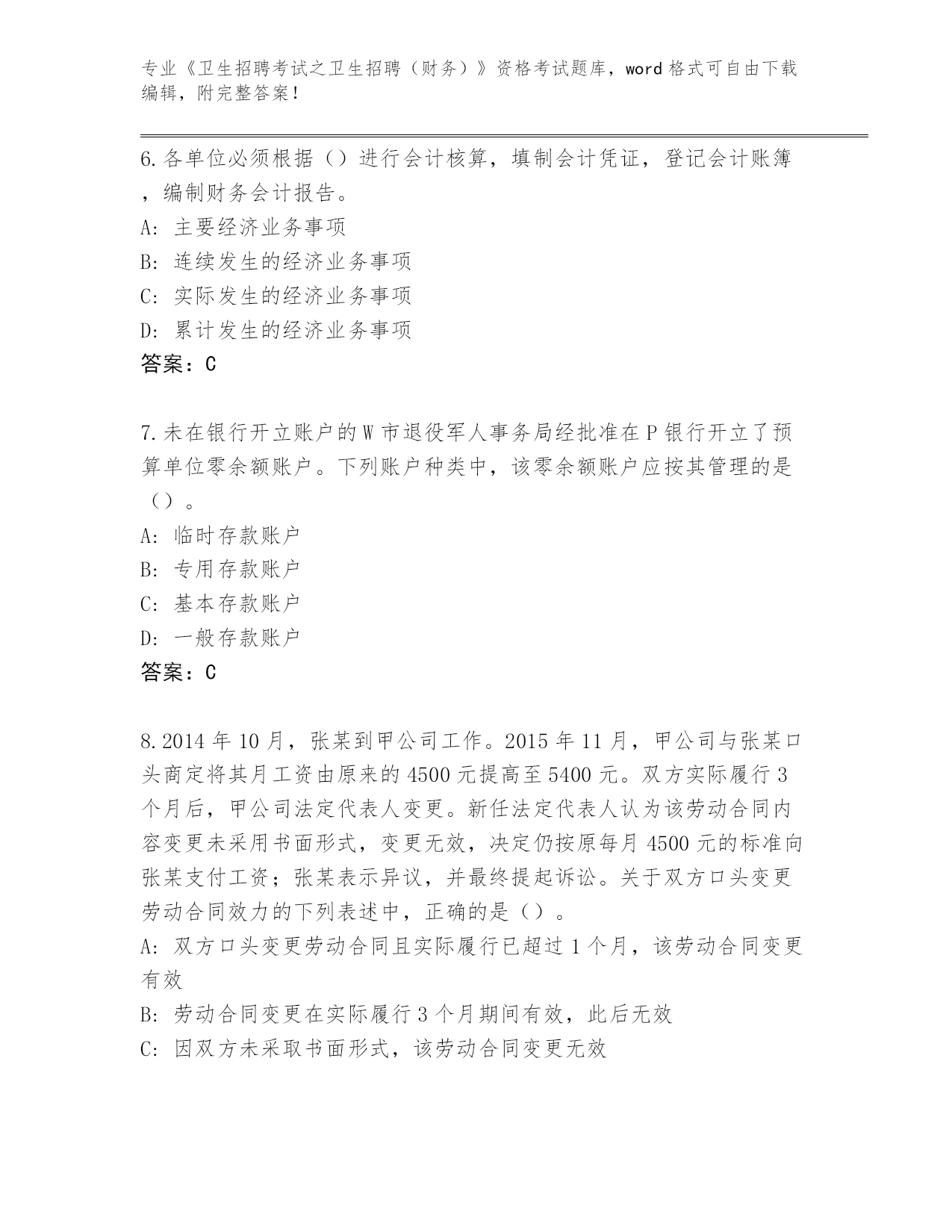 安徽省蚌山区历年《卫生招聘考试之卫生招聘(财务)》资格考试完整版【名师推荐】