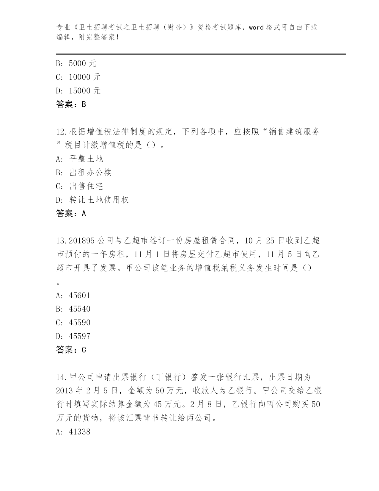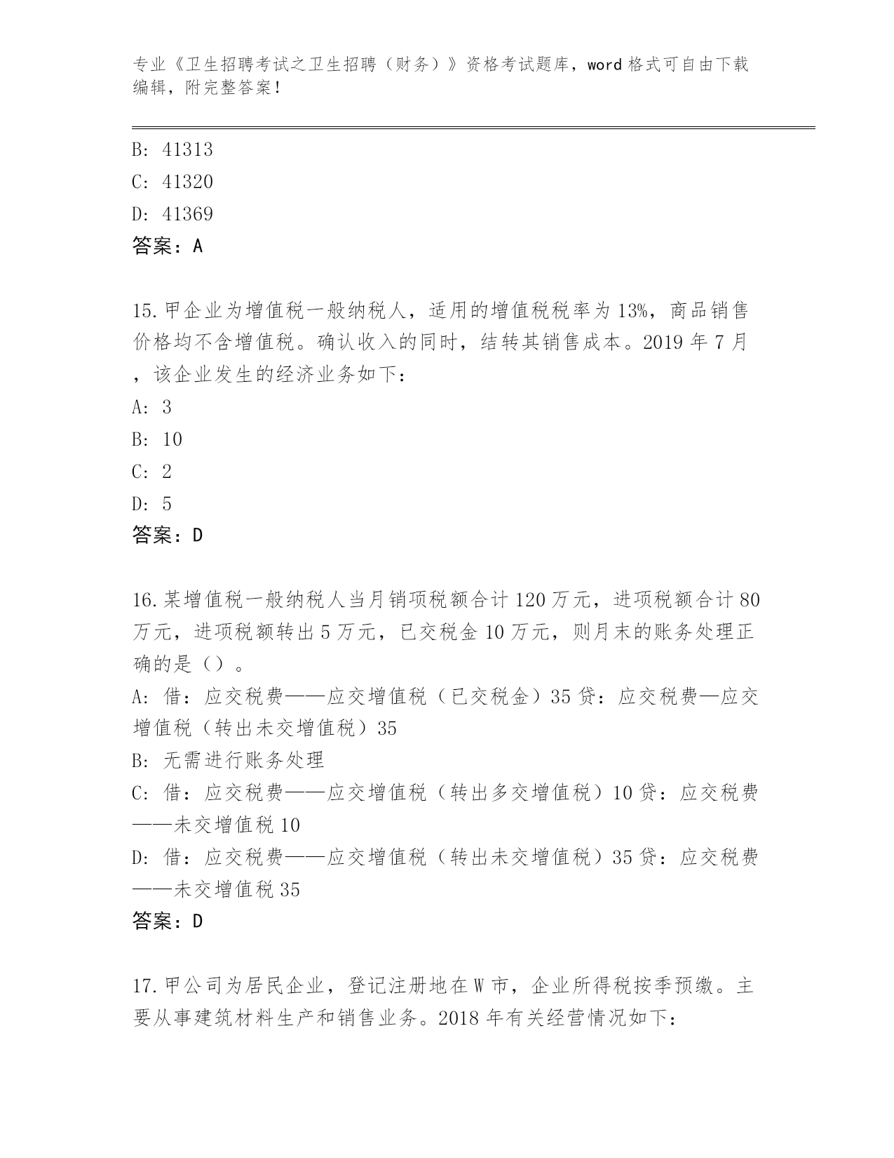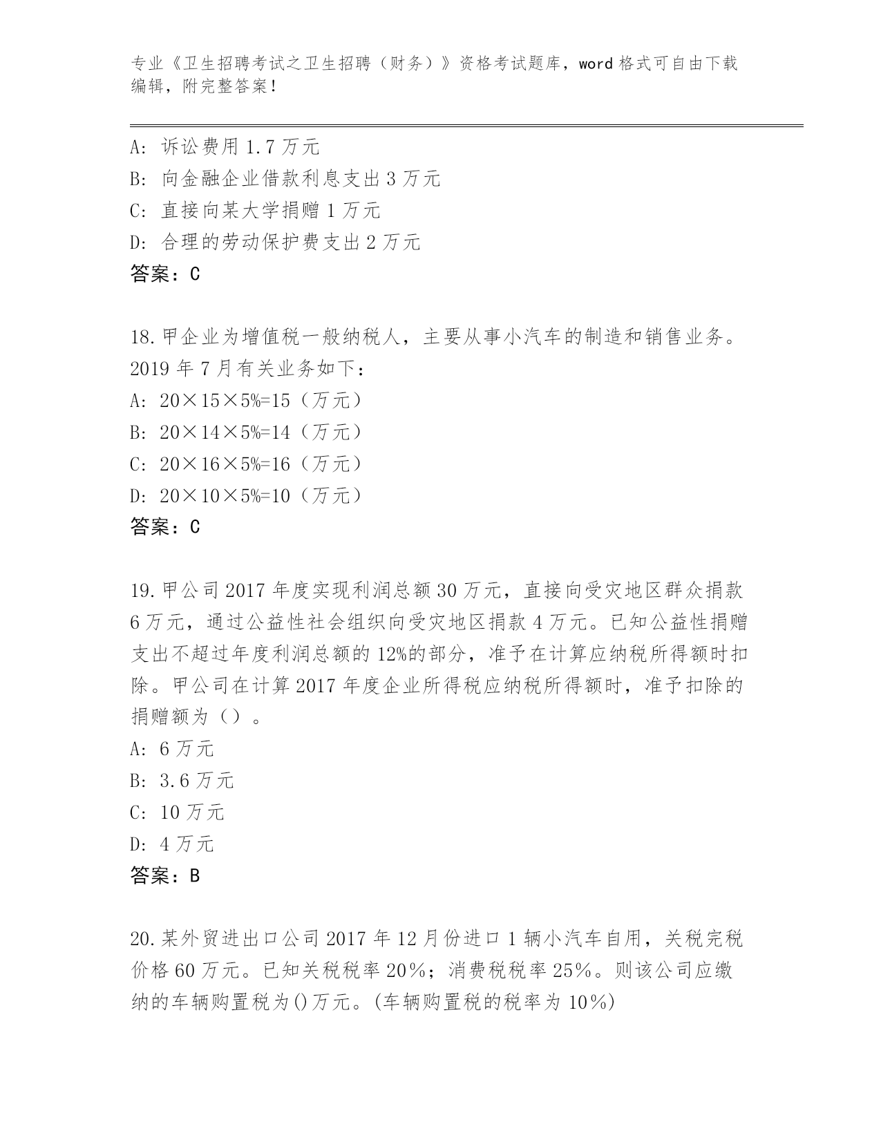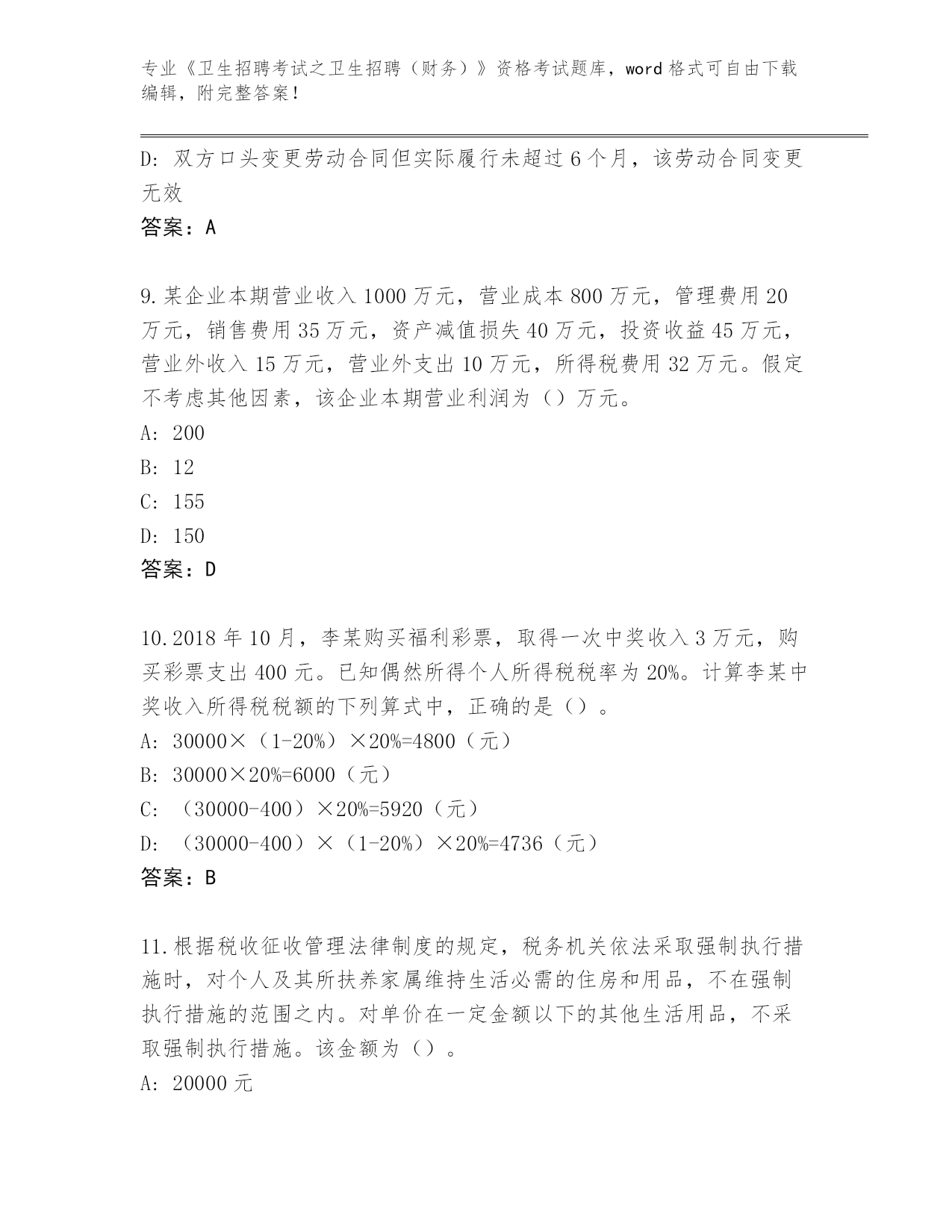 历年安徽省包河区《卫生招聘考试之卫生招聘(财务)》考试大全及参考答案(名师推荐)