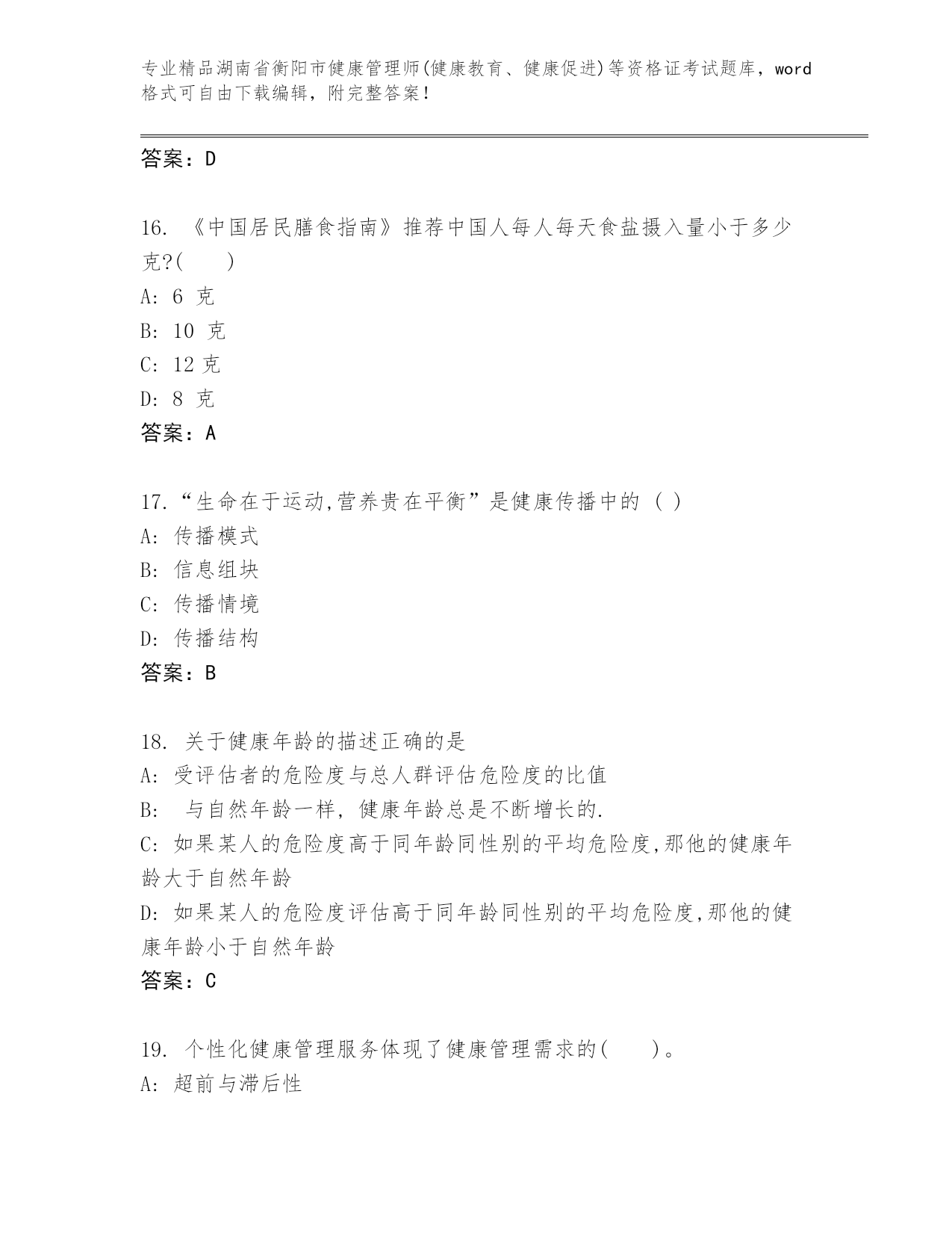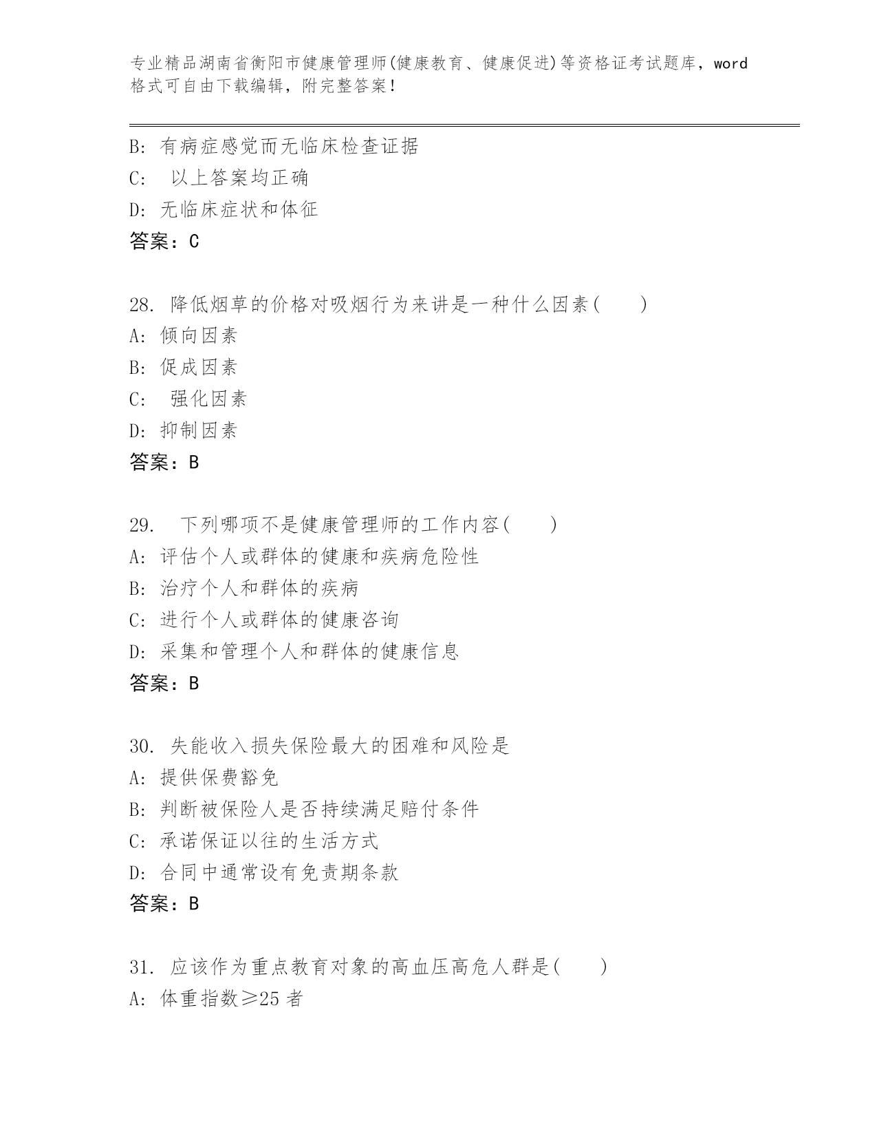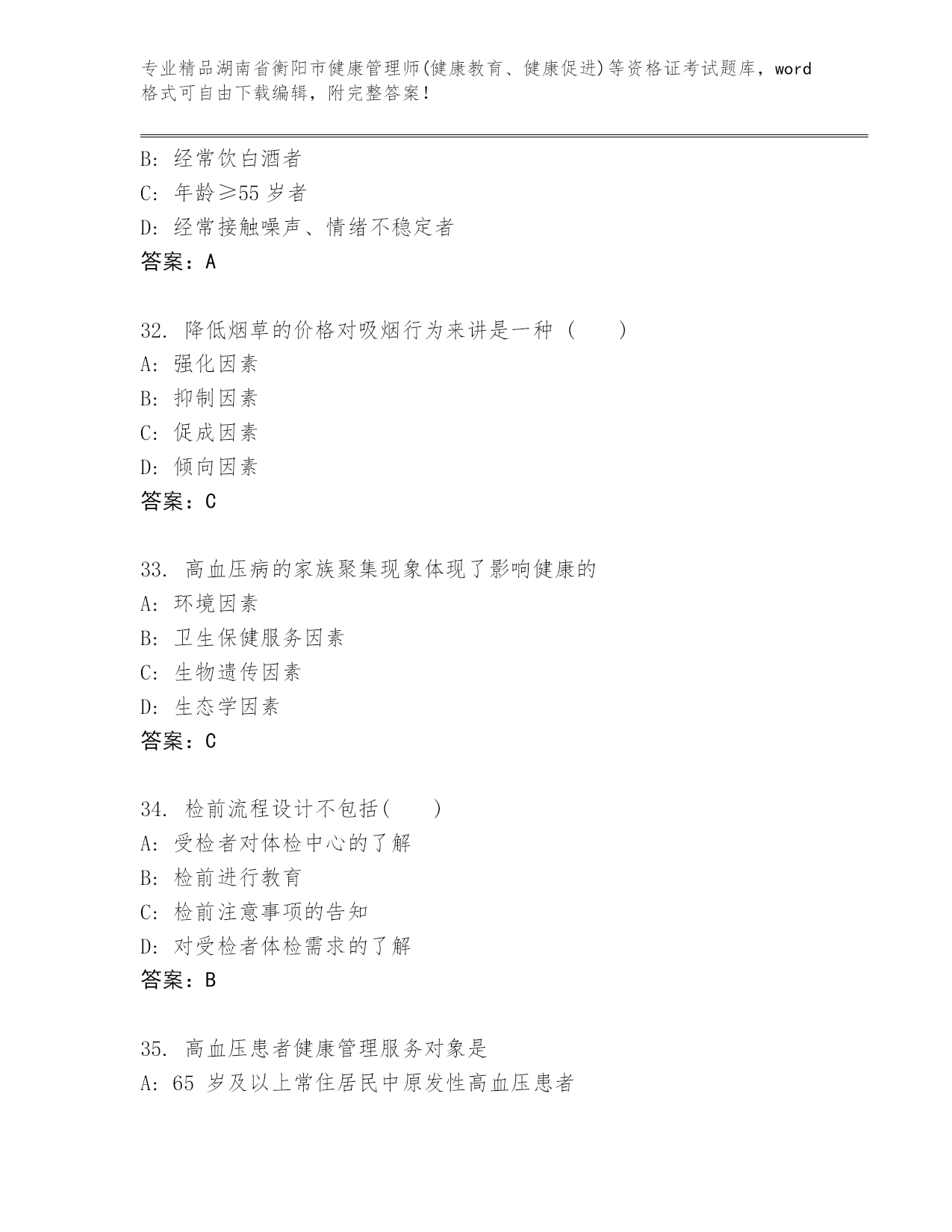 历年湖南省衡阳市健康管理师(健康教育、健康促进)等资格证考试大全含答案.docx