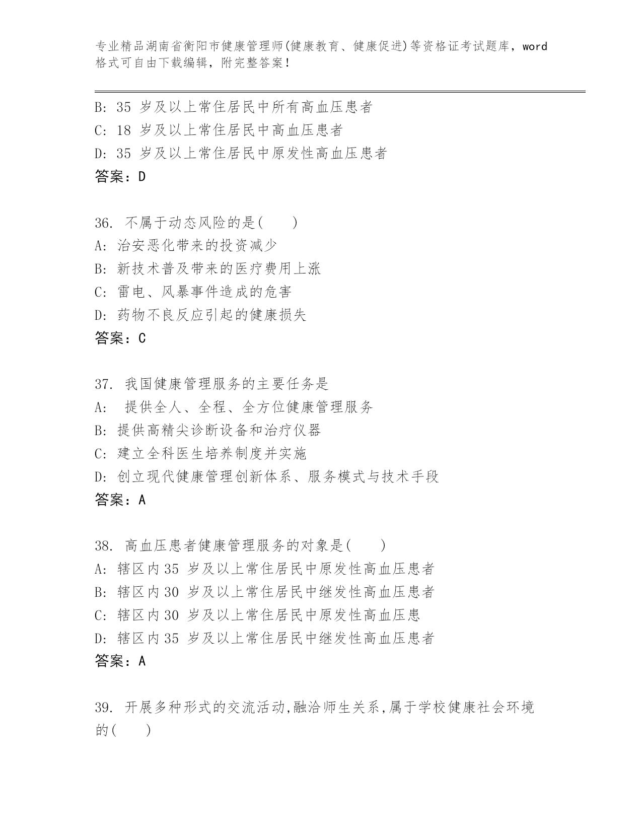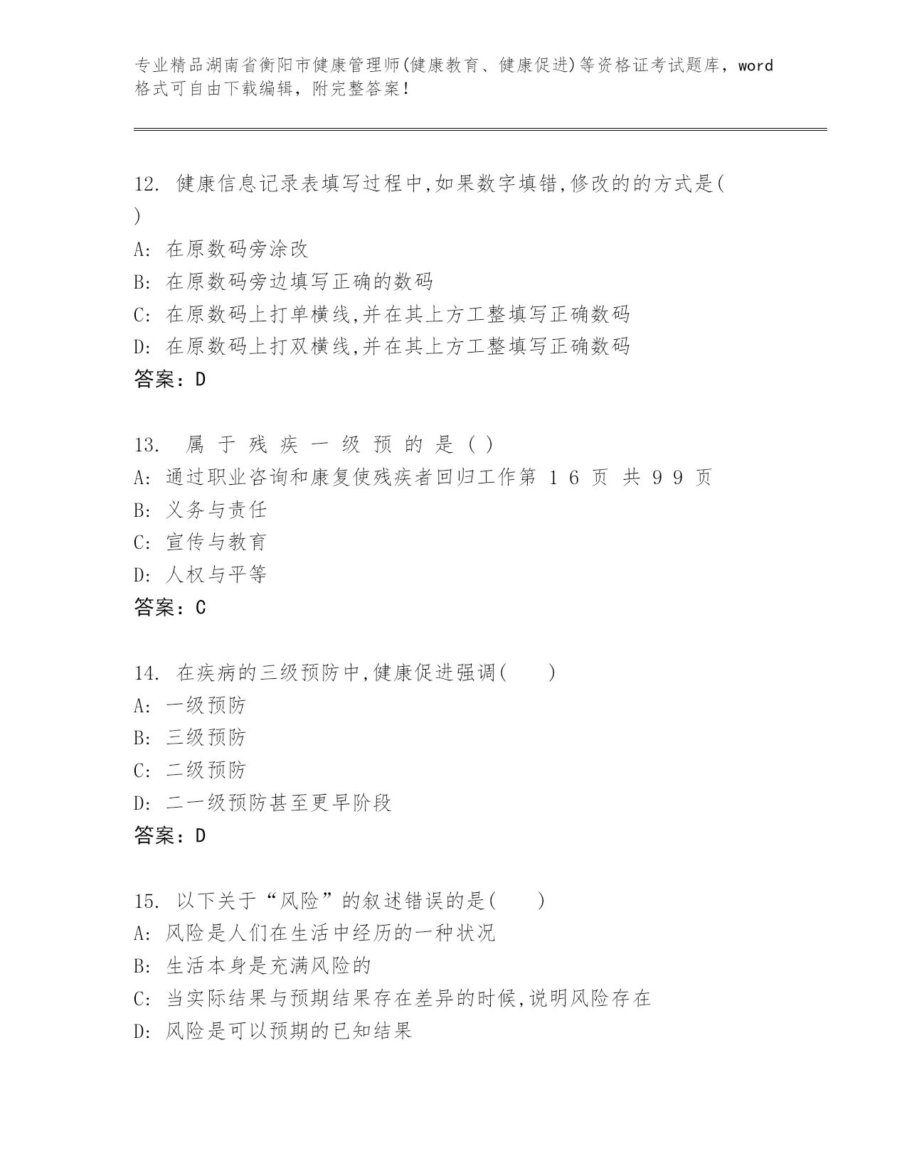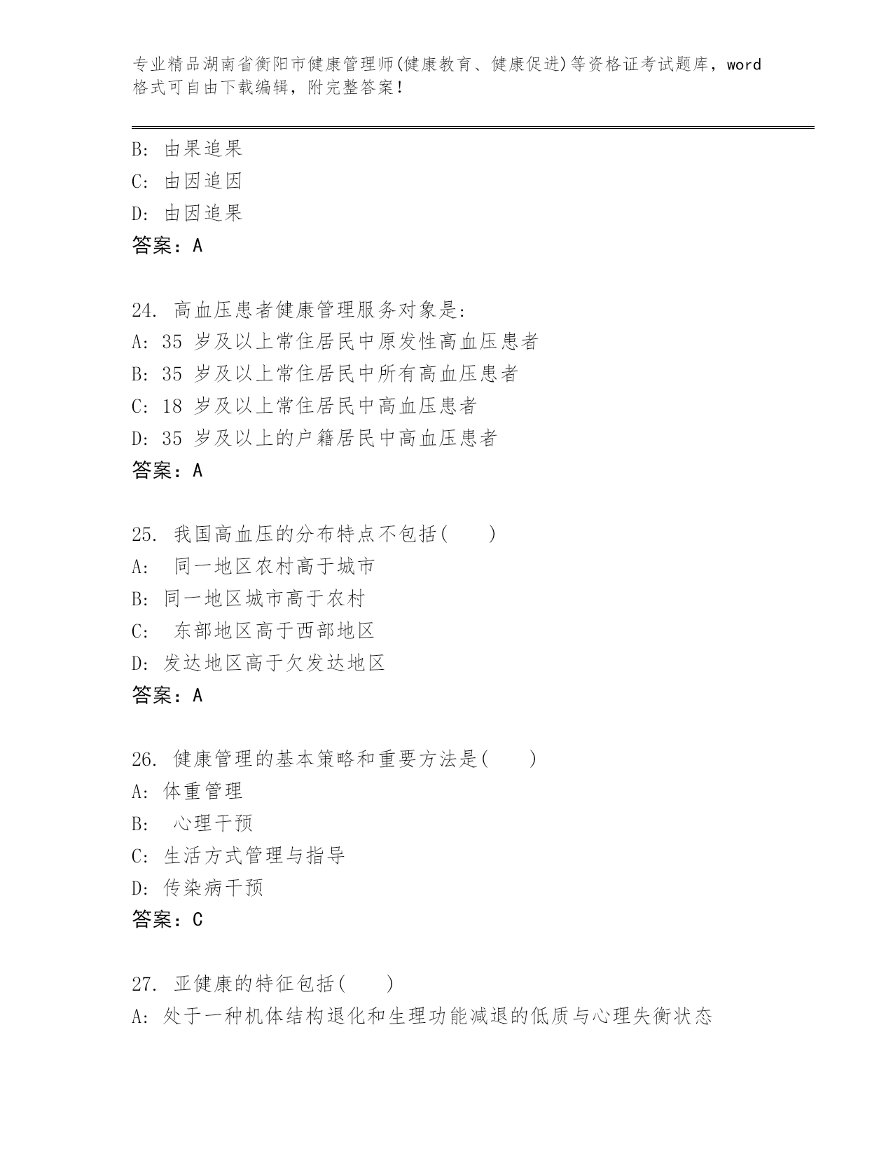 历年湖南省衡阳市健康管理师(健康教育、健康促进)等资格证考试大全含答案.docx