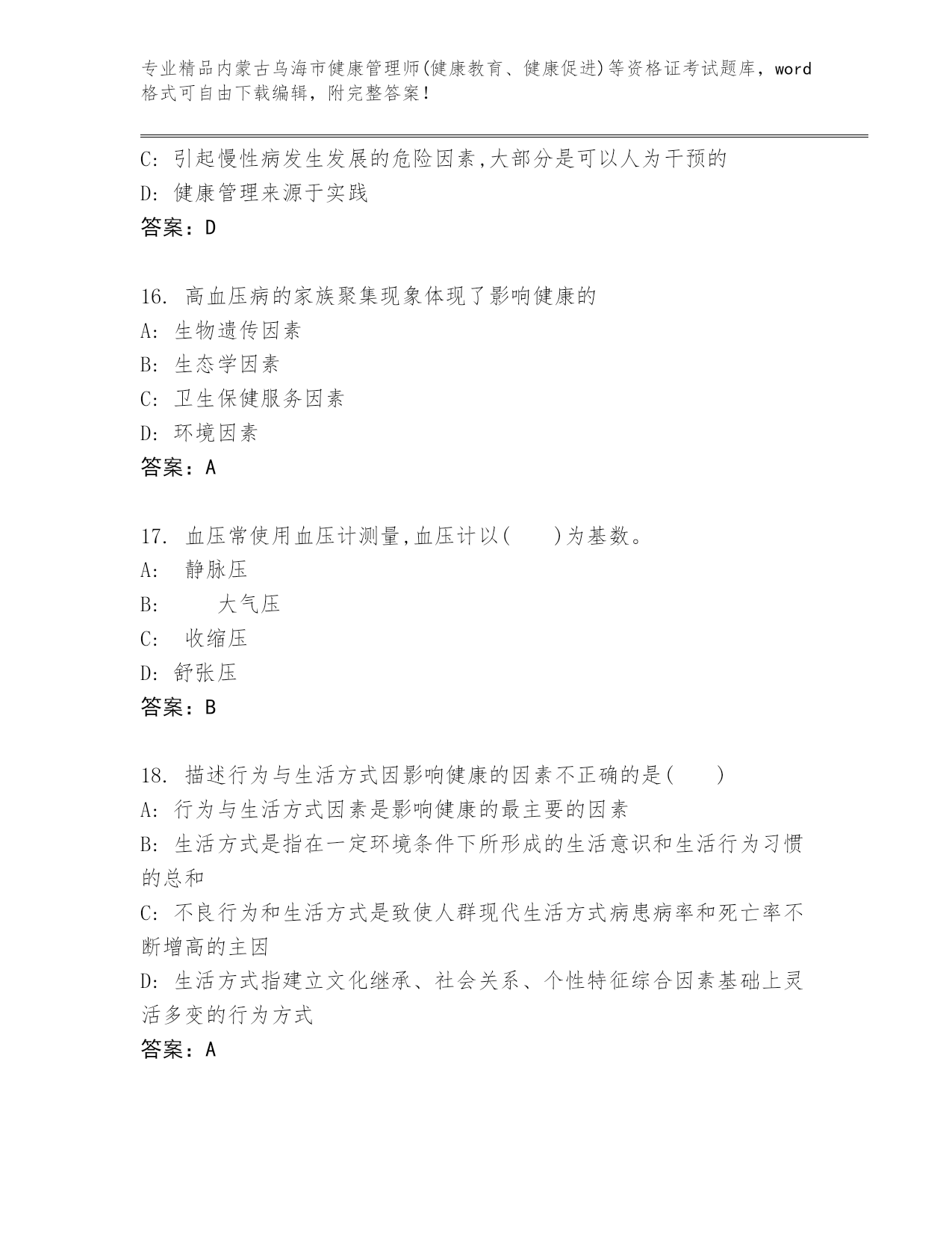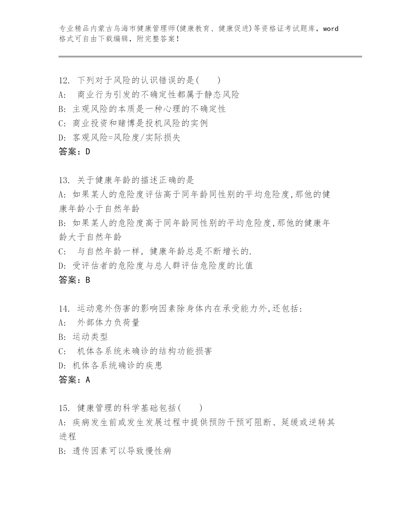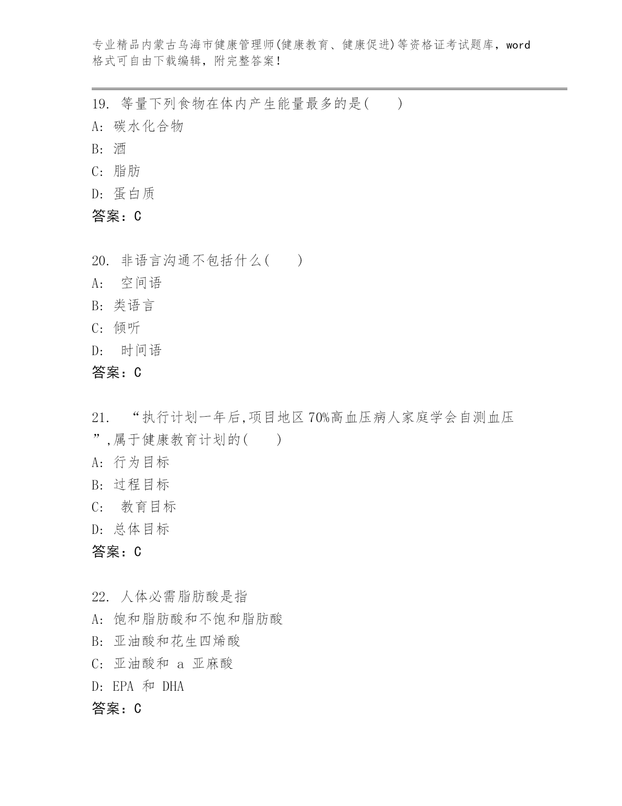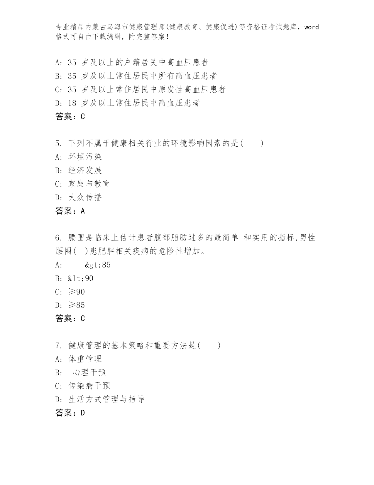 精品内蒙古乌海市健康管理师(健康教育、健康促进)等资格证考试真题【含答案】.docx
