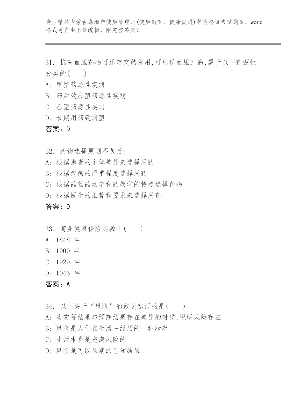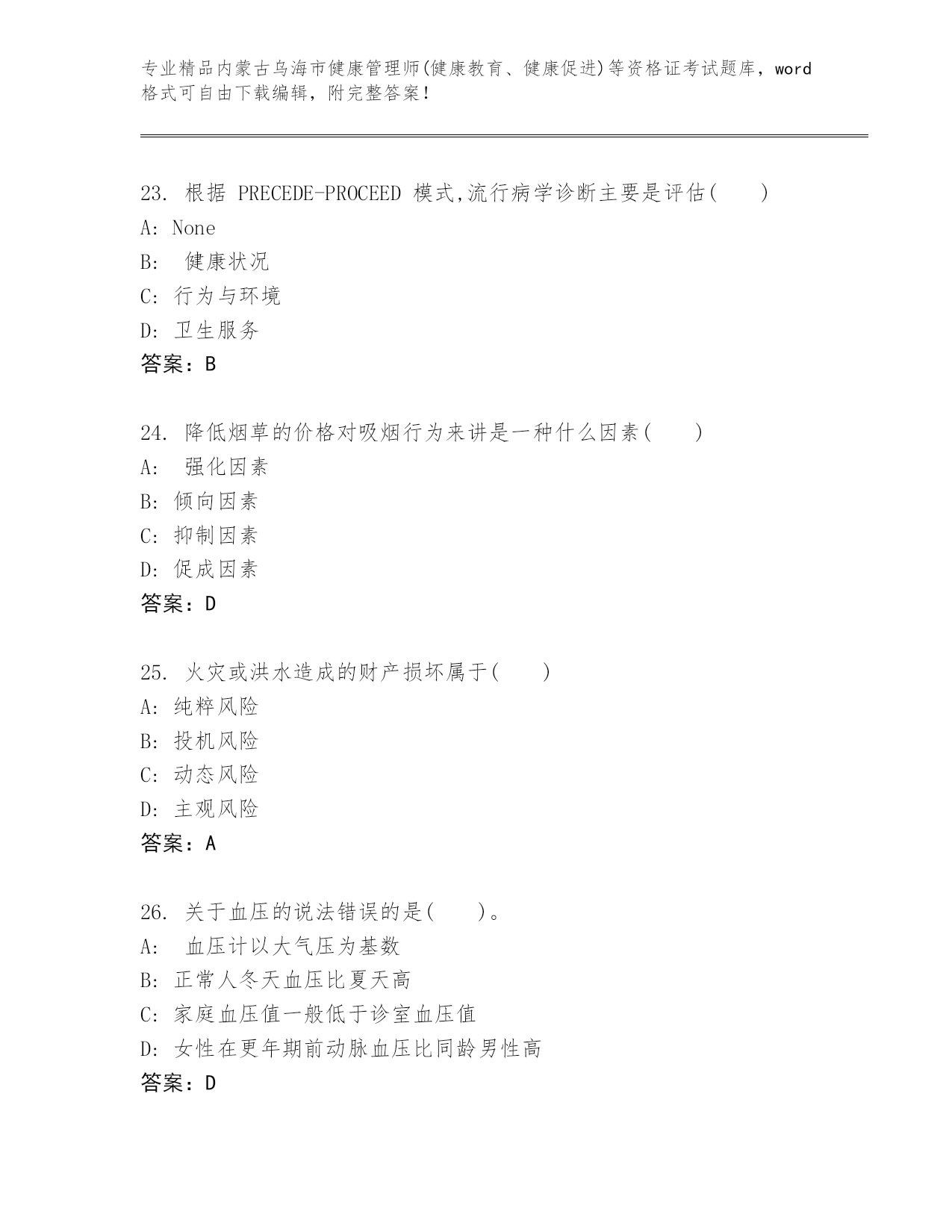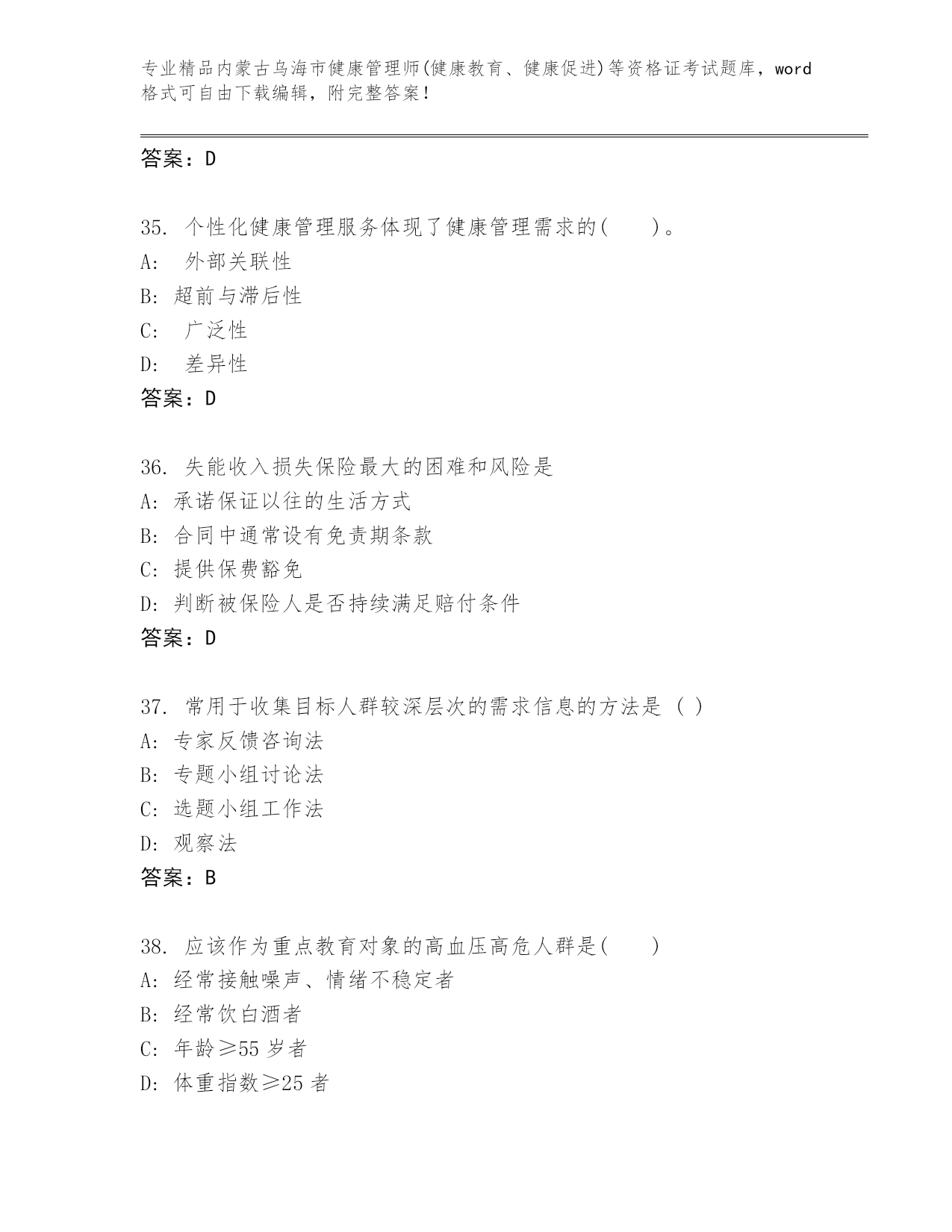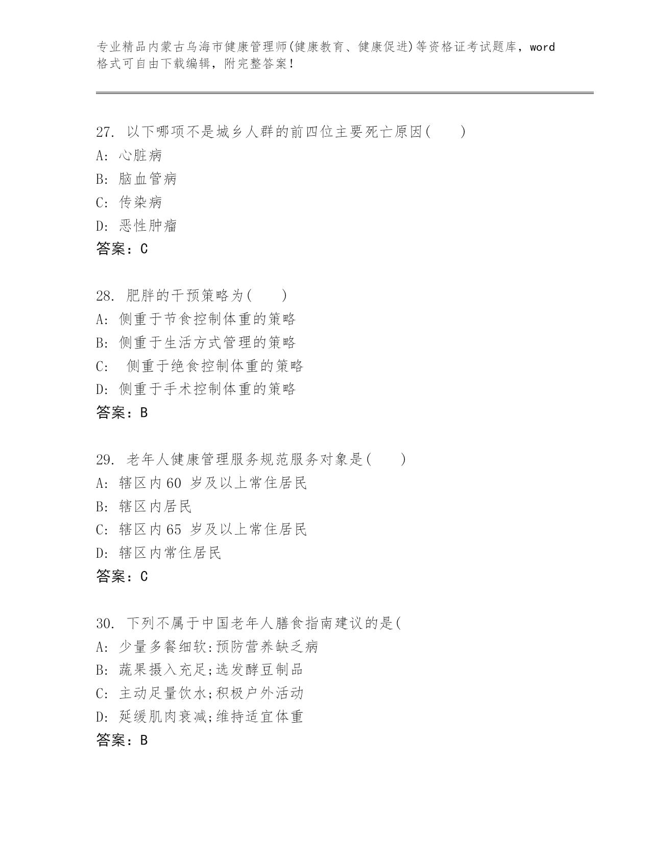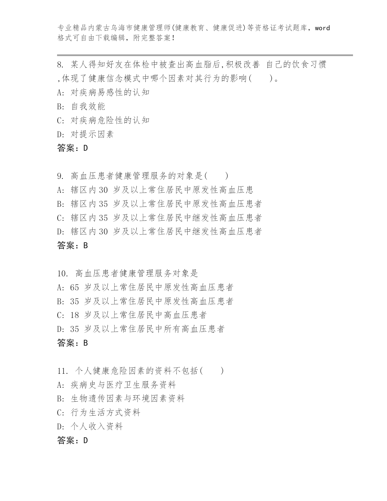 精品内蒙古乌海市健康管理师(健康教育、健康促进)等资格证考试真题【含答案】.docx
