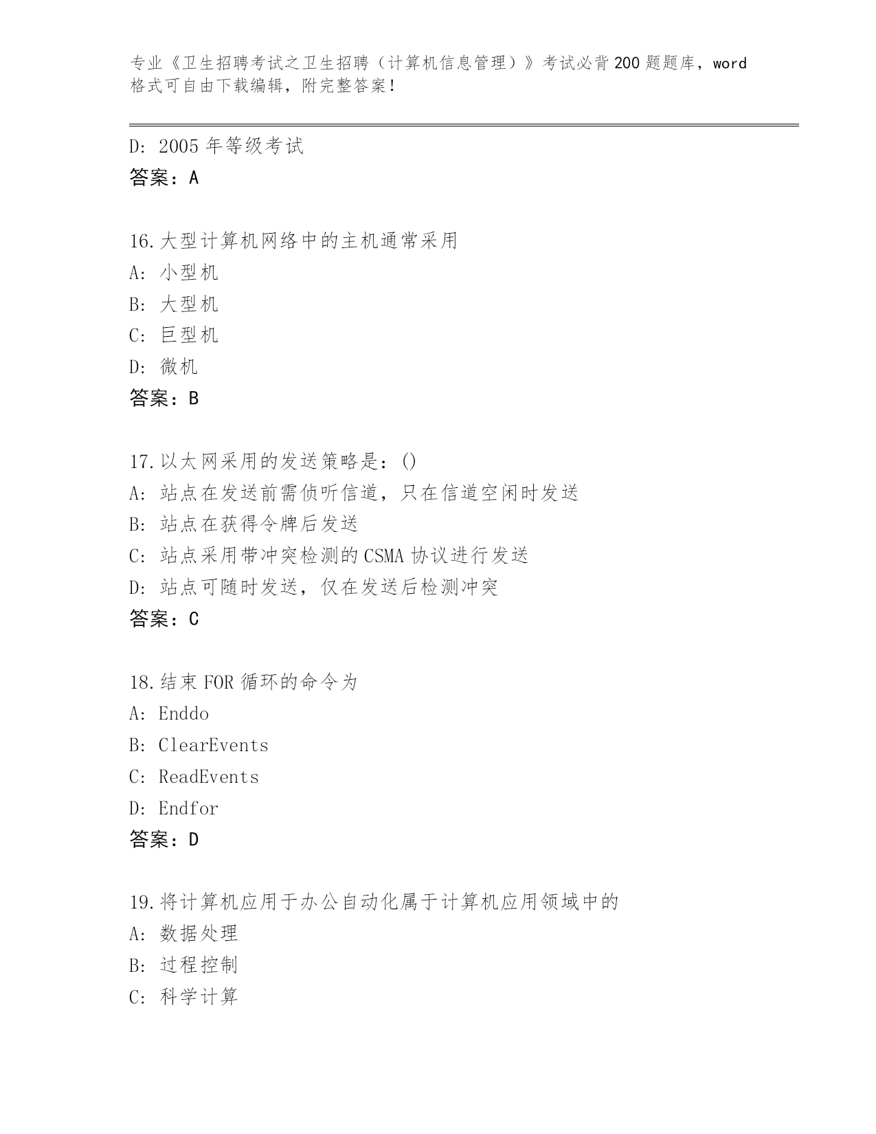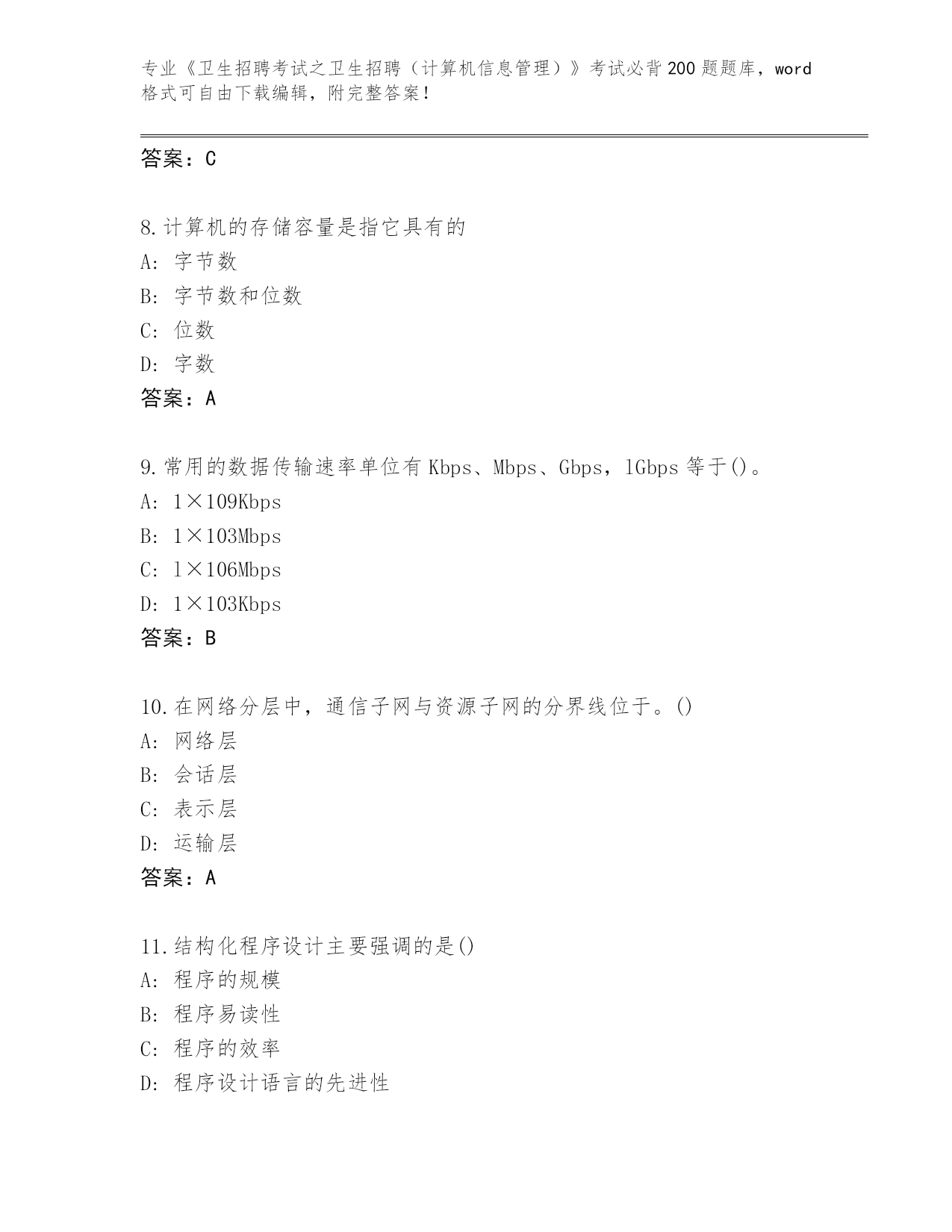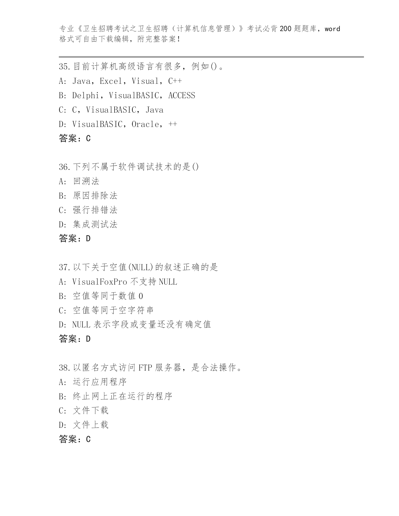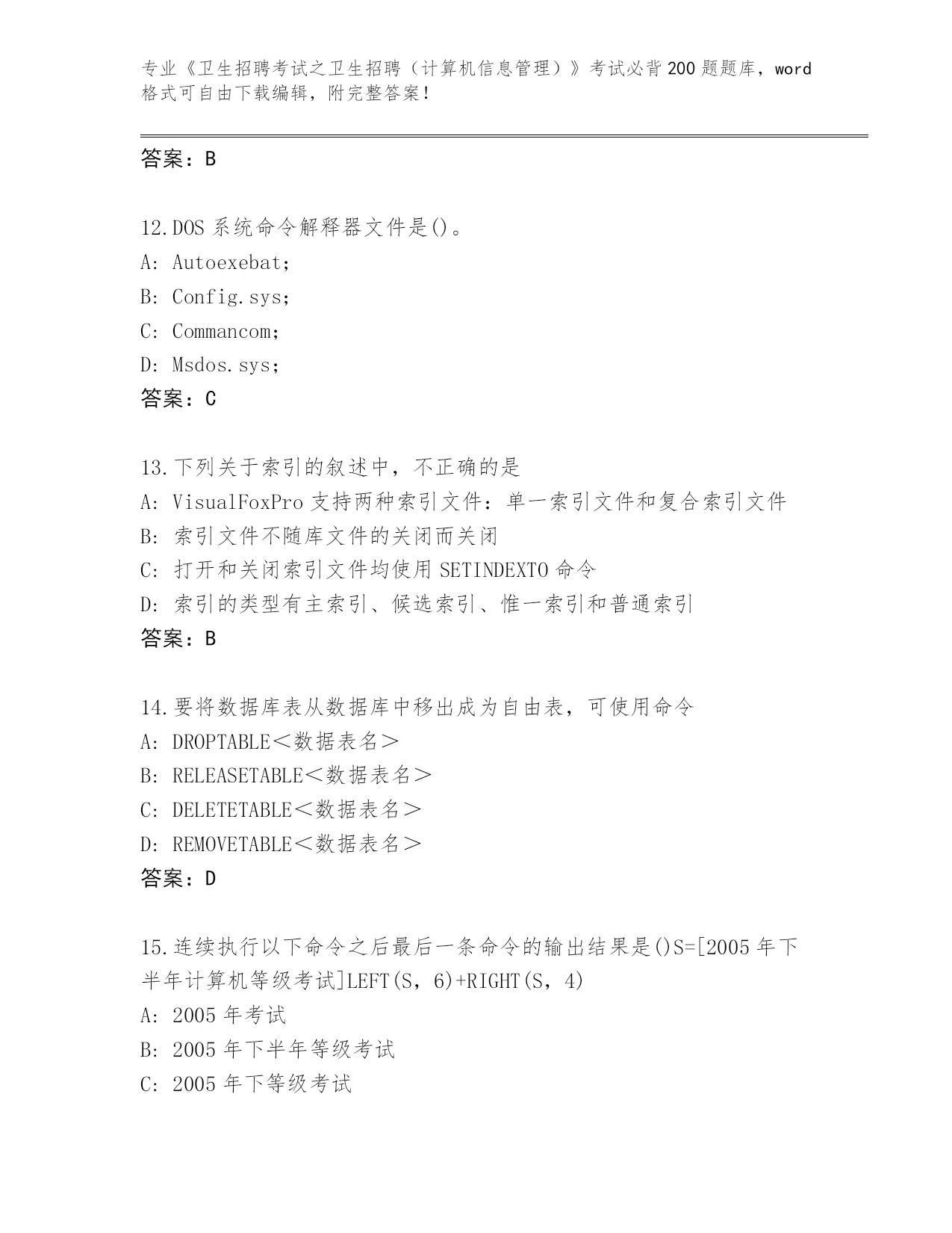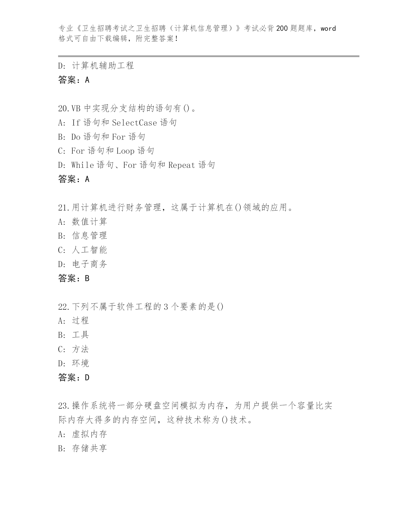 2024年陕西省蓝田县《卫生招聘考试之卫生招聘(计算机信息管理)》考试必背200题内部题库AB卷