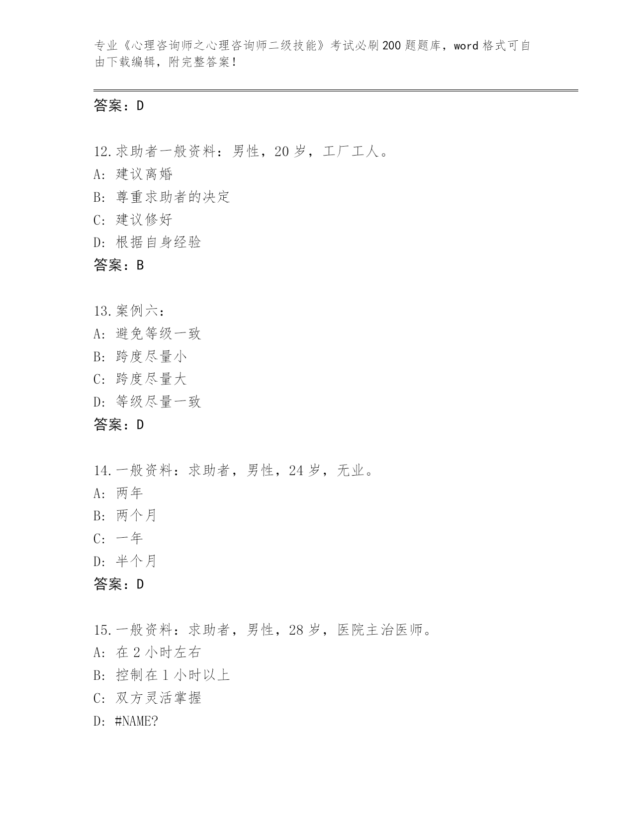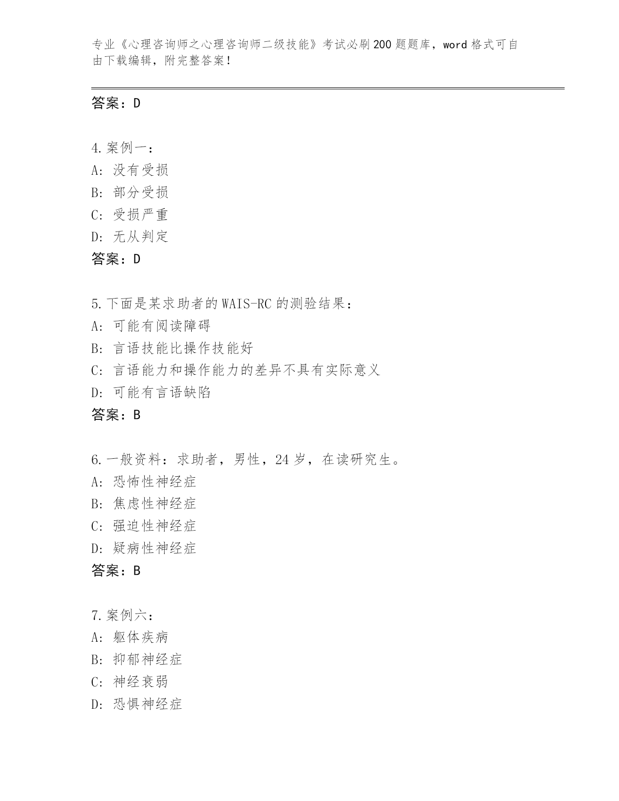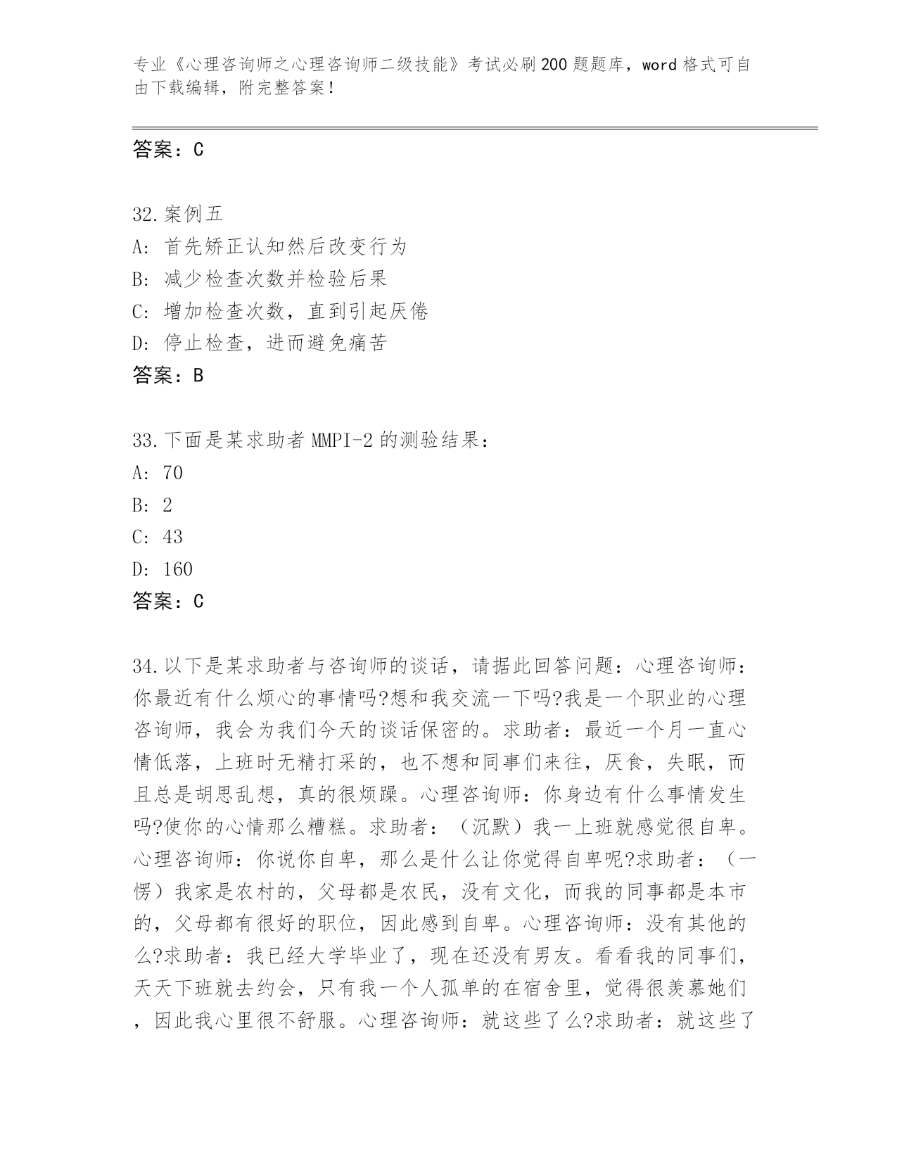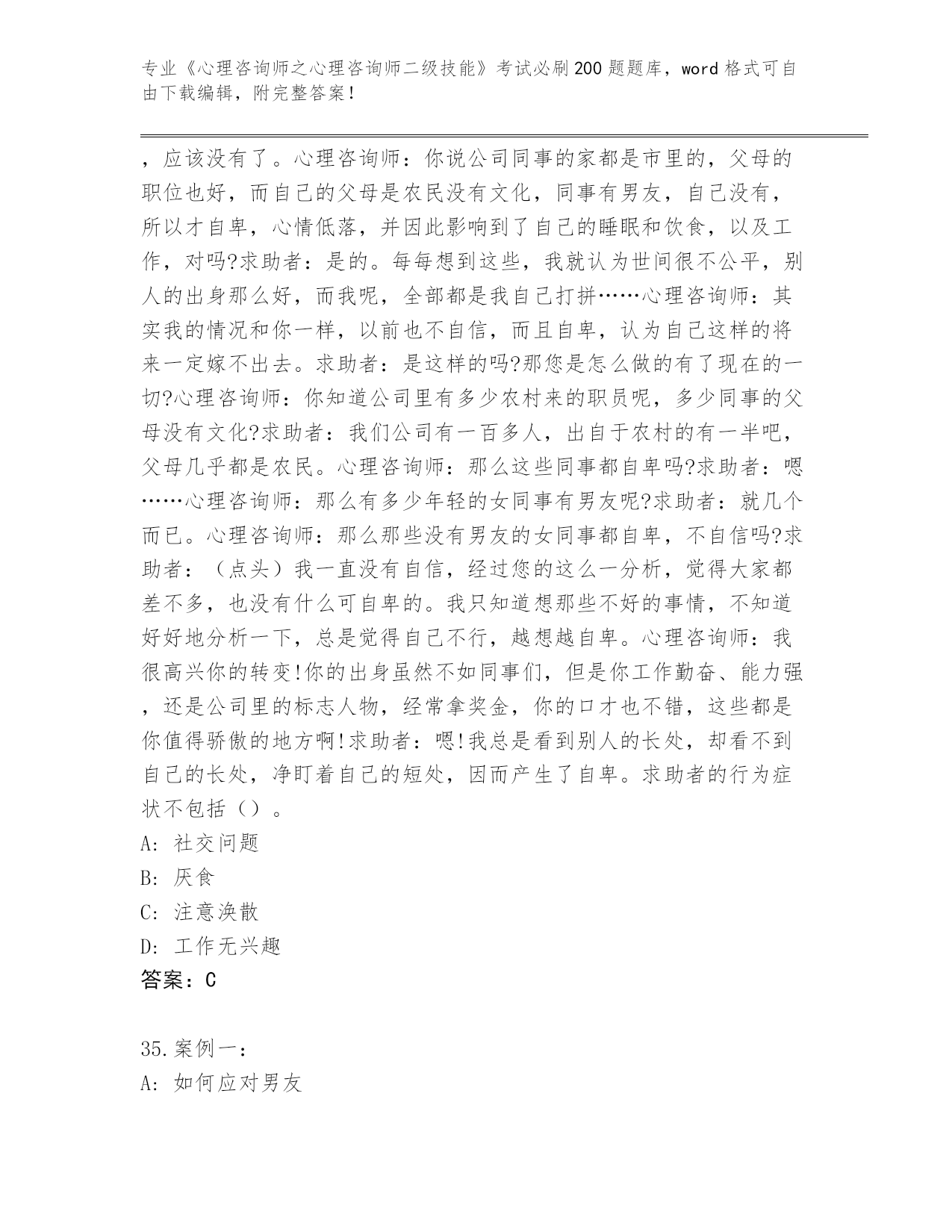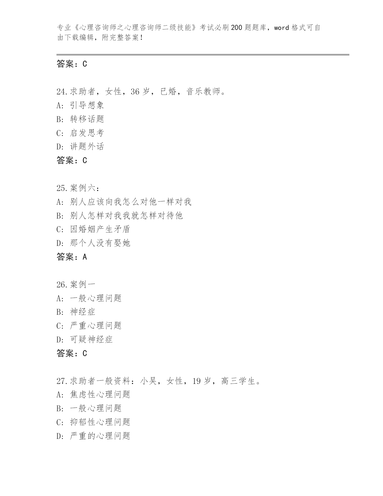 贵州省2024年《心理咨询师之心理咨询师二级技能》考试必刷200题题库及答案(考点梳理)