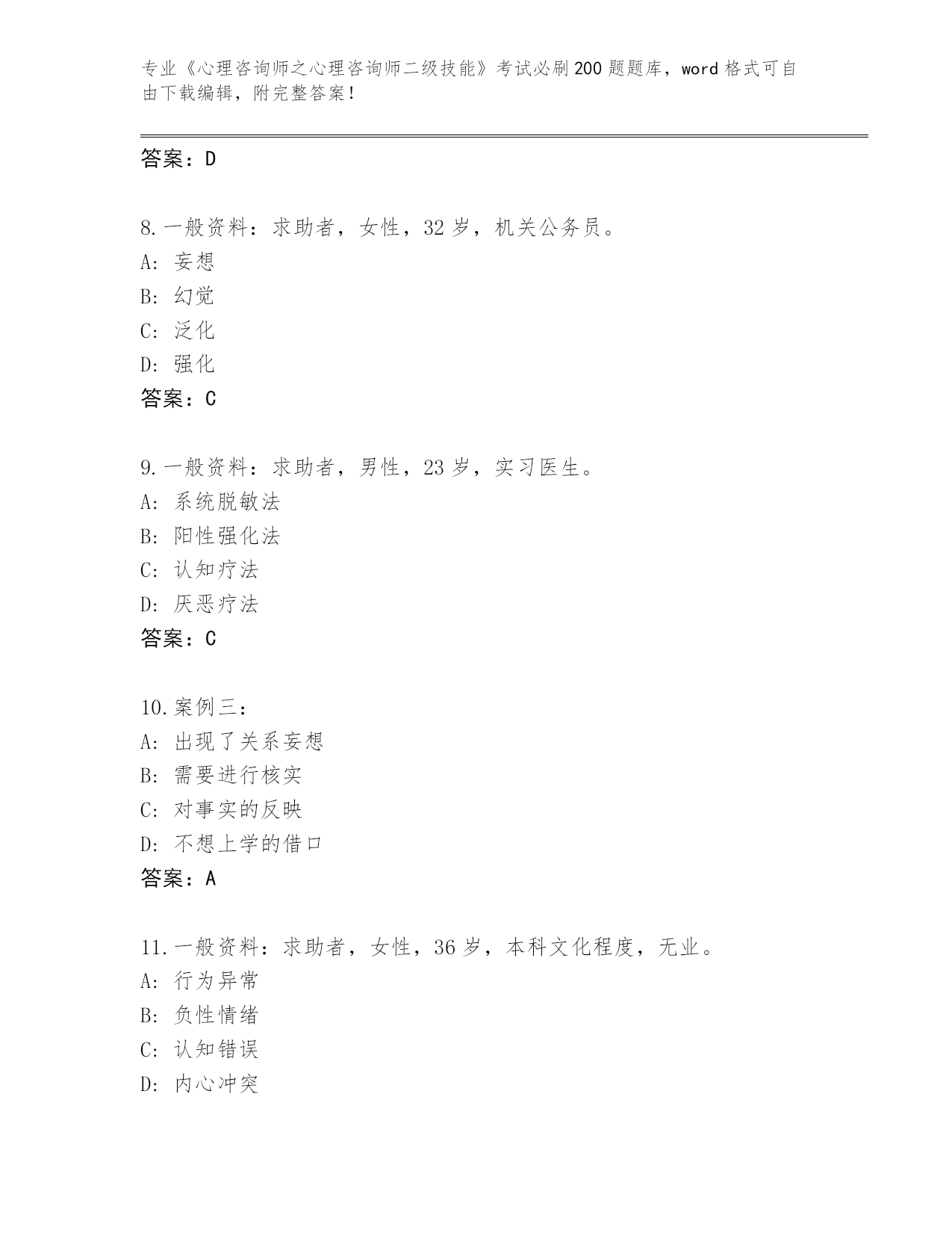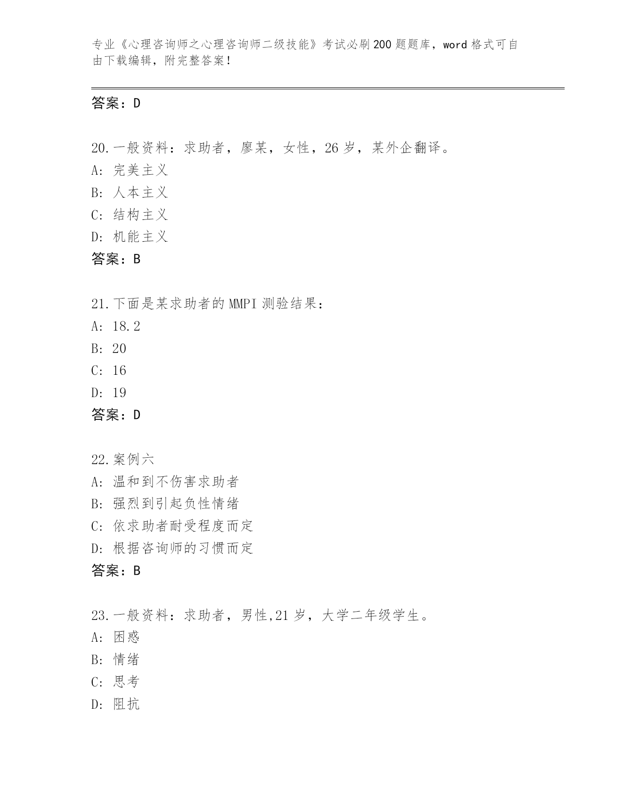 吉林省《心理咨询师之心理咨询师二级技能》考试必刷200题完整版(考点梳理)