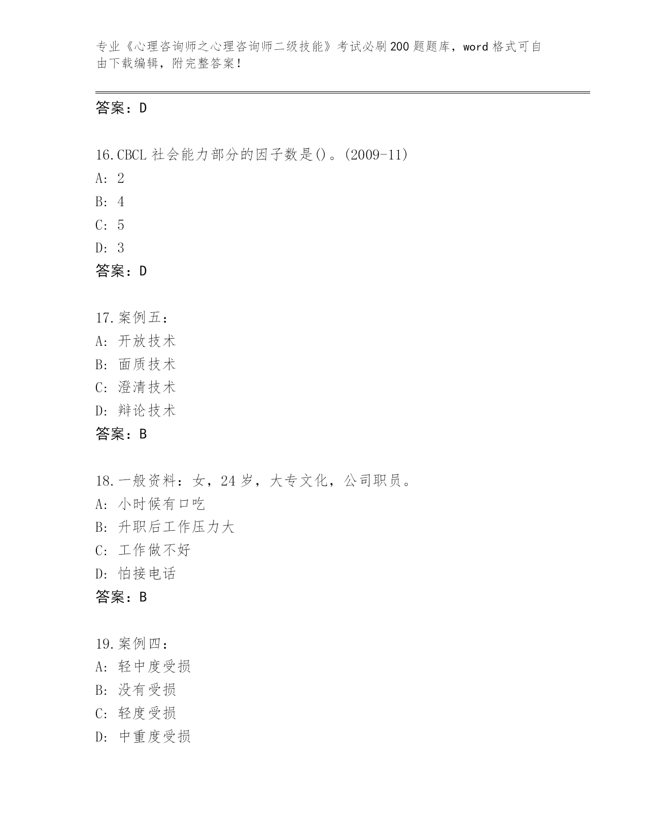 山西省蒲县《心理咨询师之心理咨询师二级技能》考试必刷200题完整题库(考点梳理)