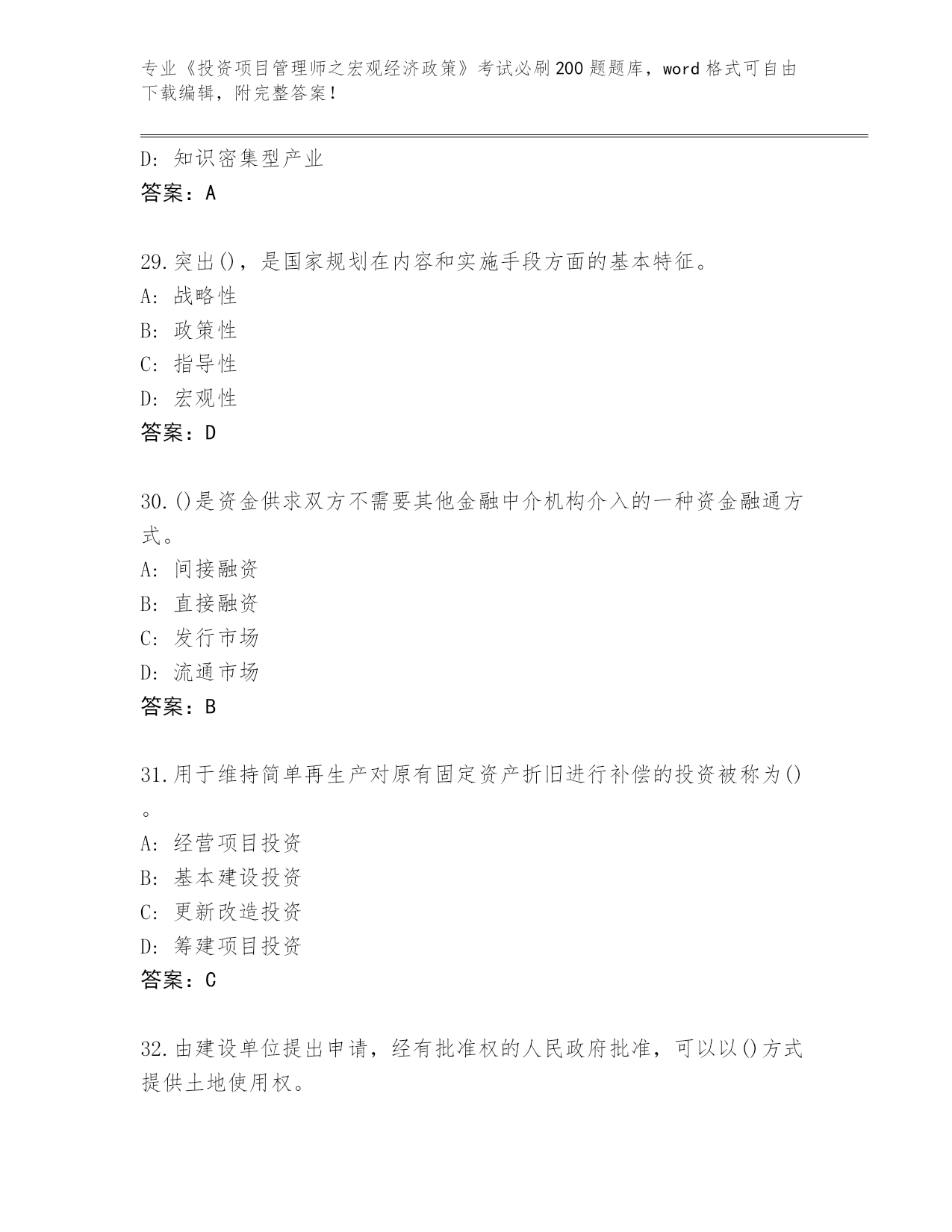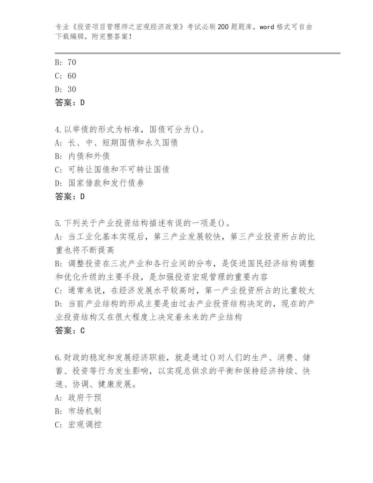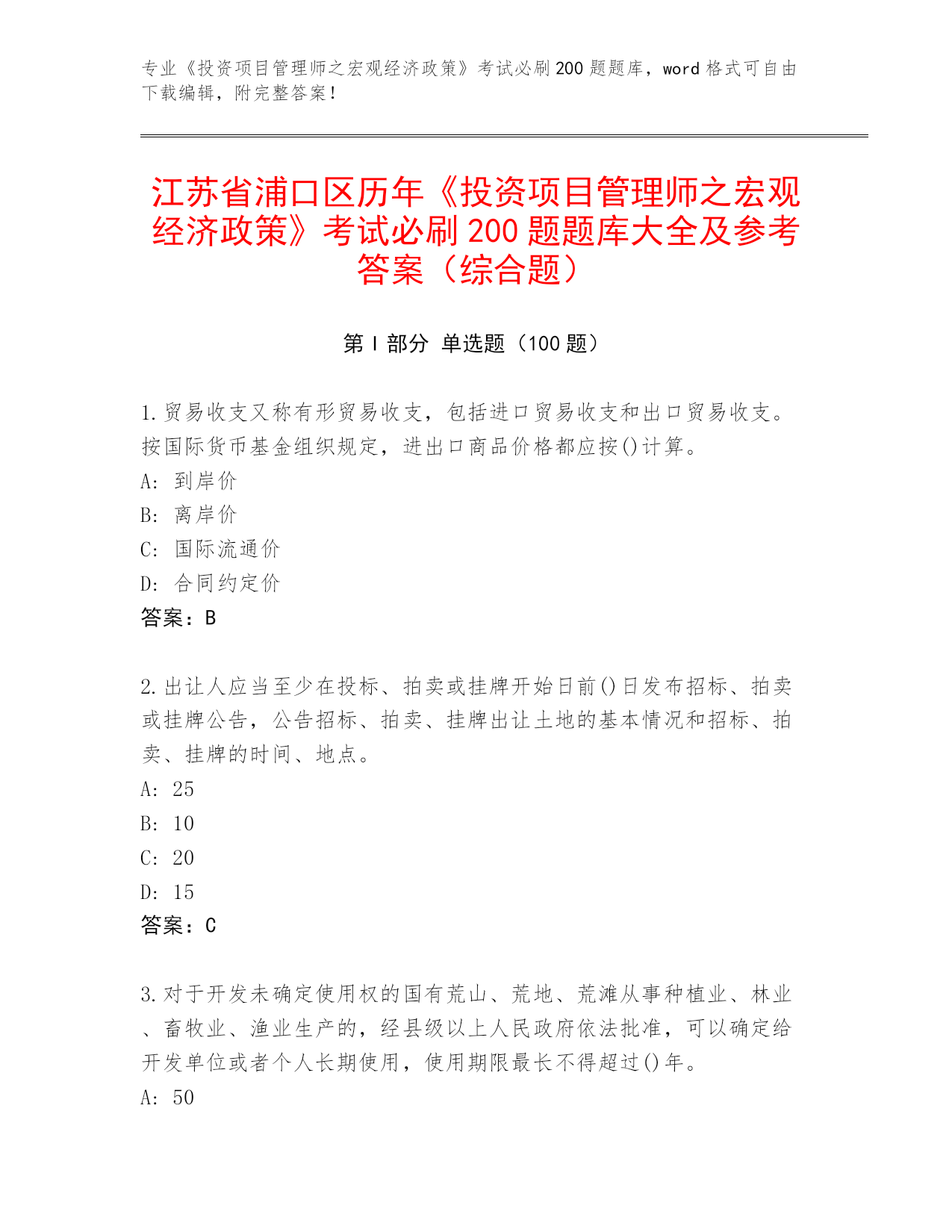 2024年江苏省浦口区《投资项目管理师之宏观经济政策》考试必刷200题题库及参考答案