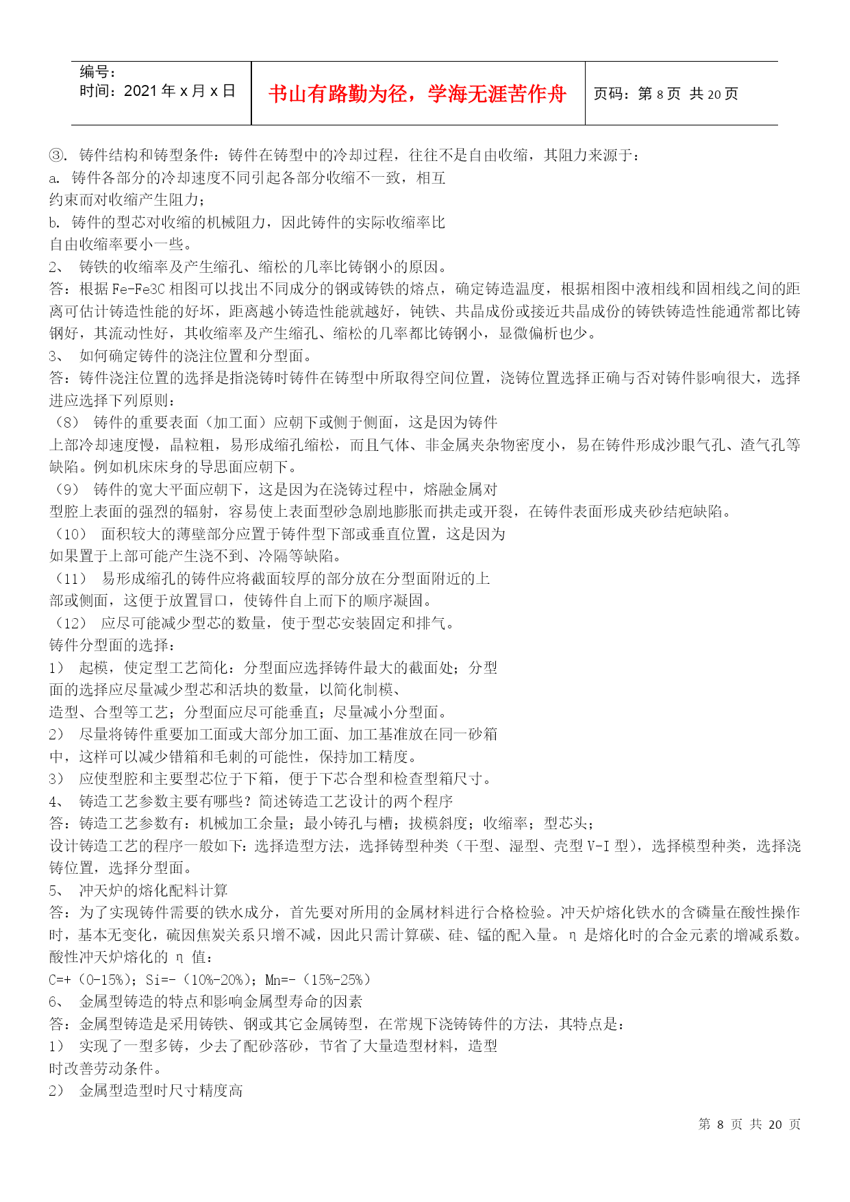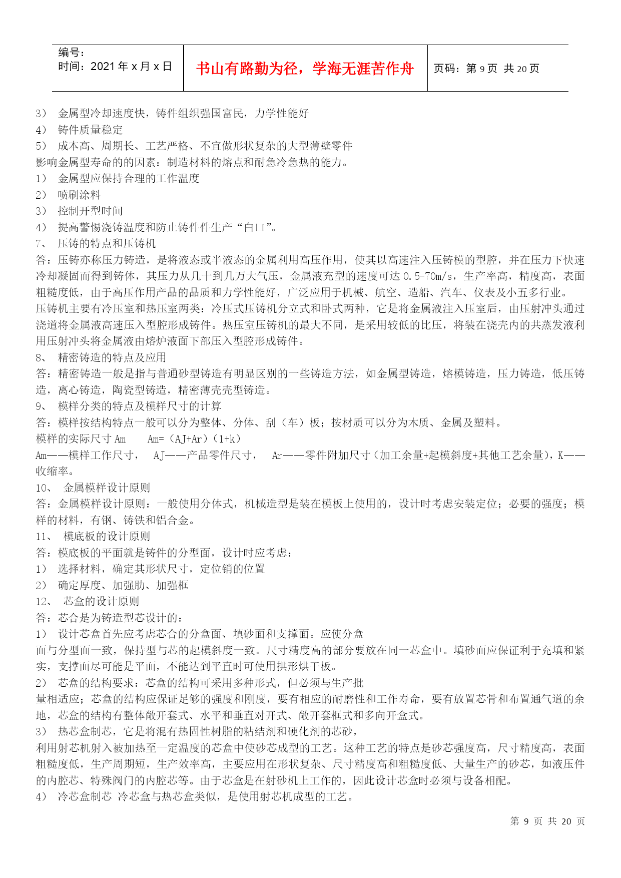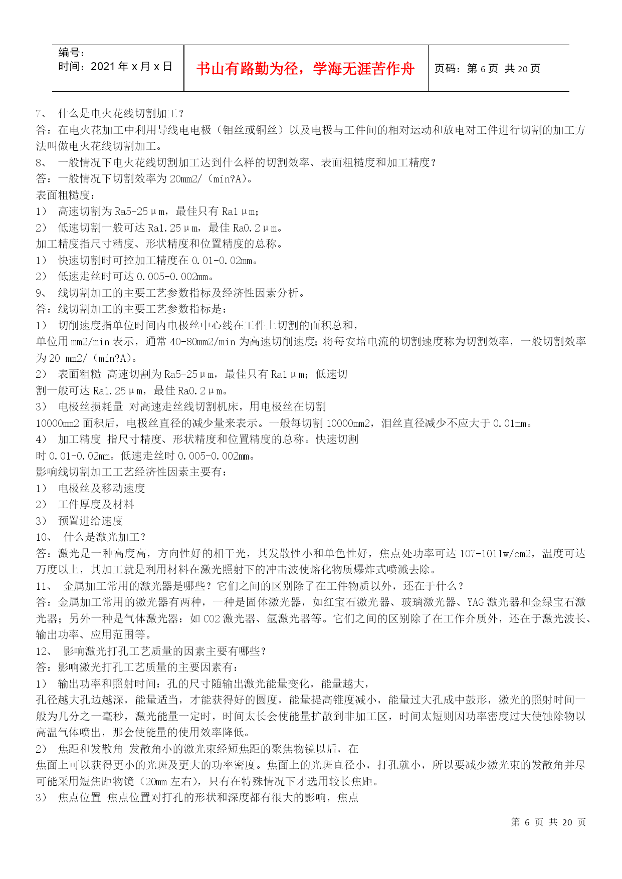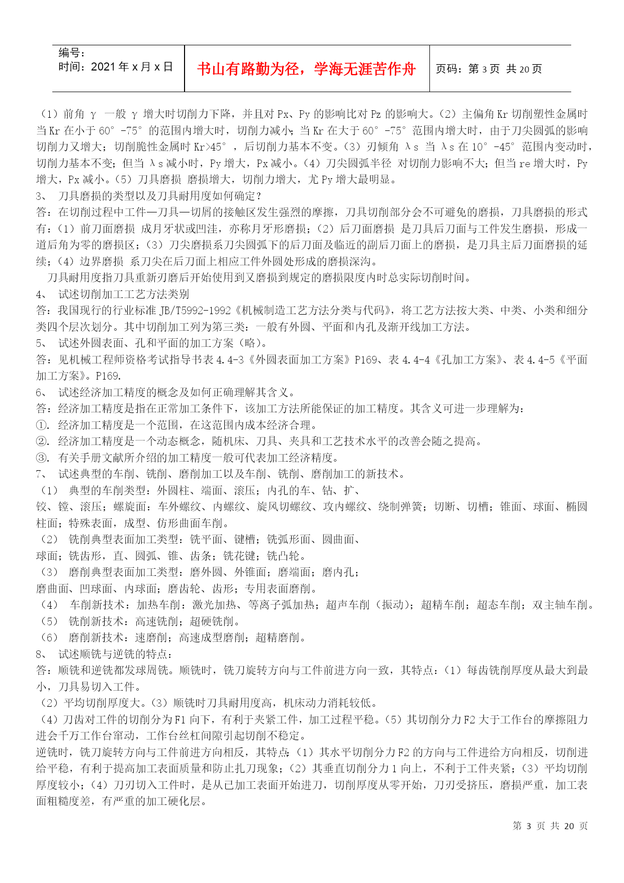编号:时间:2021年x月x日书山有路勤为径,学海无涯苦作舟页码:第PAGE20页共NUMPAGES20页第PAGE\*MERGEFORMAT20页共NUMPAGES\*MERGEFORMAT20页(1)应小于工艺装备使用年限(2)应小于产品生产年限(3)应小于国家规定的年限4.2工艺装备的设计与制造1、工艺装备包括哪些内容?它们如何分类?答:为完成加工工艺过程必须的切削刀具、机床夹具、压力加工和铸造加工用的各种模具和工具焊接加工用的夹具和工具装配用的工具、特种加工用工具各种计量检测工具各种加工用辅具以及各种工位器具等统称为工艺装备。工艺装备的类型:(1)按制造工艺分类:切削加工用的工艺装备、装配用工艺装备、特殊加工用工艺装备、铸造用工艺装备、压力加工用工艺装备、焊接用工艺装备。(2)按标准化、通用化、组合化程度分类:标准工艺装备、通用工艺装备、专用工艺装备、组合工艺装备。2、工艺装备的选用和设计原则是什么?答:工艺装备的选用和设计原则是:①.高低耗原则;②.遵守工装设备的通化(标准化、通用化、系列化和组合化)原则;③.尽量缩短生产准备周期,满足试制和投产期要求;④.缩短工艺装备投资回收期与满足相应的技术经济指标,产品试制中的工艺装备费用不超过试制产品成本的10%-15%。产品正式生产阶段中工艺装备费用占产品成本的比例应该在5%以下。外购工艺装备、自制工艺装备与专用工艺装备的消耗成本比例应为2:1:3,以此来提高经济效益;⑤.保证快速高效与安全方便;⑥.工艺装备具有良好的结构工艺性。3、组合工艺装备(夹具)的特点是什么?答:组合工艺装备是一种带有柔性的特殊的工艺装备,其特点为:1)其完全或主要由标准元件和标准部件组装而成2)其是针对被加工工件的某道工序的要求组装而成的3)用完后可拆卸还原以备后用4)一般可组成各类机床的组合夹具、焊接、检验、装配及冲模组合夹具。4、工艺装备选择的依据是什么?选择的原则是什么?选择的程序又是什么?答:(1)工艺装备选择的依据是:工艺方案;工艺规程;工序要求与设备;本企业的现有工艺装备条件;各类工艺装备的标准、订购手册、图册及使用说明书。(2)其选择的原则是:高效低耗;标准化、通用化、系列化、组合化;生产周期短;满足投资回收期要求及经济指标;方便、省力;良好的结构工艺性,便于制造。(3)其选择的程序是:认真分析工艺方案;确定工艺装备类型(标准、通用、专用、组合)与规格;填写各种工艺装备明细表或编制工艺装备设计任务书;主管批准。5、进行工艺装备验证的目的和内容是什么?如何进行工艺装备的验证?(1)进行工艺装备验证的目的:①.保证产品零件部件加工质量符合设计和工艺要求。②.验证工艺装备的可靠性、合理性、安全性以保证产品的正常生产。(2)工艺装备验证的内容:①.安装方便、可靠、安全、总重量是否超过设备承重能力。②.保证工件正确、可靠的定位与夹紧等。③.满足工艺要求,在加工余量、切削用量符合工艺要求的条件下工艺装备刚度是否满足加工要求,刀具是否干涉等。④.满足生产进度和批量生产要求。(3)工艺装备的验证方法:①.固定场地、固定设备上验证。②.现场验证。③.重点验证——大型、复杂、精密、关键的工艺装备。④.一般验证。⑤.简单验证。4.3车间平面设计1、车间平面设备布置的原则是什么?答:车间平面设备布置的原则:生产效率;生产设备的利用率稳定;生产过程的工件库存量小,加工流程平衡;生产柔性与适应性;生产的经济性。2、如何根据产品品种P和产品Q来确定车间生产设备的布置方案?答:车间生产设备的布置方案基本取决于产品种类和生产量,根据P(产品种类)—Q(生产量)分析建立P—Q图,再确定车间生产设备的布置方案。(1)按产品(流水线生产线)的设备布置方案——Q/P比值大时,适合于连续的大量生产,应按照生产产品的工艺路线进行车间生产以及辅助设备的布置;(2)按工程(或专业化)的设备布置方案——当Q/P小时,即单件,多品种小批量生产。同类型生产设备集中布置在车间的一个区域内,形成专业化的加工区域;(3)成组(或单元)的设备布置方案——当Q/P介于上述两者之间,可按成组技术原理和方法将多种产品的零件分类成组,形成较大的成组批量,针对扩大批量的零件组的加工需要来布置车间生产设备和辅助设备形成生产单元。3、车间生产设备的布置方式都有哪几种?各有何特点?适合于何种场合?答:车间生产设备的布置有机群式和流水线两种布置。(1)机群式布置按工程或工艺专业化原则,将同类机床布置在一个区域其特点是对产品品种适应性强,有得工艺管理和提高设备利用率,生产管理方便,一般工件加工路线长周转多,生产周期长在制品量大且流动资金占用多,车间之间协作多,管理工作复杂。(2)流水线布置按生产对象专业化原则对某种零件(或零件组)按