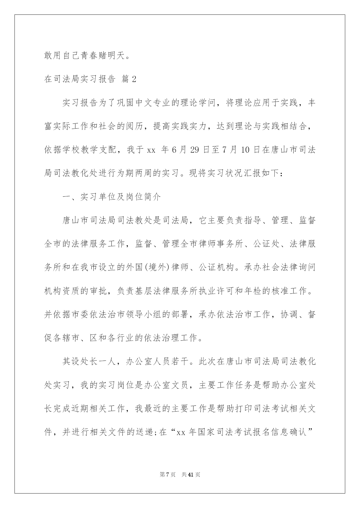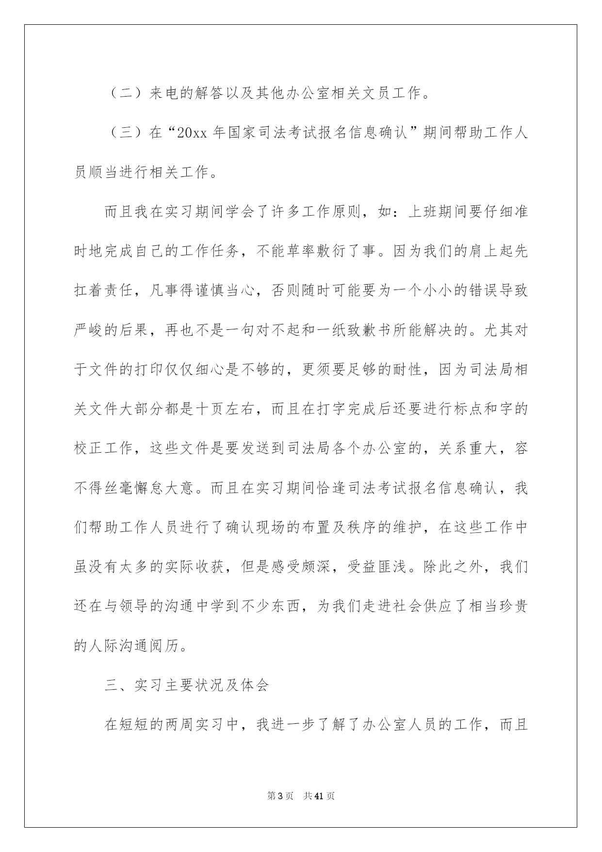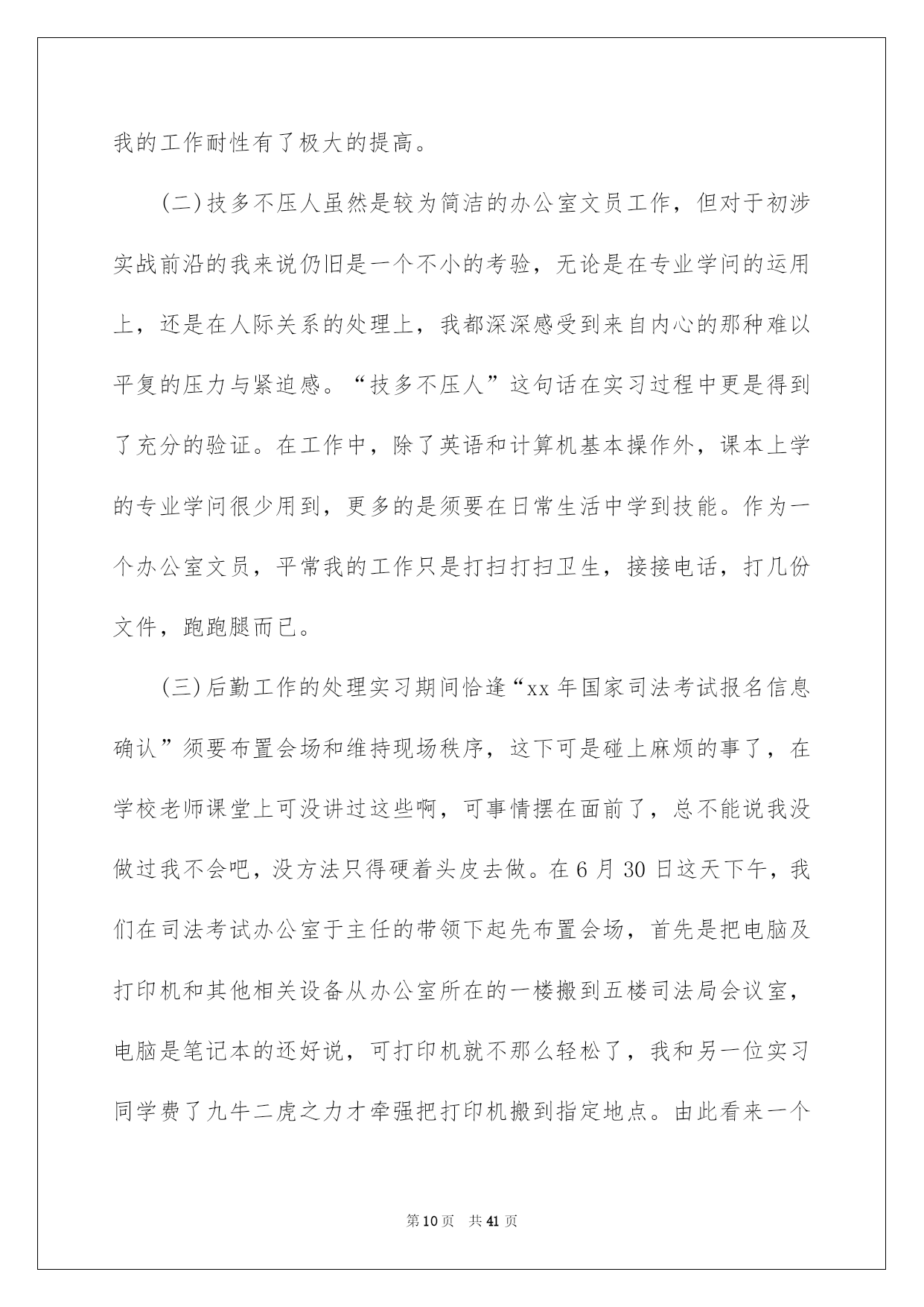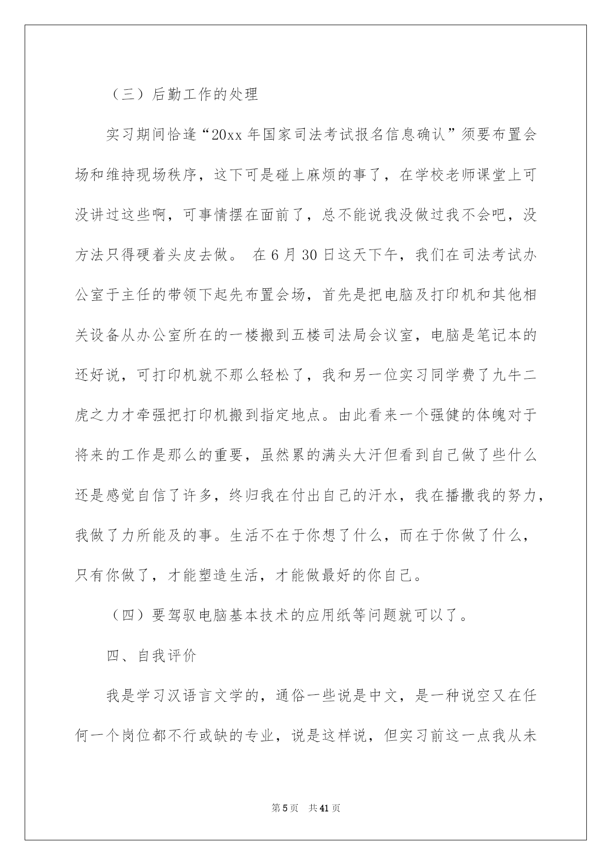 第PAGE\*Arabic\*MERGEFORMAT41页共NUMPAGES\*Arabic\*MERGEFORMAT41页第PAGE\*MERGEFORMAT41页共NUMPAGES\*MERGEFORMAT41页第PAGE\*MERGEFORMAT41页共NUMPAGES\*MERGEFORMAT41页第PAGE\*MERGEFORMAT41页共NUMPAGES\*MERGEFORMAT41页第PAGE\*MERGEFORMAT41页共NUMPAGES\*MERGEFORMAT41页第PAGE\*MERGEFORMAT41页共NUMPAGES\*MERGEFORMAT41页第PAGE\*MERGEFORMAT41页共NUMPAGES\*MERGEFORMAT41页第PAGE\*MERGEFORMAT41页共NUMPAGES\*MERGEFORMAT41页第PAGE\*MERGEFORMAT41页共NUMPAGES\*MERGEFORMAT41页第PAGE\*MERGEFORMAT41页共NUMPAGES\*MERGEFORMAT41页第PAGE\*MERGEFORMAT41页共NUMPAGES\*MERGEFORMAT41页2022在司法局实习报告在司法局实习报告8篇随着个人的文明素养不断提升,我们都不行避开地要接触到报告,报告具有成文事后性的特点。你所见过的报告是什么样的呢?下面是我为大家收集的在司法局实习报告8篇,欢迎阅读与保藏。在司法局实习报告篇1为了巩固中文专业的理论学问,将理论应用于实践,丰富实际工作和社会的阅历,提高实践实力,达到理论与实践相结合,依据学校教学支配,我于20xx年6月29日至7月10日在唐山市司法局司法教化处进行为期两周的实习。现将实习状况汇报如下:一、实习单位及岗位简介唐山市司法局司法教处是司法局,它主要负责指导、管理、监督全市的法律服务工作,监督、管理全市律师事务所、公证处、法律服务所和在我市设立的外国(境外)律师、公证机构。承办社会法律询问机构资质的审批,负责基层法律服务所执业许可和年检的核准工作。并依据市委依法治市领导小组的部署,承办依法治市工作,协调、督促各辖市、区和各行业的依法治理工作。其设处长一人,办公室人员若干。此次在唐山市司法局司法教化处实习,我的实习岗位是办公室文员,主要工作任务是帮助办公室处长完成近期相关工作,我最近的主要工作是帮助打印司法考试相关文件,并进行相关文件的送递;在“20xx年国家司法考试报名信息确认”过程中,我还帮助布置了信息确认现场,并帮忙调试相关信息确认程序;在报名信息确认过程中我还帮忙维持了现场秩序。二、实习过程概述这是我第一次到司法局实习,没有相关实习阅历。又因为是大一实习,相关学问的学习还不足以胜任部分工作,所以此次实习的主要目的是熟识秘书工作的工作环境这些工作对工作人员技能和素养要求,增加解决实际问题的实力。在司法教化处实习期间,我的主要工作有以下几项:(一)办公室人员支配我做些简洁的办公事务工作及一些相关的后勤工作,例如:文字数据输入,以及文件的打印整理,办公工具的搬送等。(二)来电的解答以及其他办公室相关文员工作。(三)在“20xx年国家司法考试报名信息确认”期间帮助工作人员顺当进行相关工作。而且我在实习期间学会了许多工作原则,如:上班期间要仔细准时地完成自己的工作任务,不能草率敷衍了事。因为我们的肩上起先扛着责任,凡事得谨慎当心,否则随时可能要为一个小小的错误导致严峻的后果,再也不是一句对不起和一纸致歉书所能解决的。尤其对于文件的打印仅仅细心是不够的,更须要足够的耐性,因为司法局相关文件大部分都是十页左右,而且在打字完成后还要进行标点和字的校正工作,这些文件是要发送到司法局各个办公室的,关系重大,容不得丝毫懈怠大意。而且在实习期间恰逢司法考试报名信息确认,我们帮助工作人员进行了确认现场的布置及秩序的维护,在这些工作中虽没有太多的实际收获,但是感受颇深,受益匪浅。除此之外,我们还在与领导的沟通中学到不少东西,为我们走进社会供应了相当珍贵的人际沟通阅历。三、实习主要状况及体会在短短的两周实习中,我进一步了解了办公室人员的工作,而且从中得到了深刻的体会。主要有以下几点:(一)应当遵守严格的工作原则每天都要按时上下班,不能无故迟到早退。由于实习地距离学校较远,我们每天都要提前一小时从学校动身,每天上班下午我们有时按时下班,但遇到特别状况时我们就不得不延时下班刚好返回学校,工作的枯燥性,时常使我产生厌烦心情,但工作的责任感使我每次都宁静下来接着坚持完成工作任务,这使得我的工作耐性有了极大的提高。(