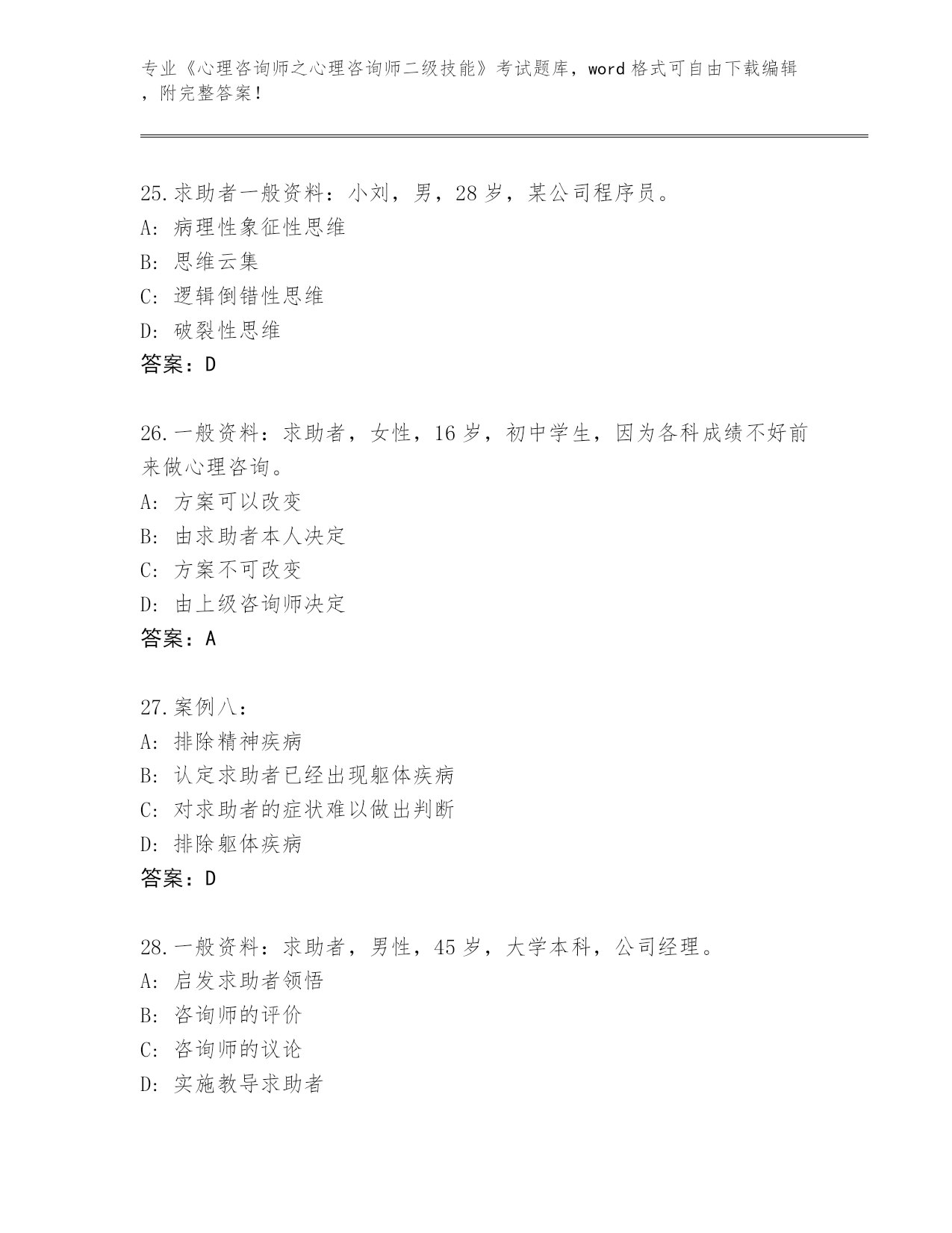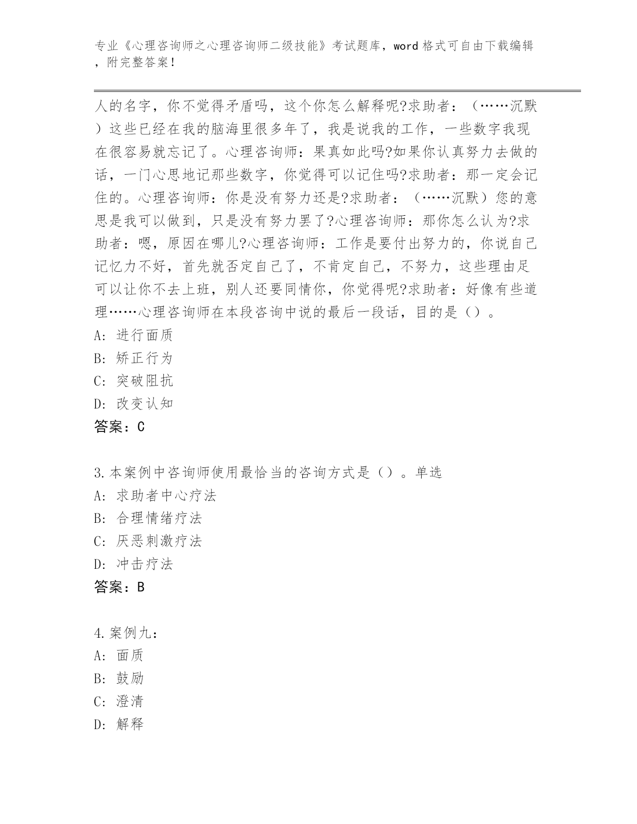 2024年辽宁省《心理咨询师之心理咨询师二级技能》考试题库必考题