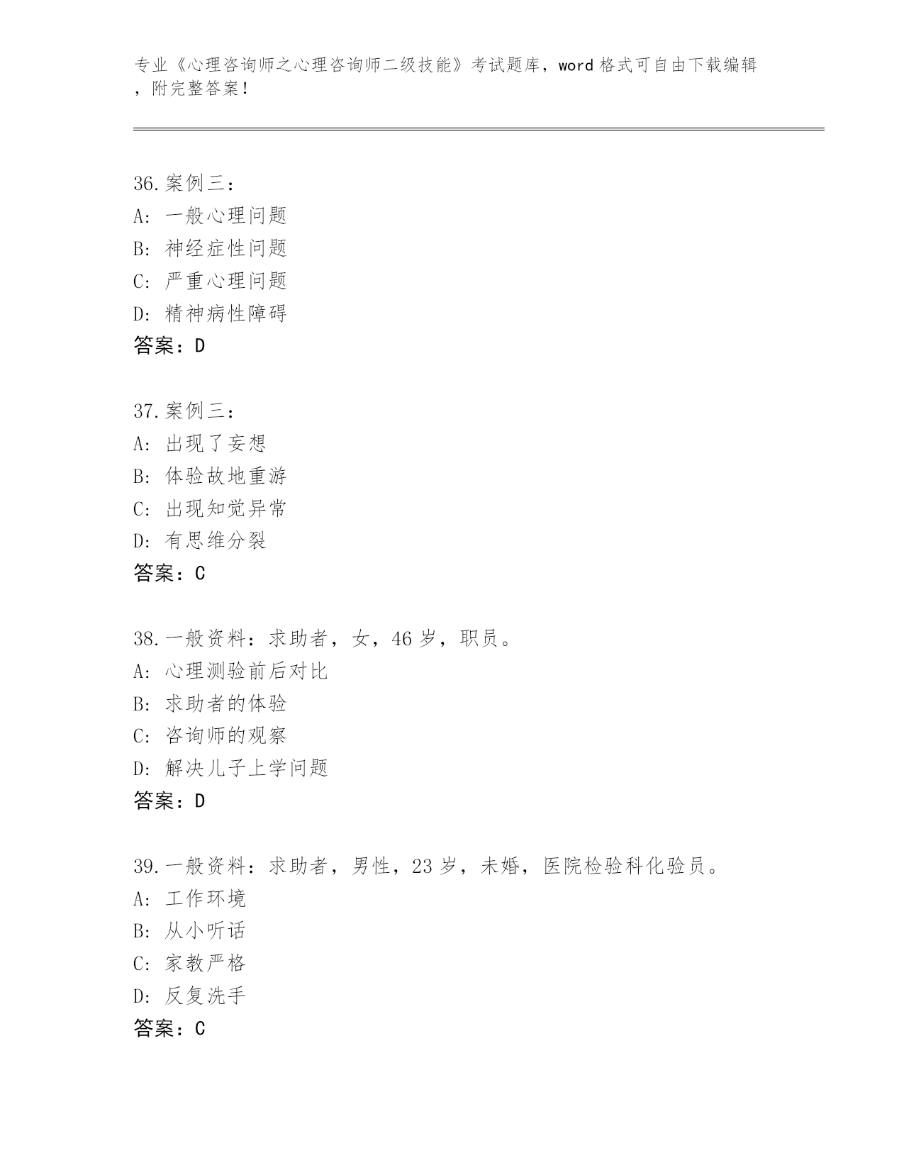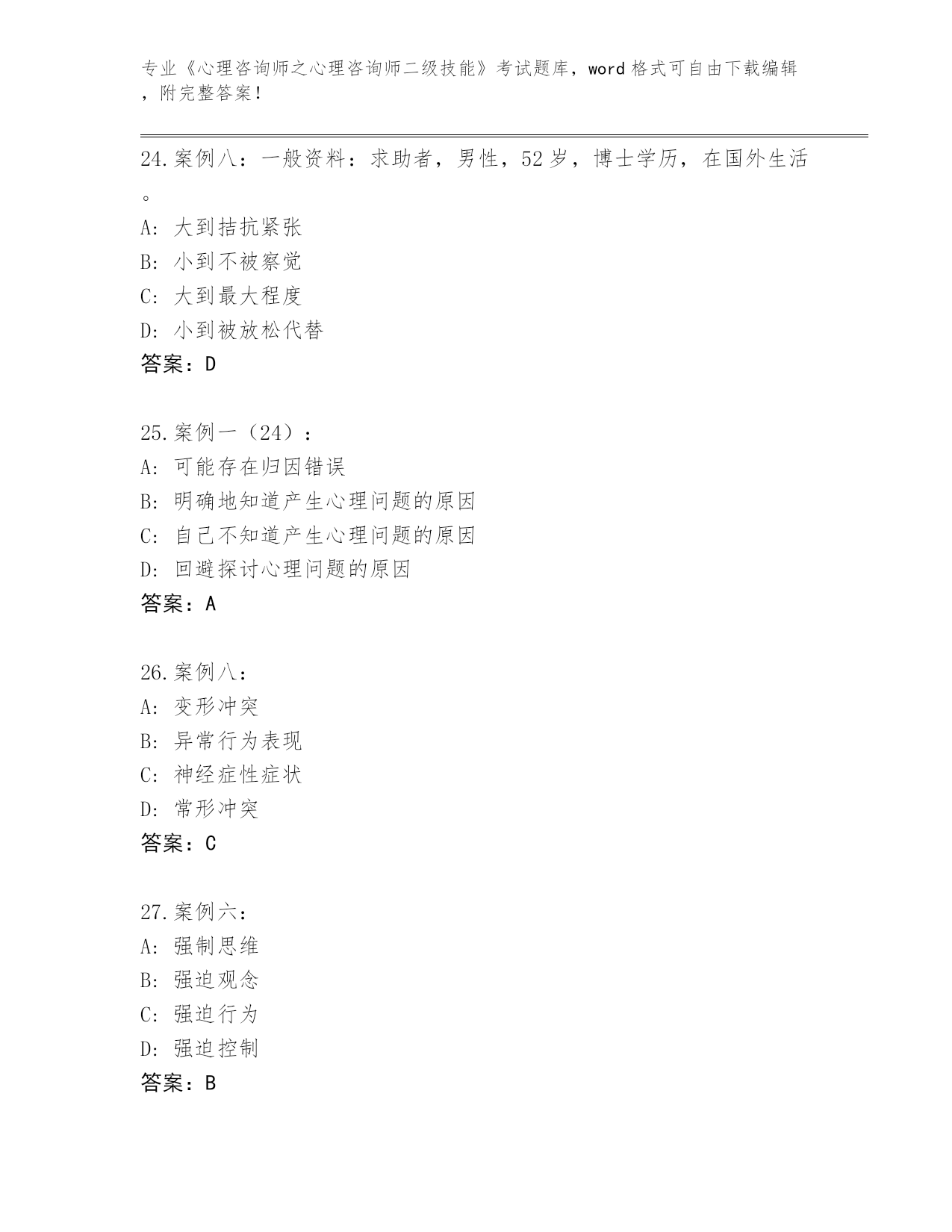 河南省2023-24年《心理咨询师之心理咨询师二级技能》考试大全含答案【典型题】