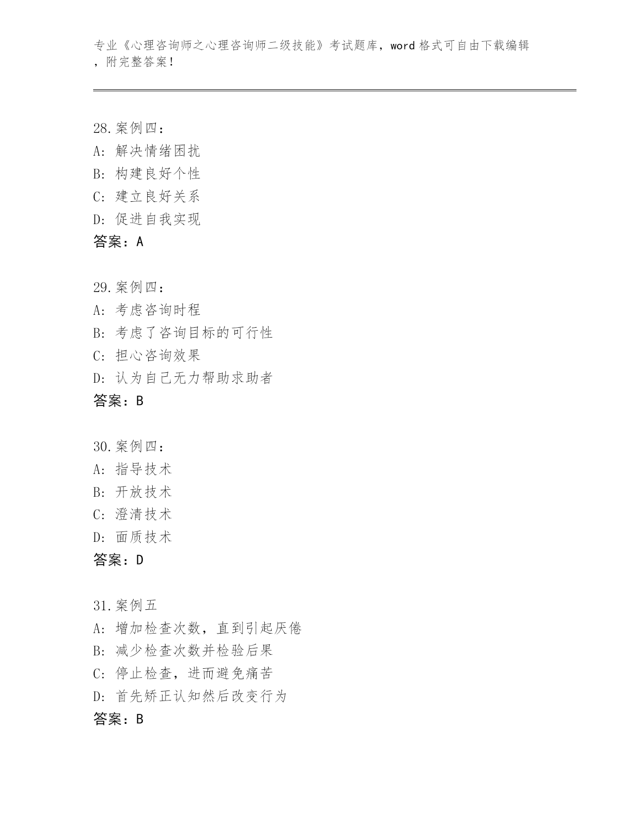 河南省鄢陵县《心理咨询师之心理咨询师二级技能》考试必刷200题大全(典型题)