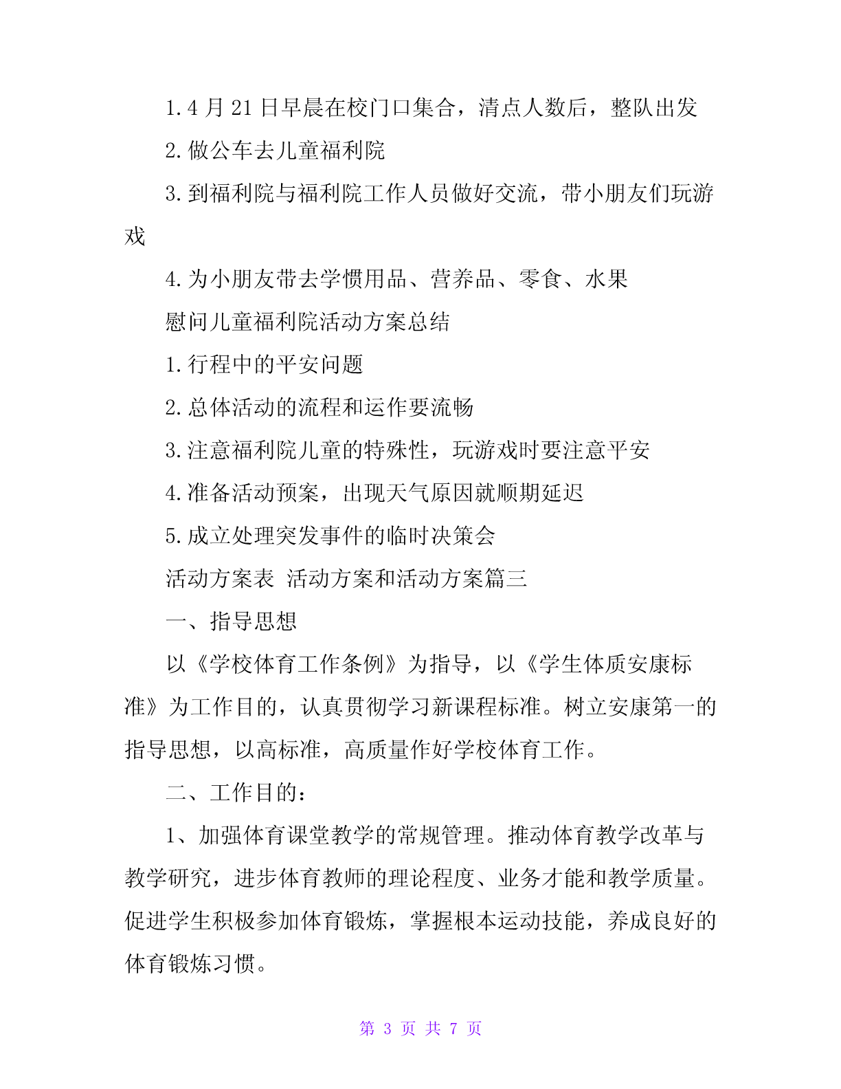 2024年活动计划表活动计划和活动方案(优秀五篇)