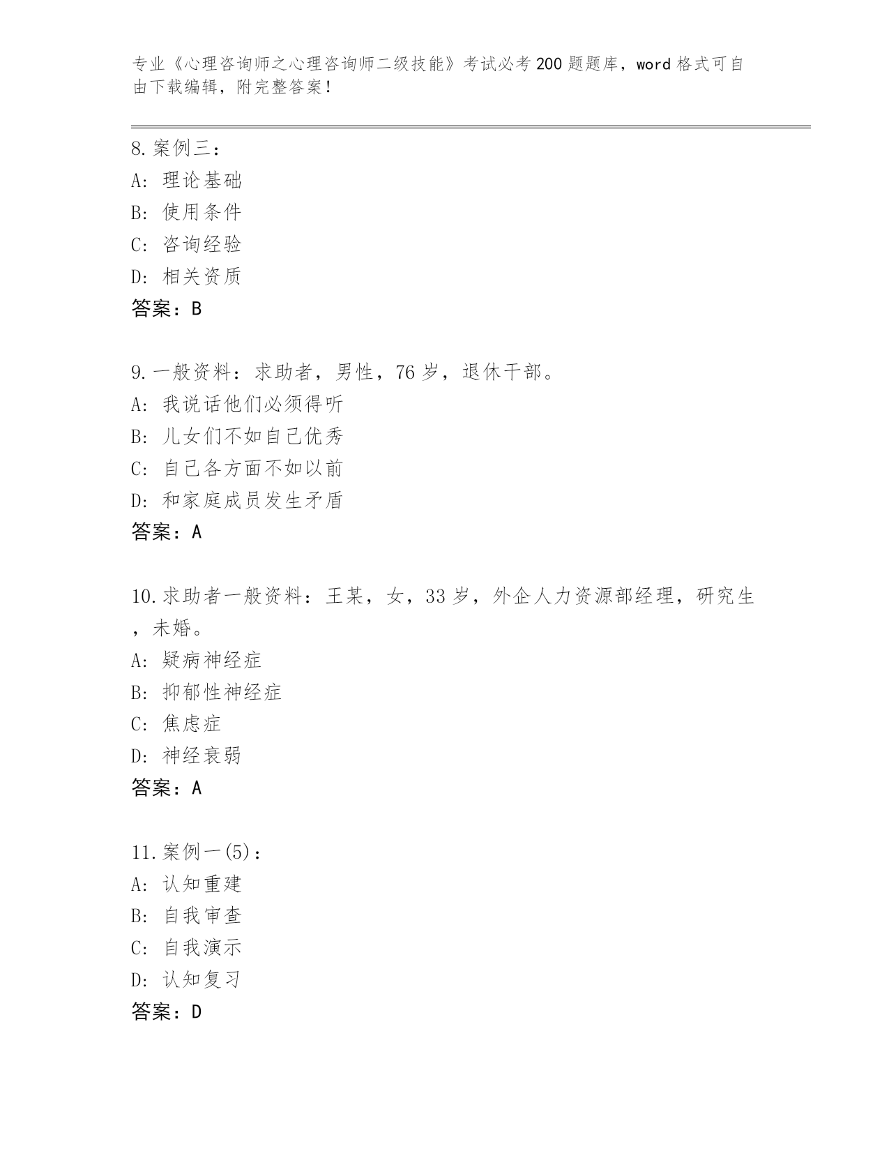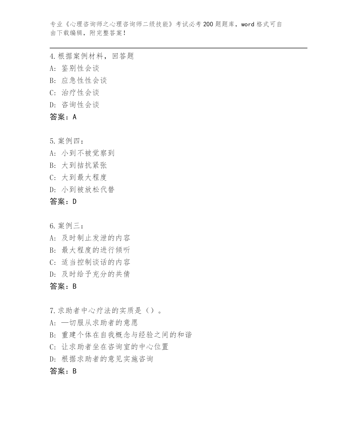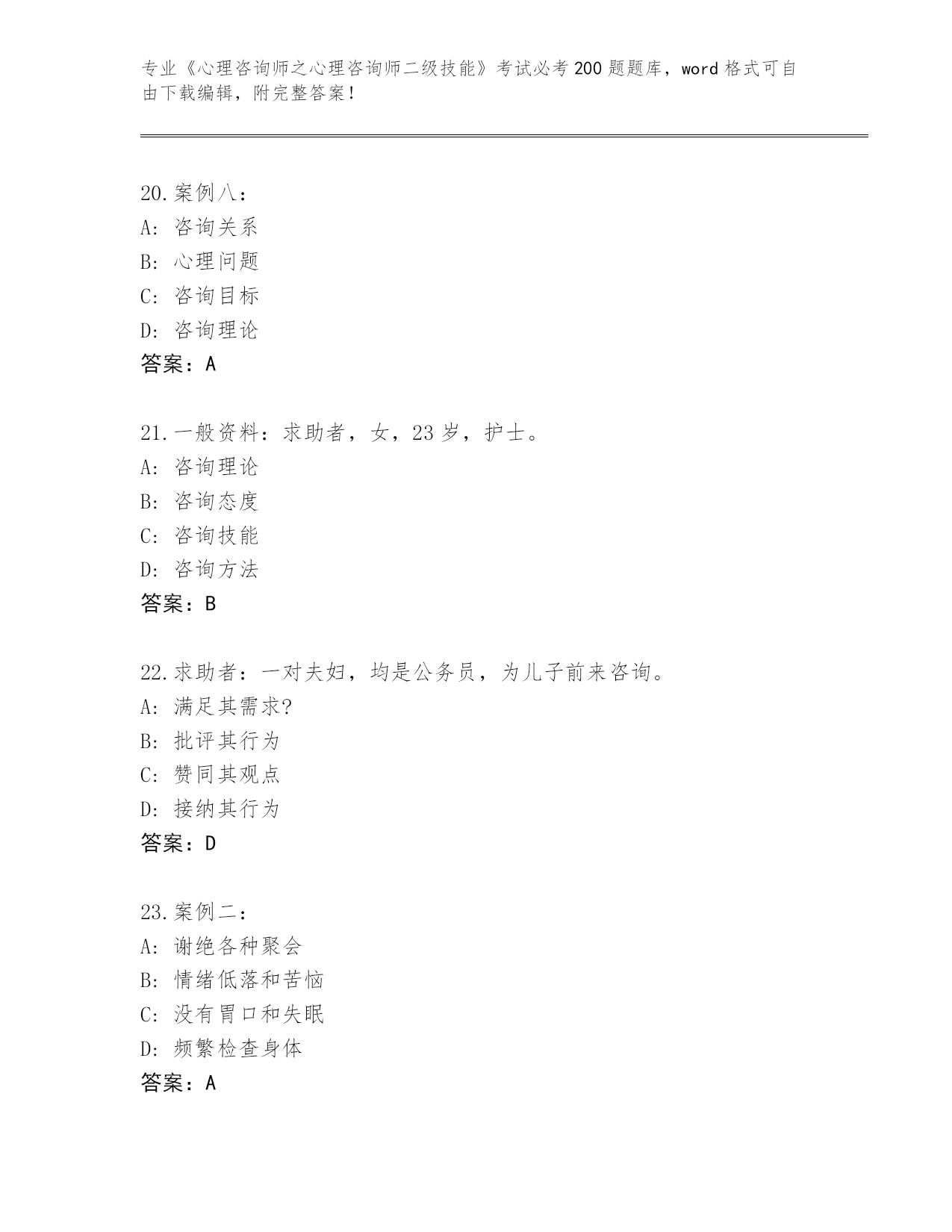 广东省麻章区《心理咨询师之心理咨询师二级技能》考试必考200题题库大全带答案(能力提升)