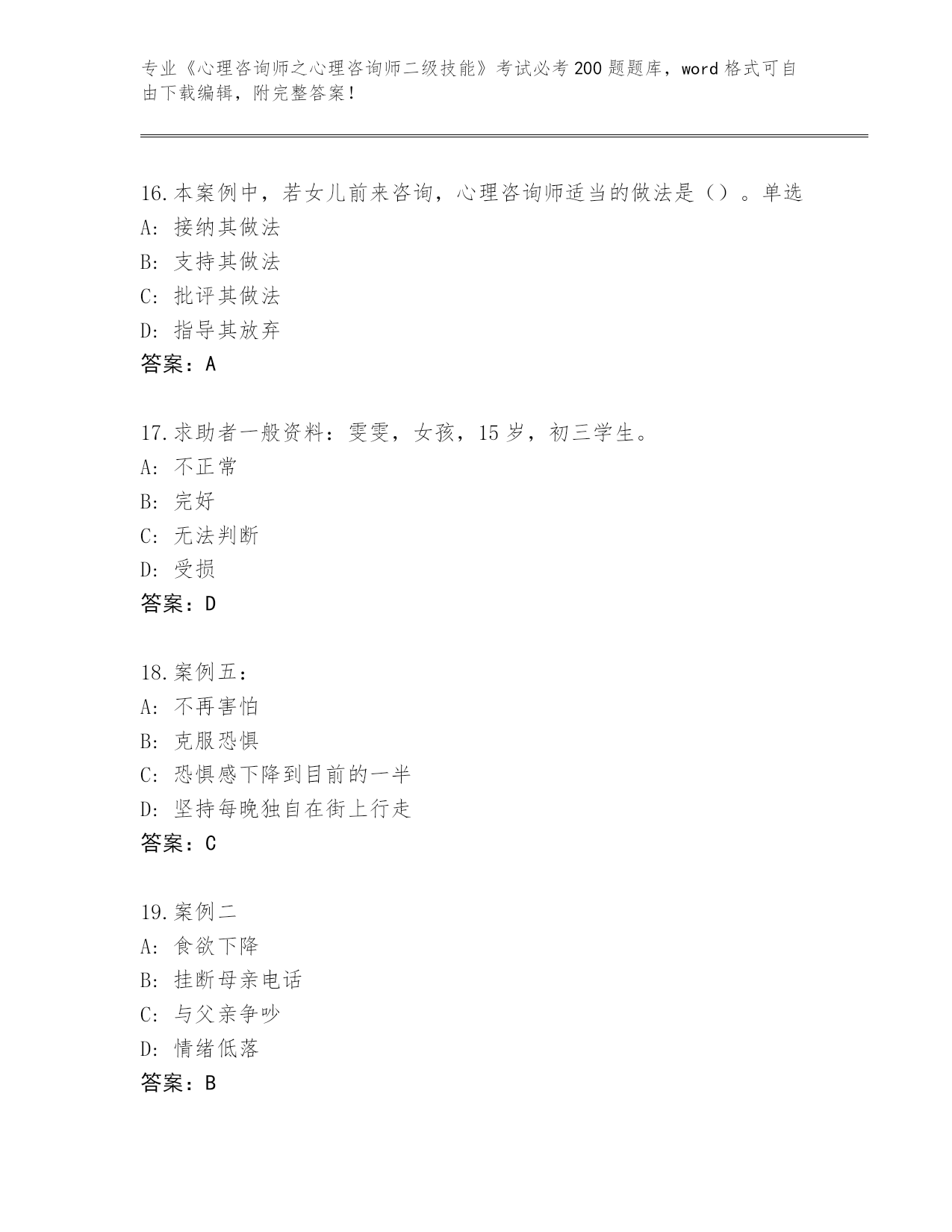 历年广东省云城区《心理咨询师之心理咨询师二级技能》考试必考200题大全及答案下载