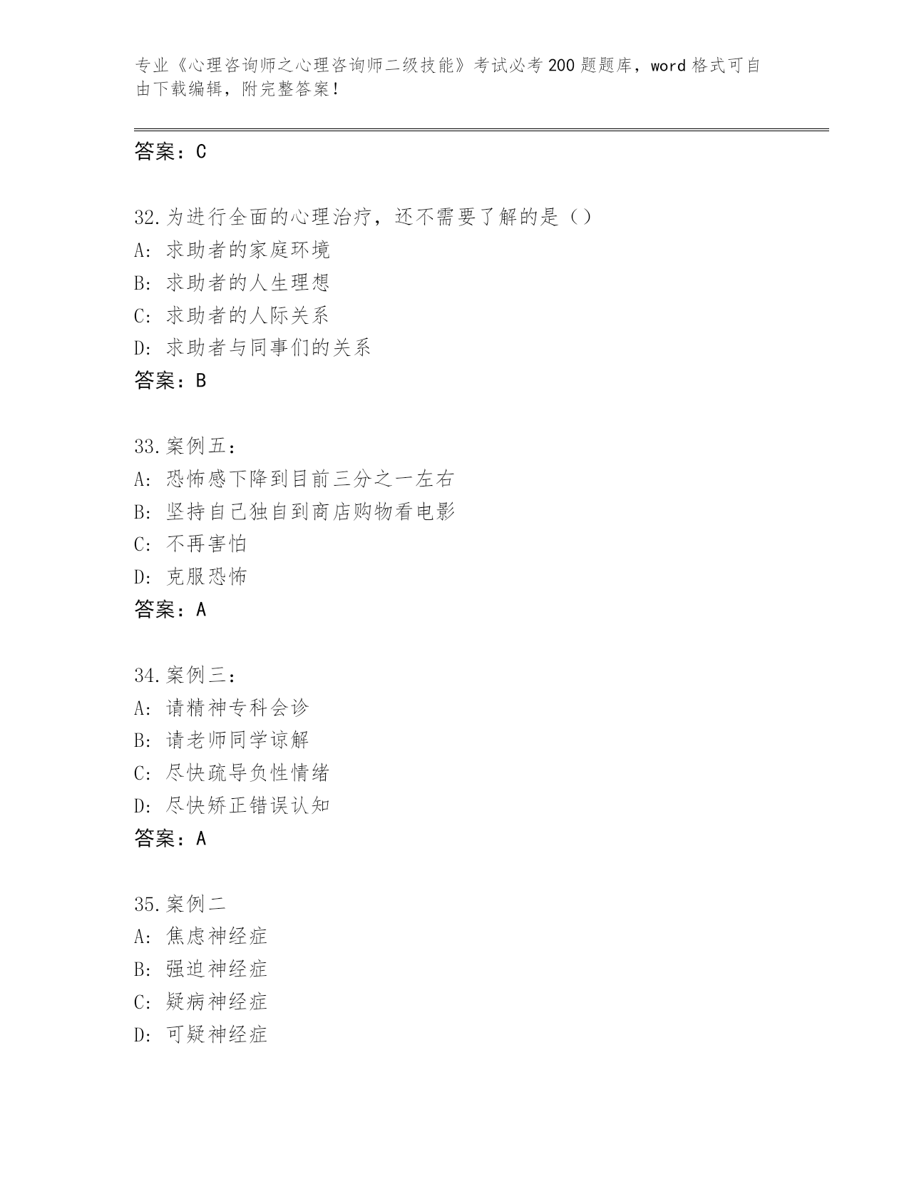 历年江苏省泰兴市《心理咨询师之心理咨询师二级技能》考试必考200题大全及参考答案(黄金题型)