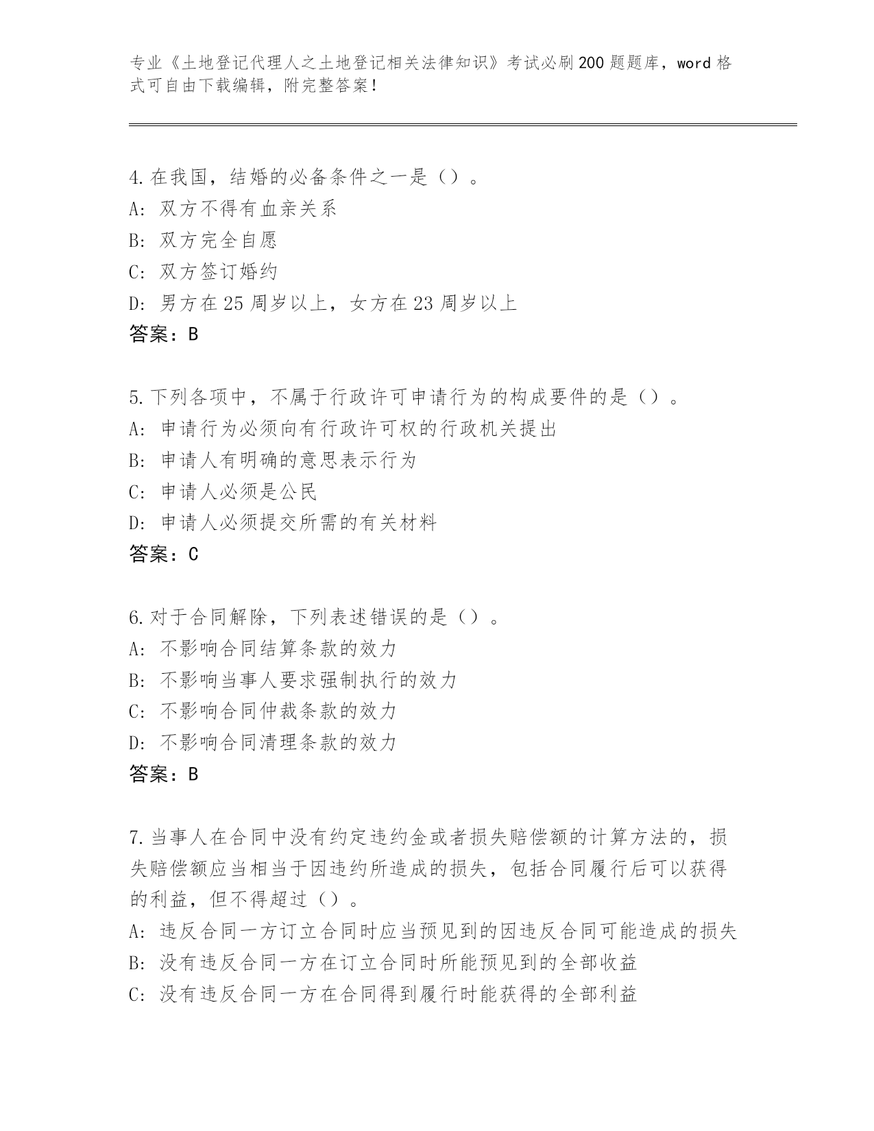 2024年江西省新干县《土地登记代理人之土地登记相关法律知识》资格考试必刷200题题库(突破训练)