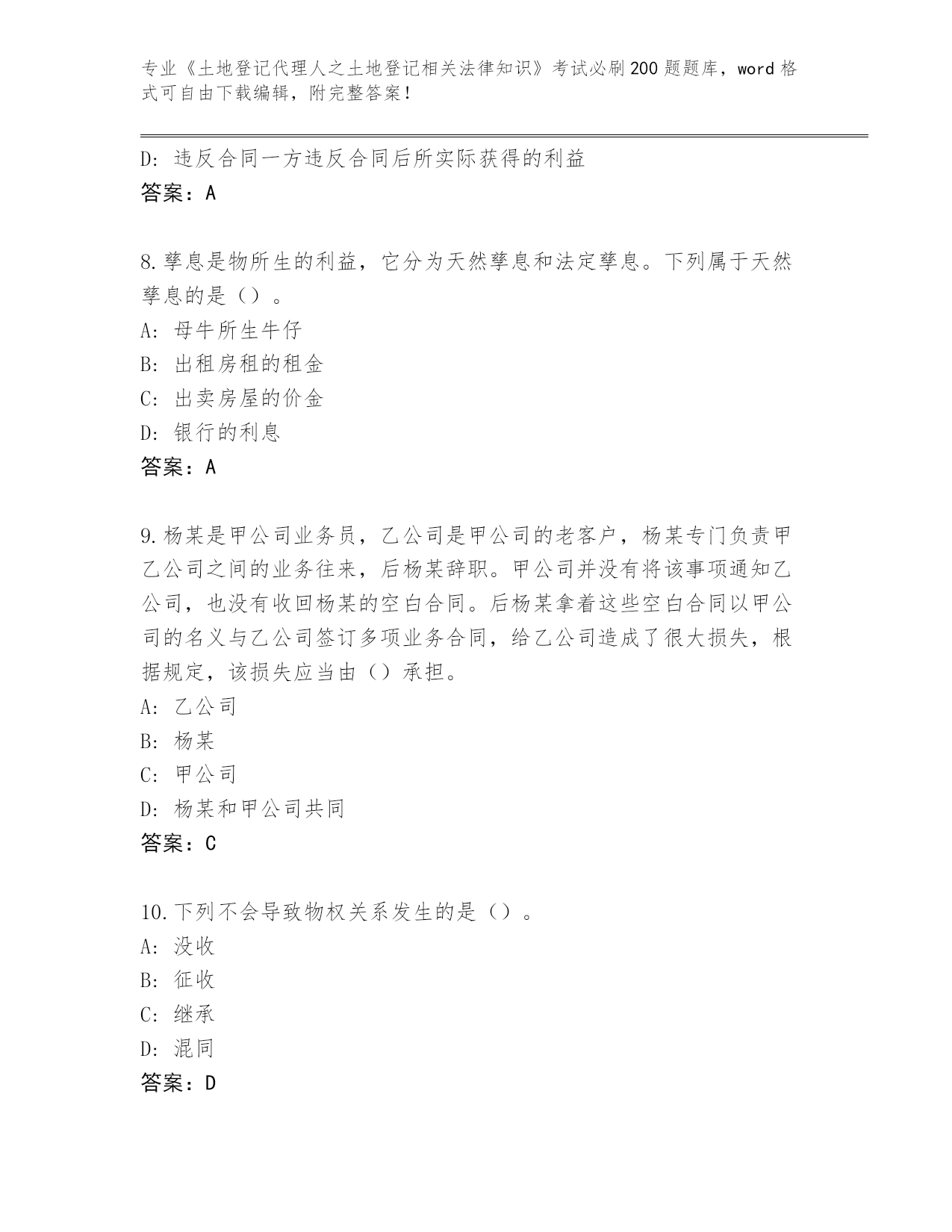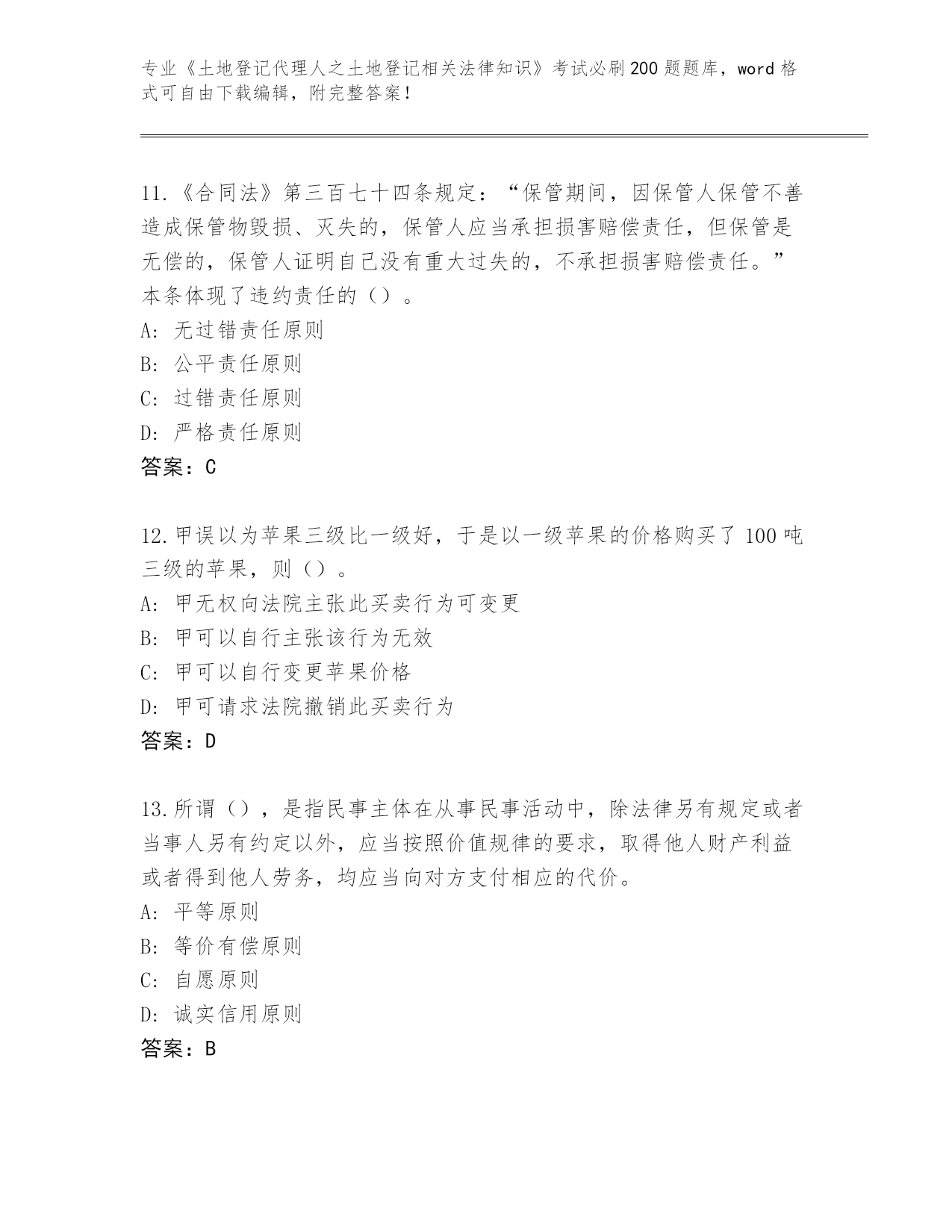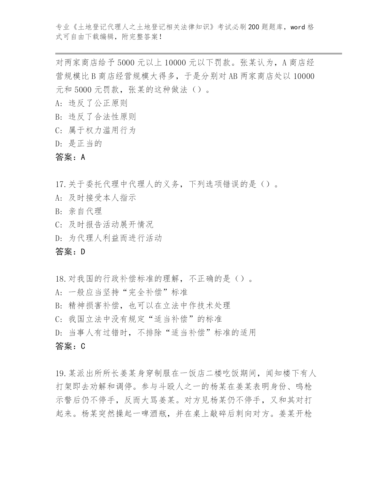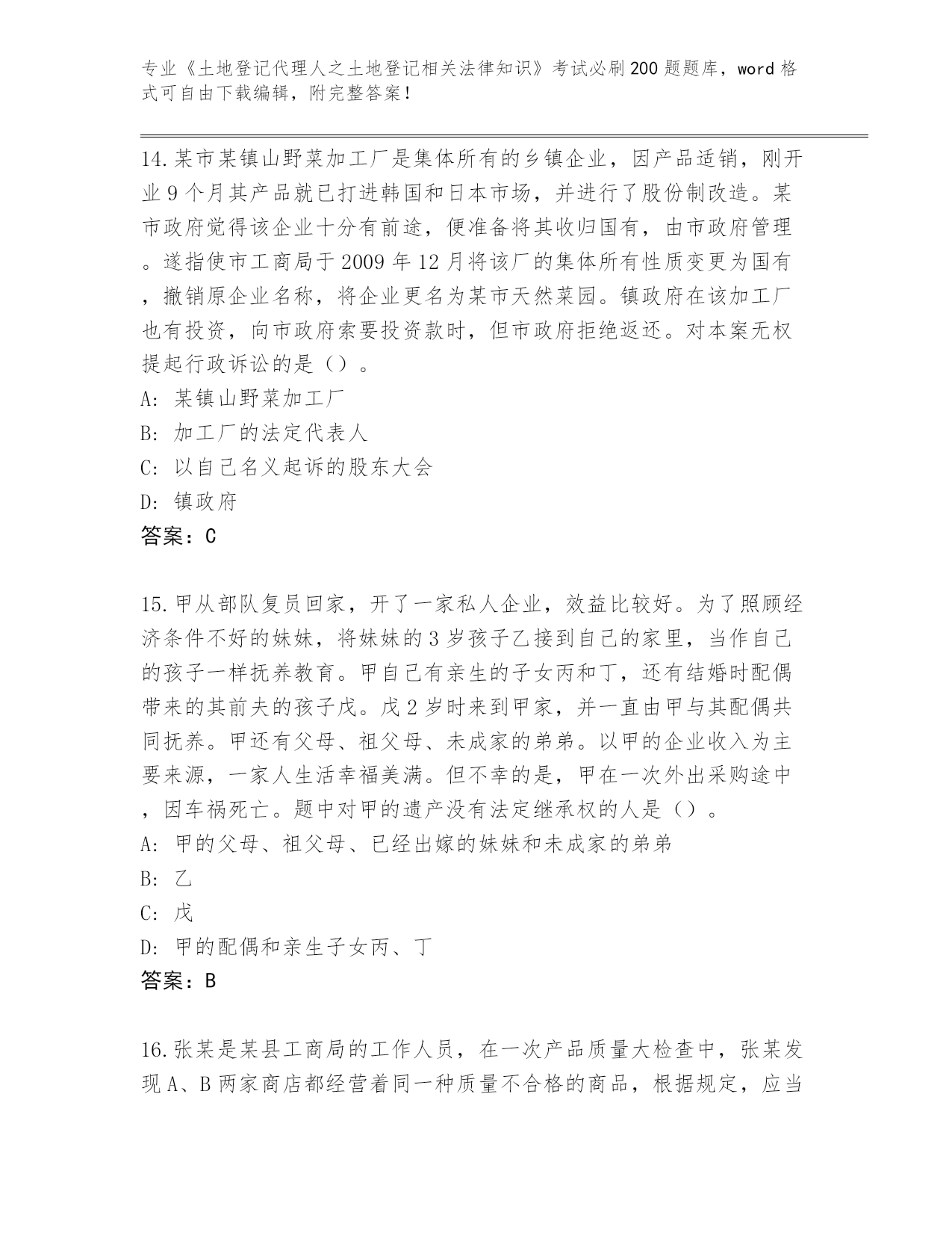 2024黑龙江省泰来县《土地登记代理人之土地登记相关法律知识》资格考试必刷200题真题(网校专用)