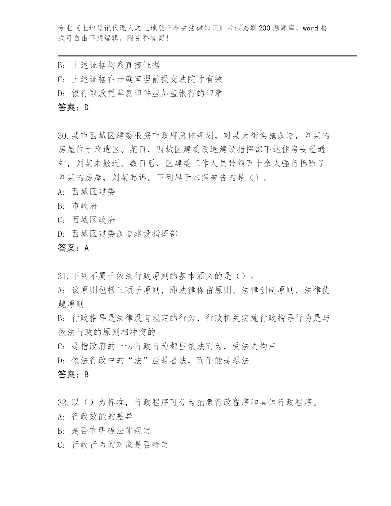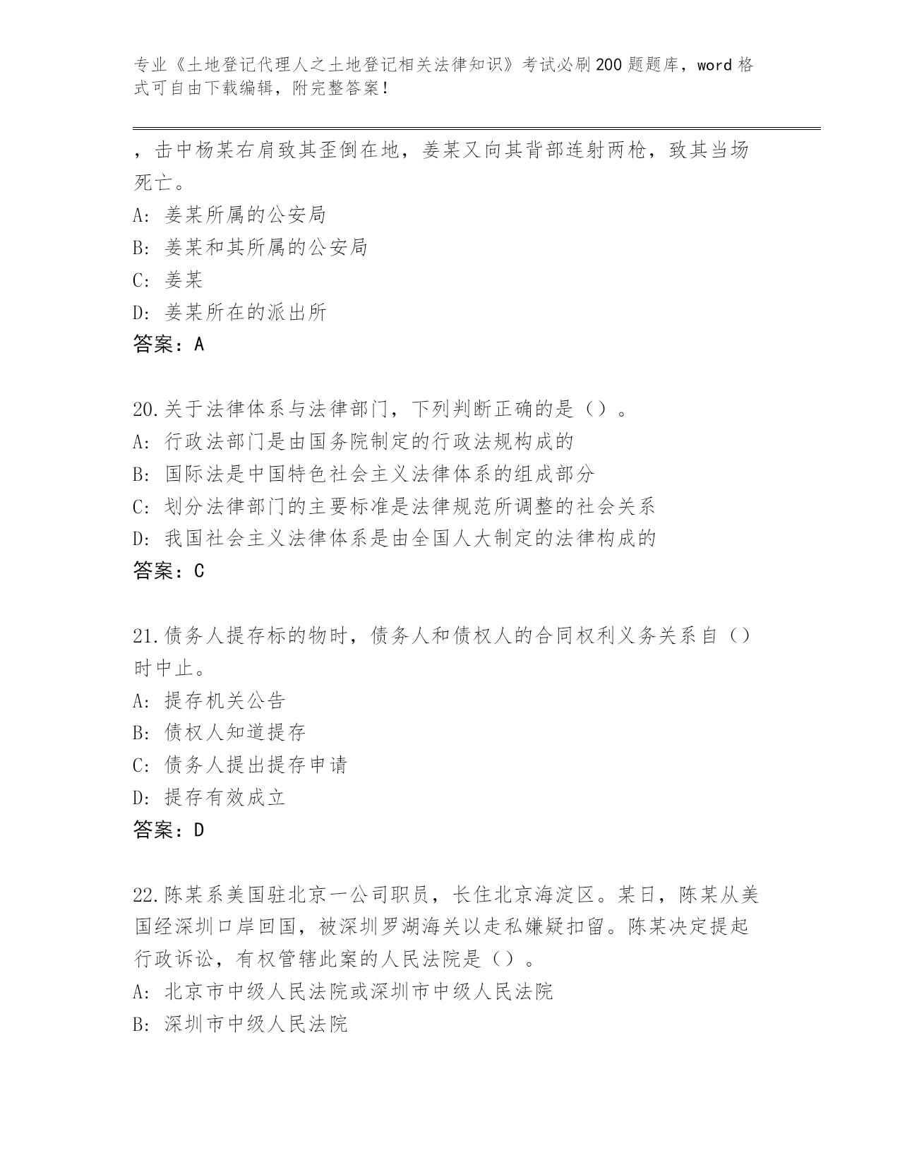 2024年陕西省《土地登记代理人之土地登记相关法律知识》考试必刷200题题库大全(考点梳理)