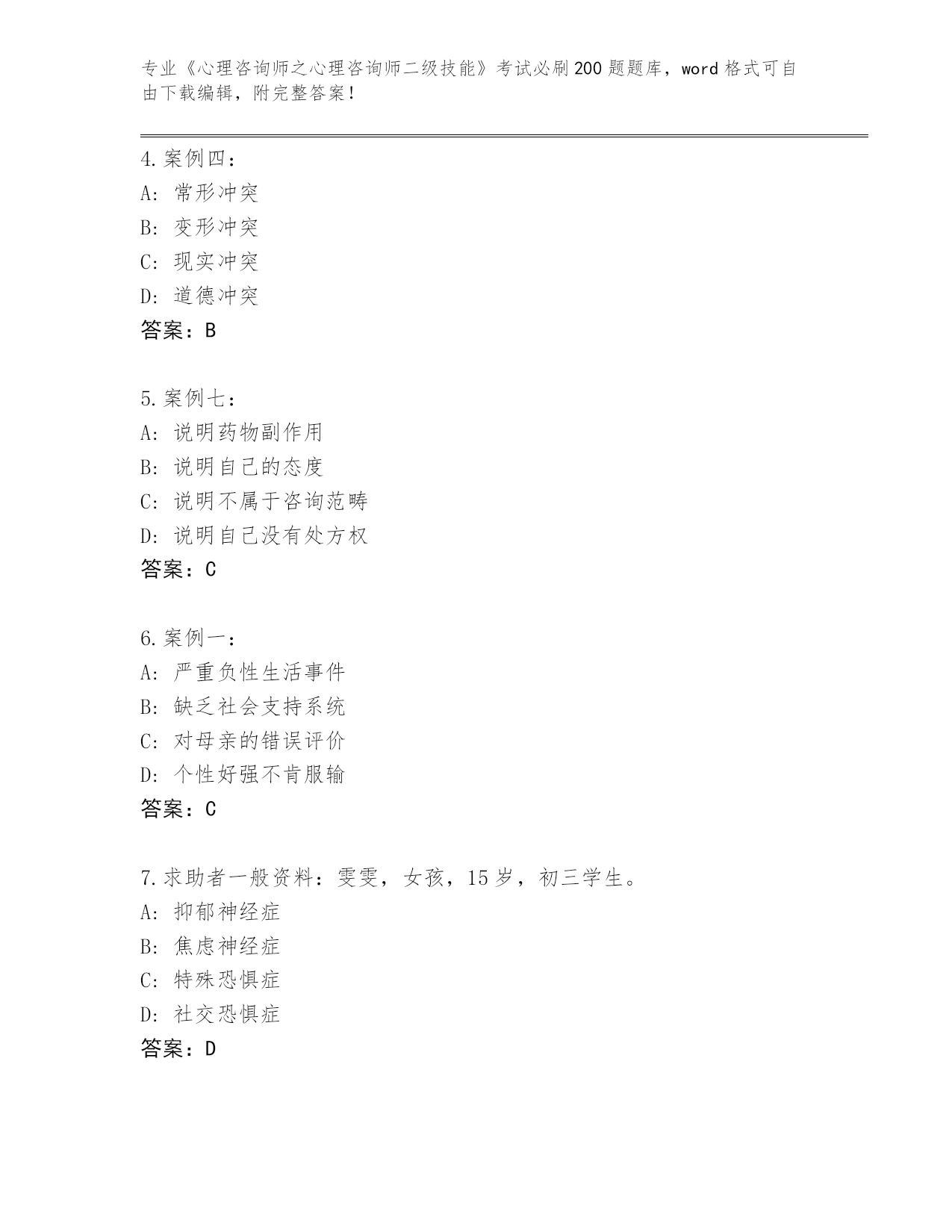 内部使用湖南省云溪区《心理咨询师之心理咨询师二级技能》考试必刷200题真题(历年真题)