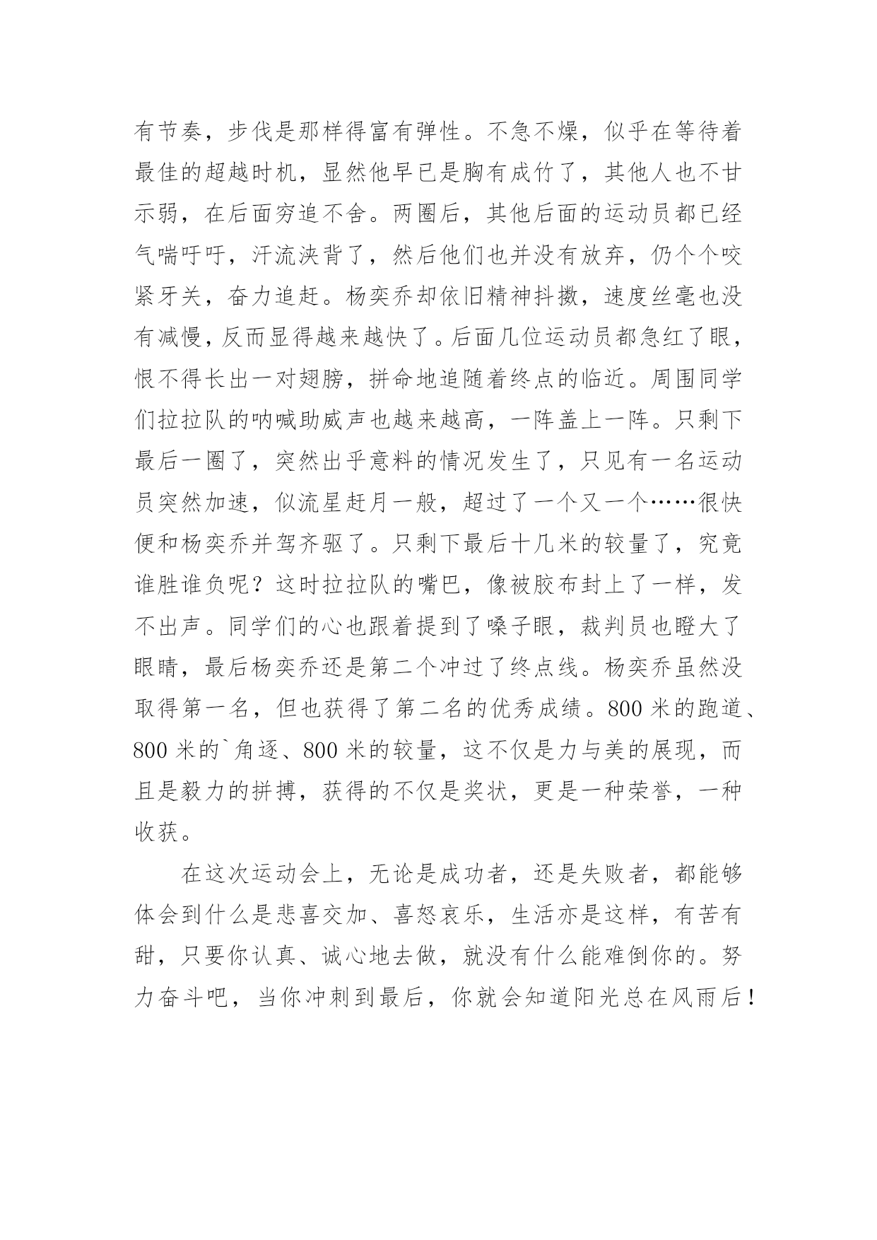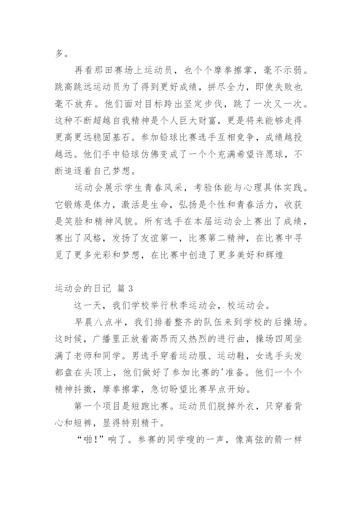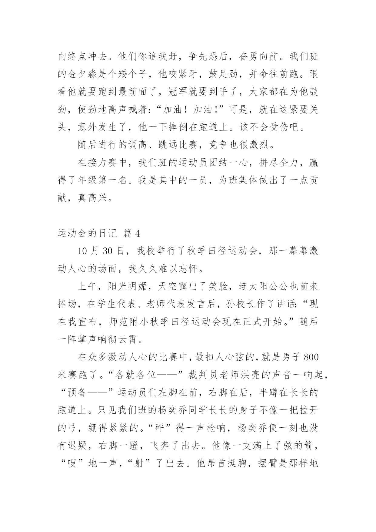 运动会的日记运动会的日记4篇(推荐)一天的时间即将结束了,相信大家这一天里都收获颇丰吧,想必是时候写一篇日记了。好的日记都具备一些什么特点呢?下面是小编整理的运动会的日记5篇,欢迎阅读,希望大家能够喜欢。运动会的日记篇1今天下午要举行趣味运动会,自打听了这个消息,同学们都开始窃窃私语……到了下午,比赛终于开始了。先是女生比,女生跑时,我扯着嗓子喊:“加油!加油!跑快点儿,加油!”但是结果却出乎意料,女生没能得第一,所以大家把希望寄托到我们男生身上。快到我们男生了,我们个个精神饱满,摩拳擦掌。到我们了,第一个跑的是王愚,他腿长,优势比较明显,但还是被别人超过了。到我时,我拼尽全力,听着大家的`加油声,我心中只有一个念头:跑、跑、跑,使劲地跑,拼命地跑,决不给班级丢脸。我像一头小牛犊拼命狂奔起来,幸好我没有被超过。回到班里,我拼命地喊加油,喊得我脸红脖子粗,嗓子都哑了。“看,范严森,他要超过一班了,超过了,超过了……”我们班全部沸腾了。趣味运动会结束了,我们是第一,尽管学校没有宣布成绩,但我们早已心花怒放了。运动会的日记篇2在这秋高气爽九月里,我们迎着秋日阳光,伴随着收获季节,迎来了欢快精彩校运动会。一大早,全校师生就来到了运动场,他们有安排场地,有整理服装,有安放运动器材,忙得不亦乐乎,原本寂静赛场一下子热闹起来。随着宣布运动会正式开始,各班队伍依次入场。此时进行曲骤然响起,一个又一个班级排着整齐队形,大踏步向主席台走来。他们个个衣着鲜艳,面带笑容,昂首阔步,展示出青年特有朝气与活力。当大会宣布运动比赛正式开始,整个赛场顿时沸腾起来,加油助威声此起彼伏,络绎不绝。你看那径赛场上运动员,一个个如矫兔般飞离起点,像利箭般冲向终点,引得在场观众兴奋不已。不论选手是否获得第一,他们都会得到观众赞美和鼓励。因为在观众心中,这些运动员都发挥出了不屈不挠,顽强拼搏体育精神,他们是运动场上英雄,是贸易学校“刘翔”。女子800米和男子1500米是考验选手体力和毅力项目。它虽然不如短跑那样让人兴奋,令人激动,但是绝对比短跑更加让人感动。在比赛中,选手要面临不仅是身体上考验,更是心理上考验。参加这个项目运动员真正体现了努力拼搏,永不服输运动精神,它给我们感受远比成绩要丰富多。再看那田赛场上运动员,也个个摩拳擦掌,毫不示弱。跳高跳远运动员为了得到更好成绩,拼尽全力,即使失败也毫不放弃。他们面对目标跨出坚定步伐,跳了一次又一次。这种不断超越自我精神是个人巨大财富,更是将来能够走得更高更远稳固基石。参加铅球比赛选手互相竞争,成绩越投越远。他们手中铅球仿佛变成了一个个充满希望许愿球,不断追逐着自己梦想。运动会展示学生青春风采,考验体能与心理具体实践。它锻炼是体力,激活是生命,弘扬是个性和青春活力,收获是笑脸和精神风貌。所有选手在本届运动会上赛出了成绩,赛出了风格,发扬了友谊第一,比赛第二精神,在比赛中寻觅了更多光彩和梦想,在比赛中创造了更多美好和辉煌运动会的日记篇3这一天,我们学校举行秋季运动会,校运动会。早晨八点半,我们排着整齐的队伍来到学校的后操场。这时候,广播里正放着高昂而又热烈的进行曲,操场四周坐满了老师和同学。男选手穿着运动服、运动鞋,女选手头发都盘在头顶上,他们做好了参加比赛的'准备。他们一个个精神抖擞,摩拳擦掌,急切盼望比赛早点开始。第一个项目是短跑比赛。运动员们脱掉外衣,只穿着背心和短裤,显得特别精干。“啪!”响了。参赛的同学嗖的一声,像离弦的箭一样向终点冲去。他们你追我赶,争先恐后,奋勇向前。我们班的金夕淼是个矮个子,他咬紧牙,鼓足劲,并命往前跑。眼看他就要跑到最前面了,冠军就要到手了,大家都在为他鼓劲,使劲地高声喊着:“加油!加油!”可是,就在这紧要关头,意外发生了,他一下摔倒在跑道上。该不会受伤吧。随后进行的调高、跳远比赛,竞争也很激烈。在接力赛中,我们班的运动员团结一心,拼尽全力,赢得了年级第一名。我是其中的一员,为班集体做出了一点贡献,真高兴。运动会的日记篇410月30日,我校举行了秋季田径运动会,那一幕幕激动人心的场面,我久久难以忘怀。上午,阳光明媚,天空露出了笑脸,连太阳公公也前来捧场,在学生代表、老师代表发言后,孙校长作了讲话:“现在我宣布,师范附小秋季田径运动会现在正式开始。”随后一阵掌声响彻云霄。在众多激动人心的比赛中,最扣人心弦的,就是男子800米赛跑了。“各就各位——”裁判员老师洪亮的声音一响起,“预备——”运动员们左脚在前,右脚在后,半蹲在长长的跑道上。只见我们班的杨奕乔同学长长的身子不像一把拉开的弓,绷得紧紧的。“砰”得一声枪响,杨奕乔便一刻也没有迟疑,右脚一蹬,飞奔了出去。他像一支满上了弦的箭,“嗖”地一声,“射”了出去。他昂首挺胸,摆臂是那样地有节奏,步伐是那样得富有弹性。不急不燥,似乎在等待着最佳的超越时