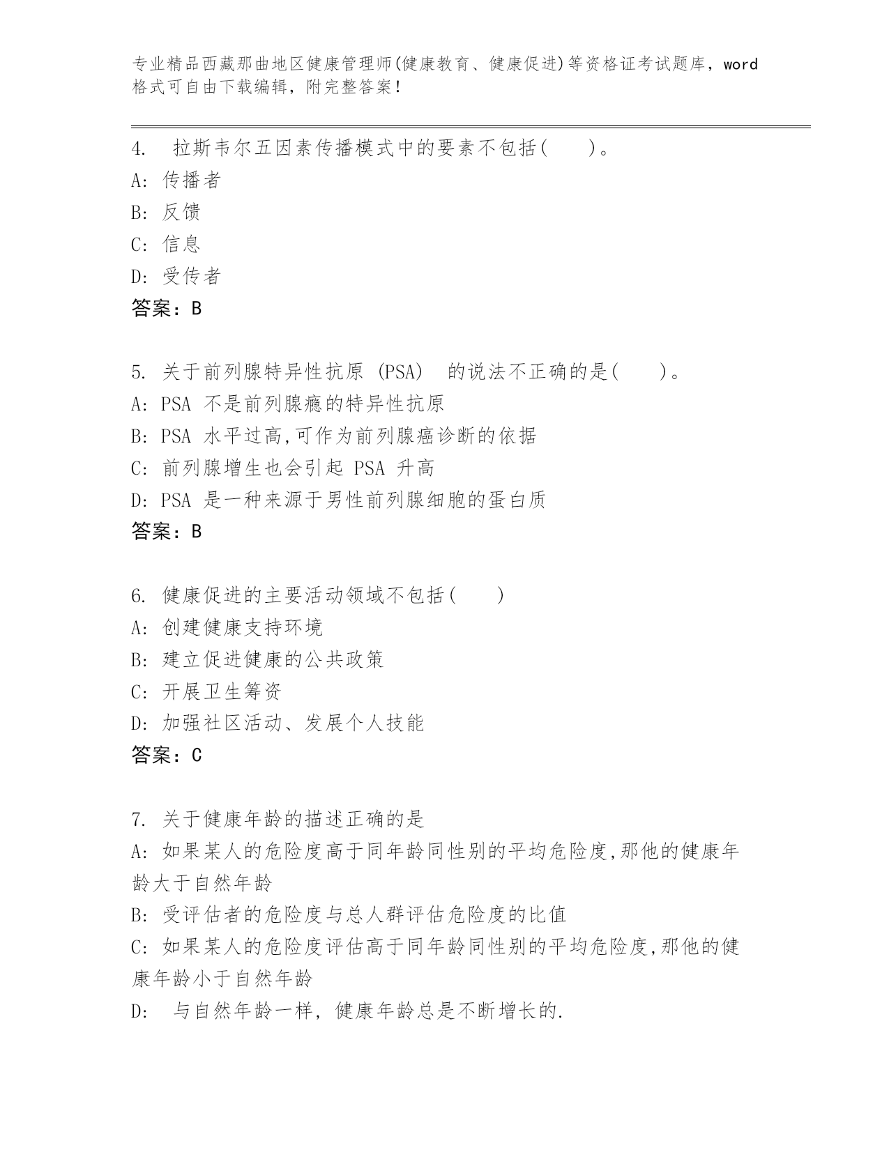 精编西藏那曲地区健康管理师(健康教育、健康促进)等资格证考试【满分必刷】.docx