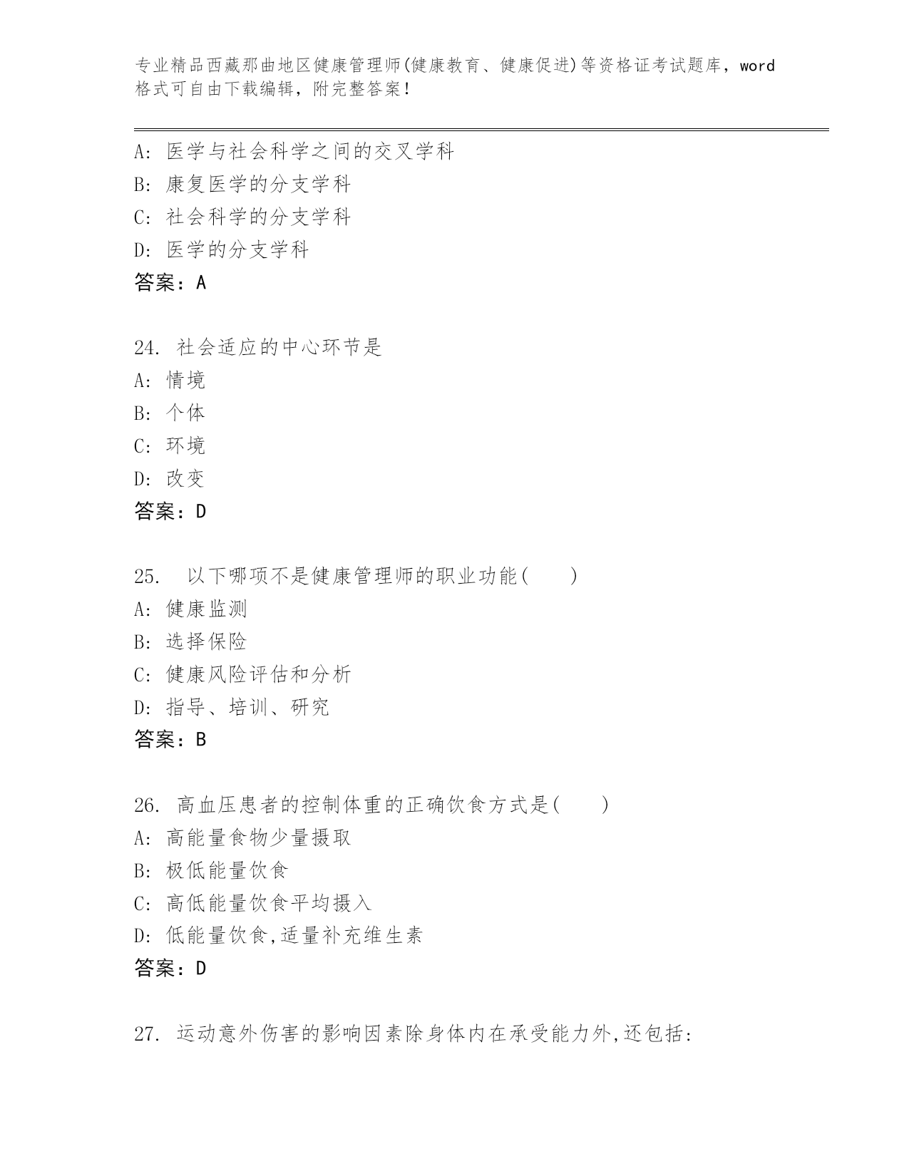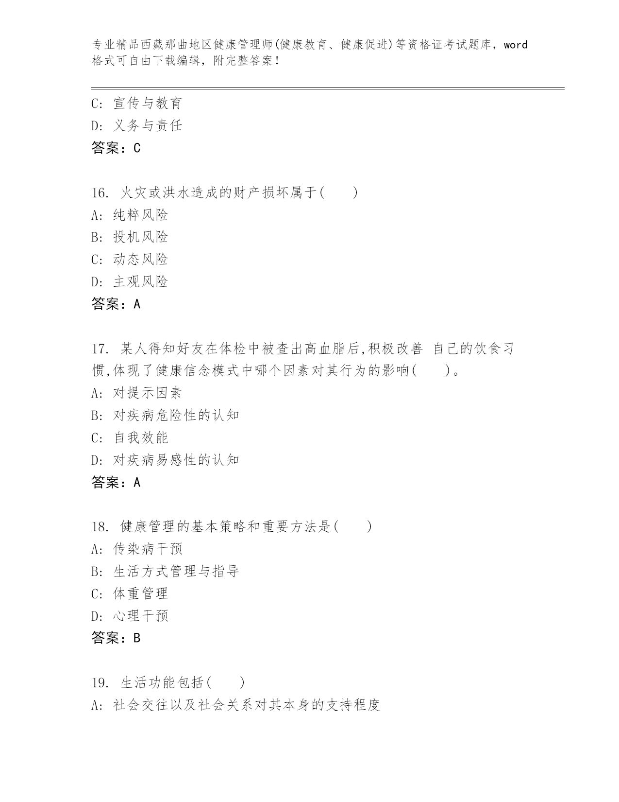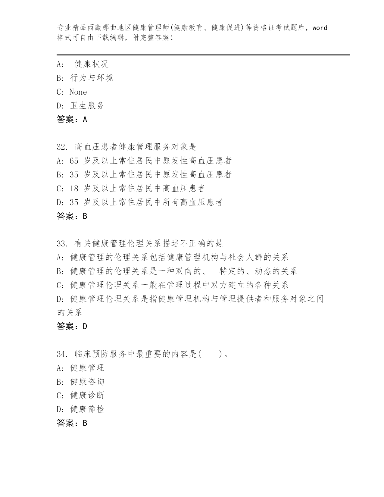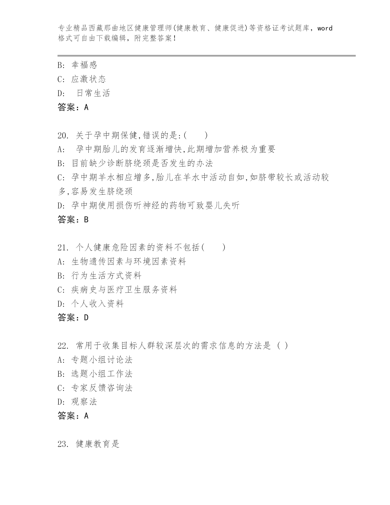 精编西藏那曲地区健康管理师(健康教育、健康促进)等资格证考试【满分必刷】