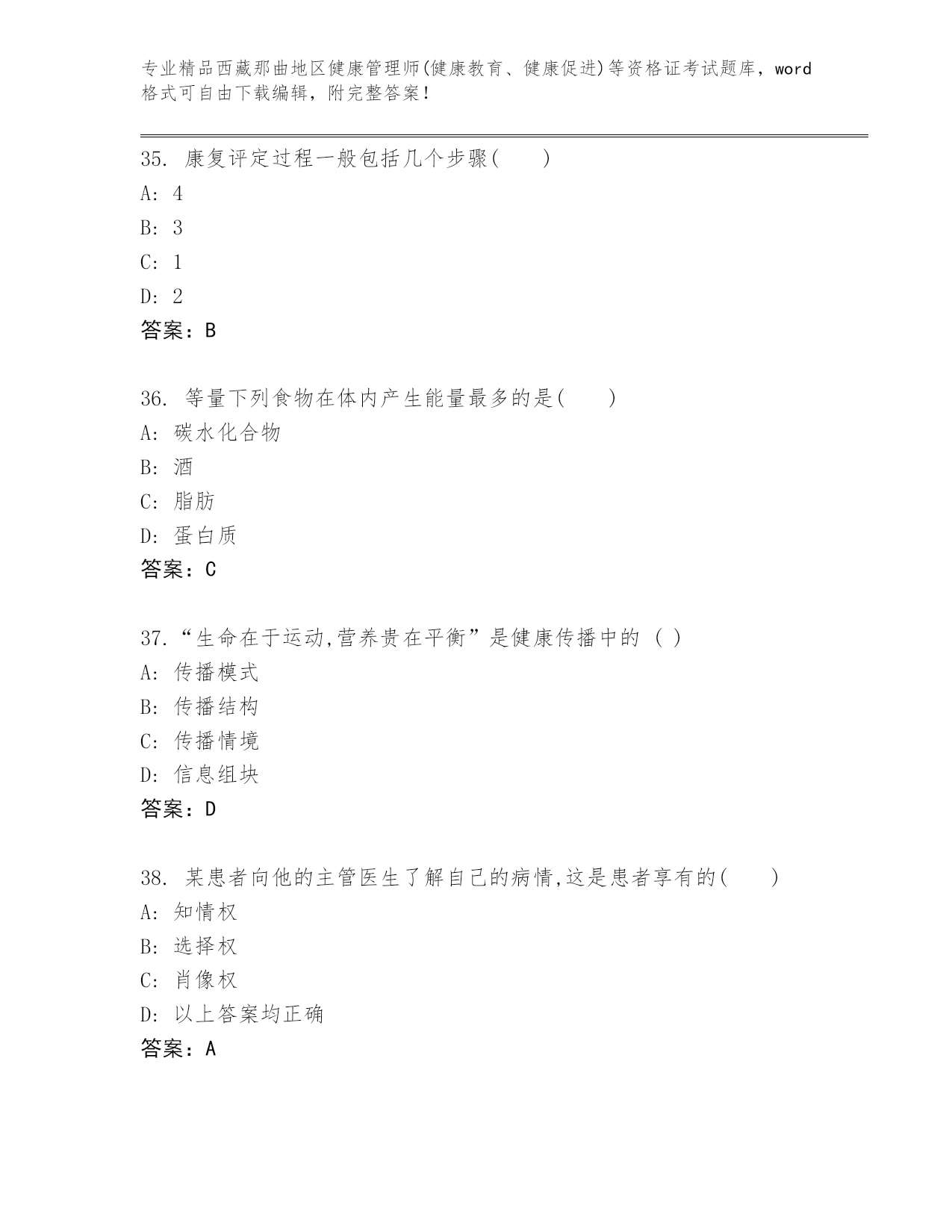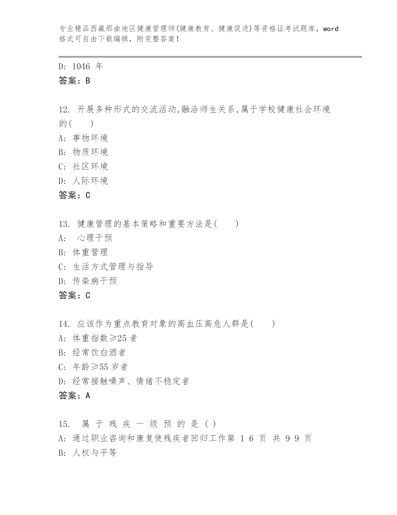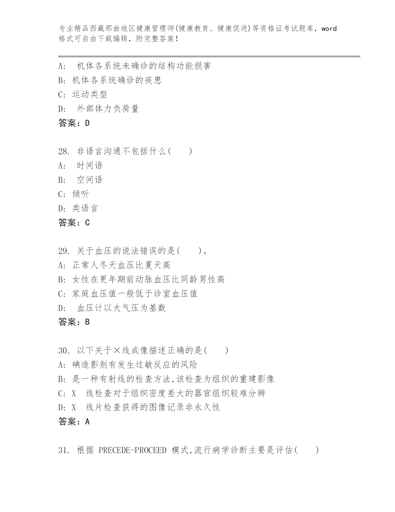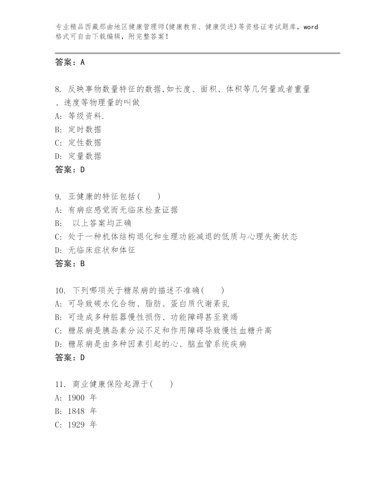 精编西藏那曲地区健康管理师(健康教育、健康促进)等资格证考试【满分必刷】