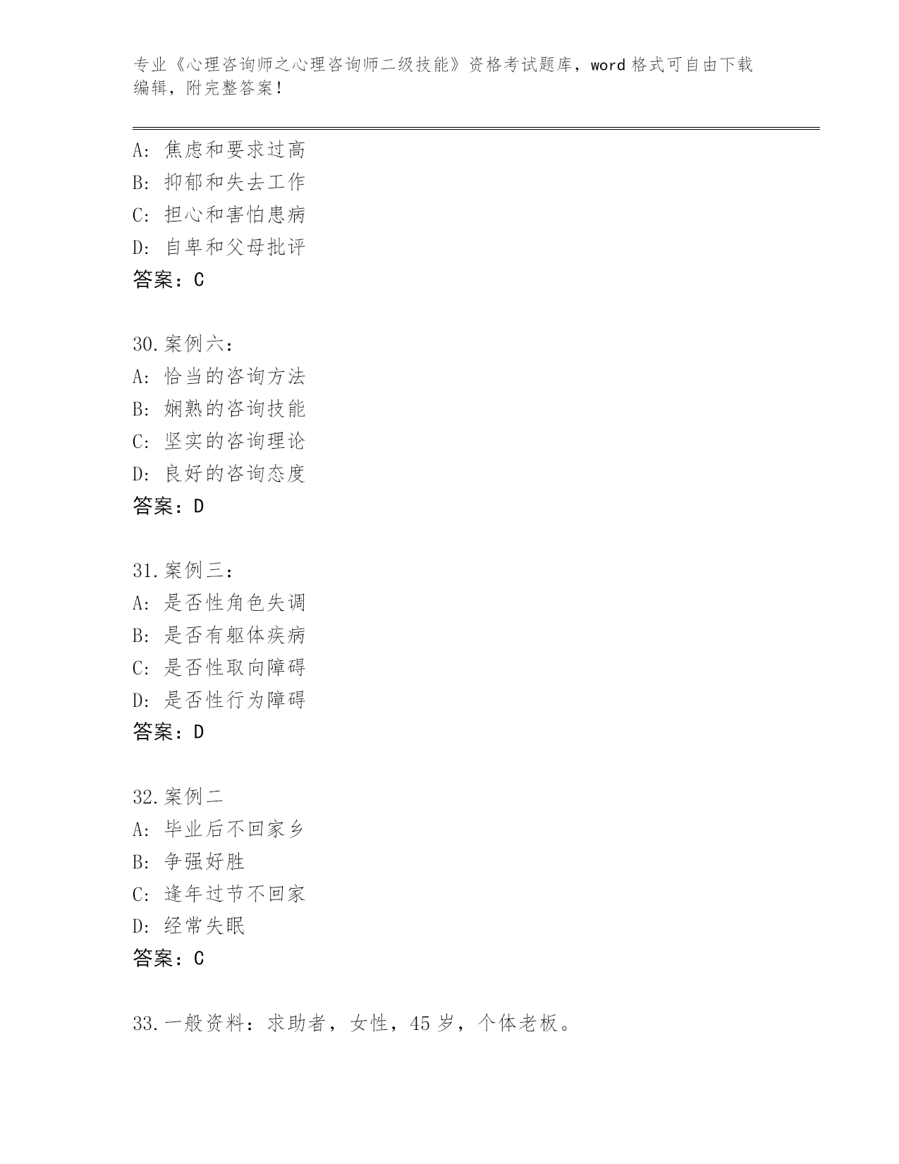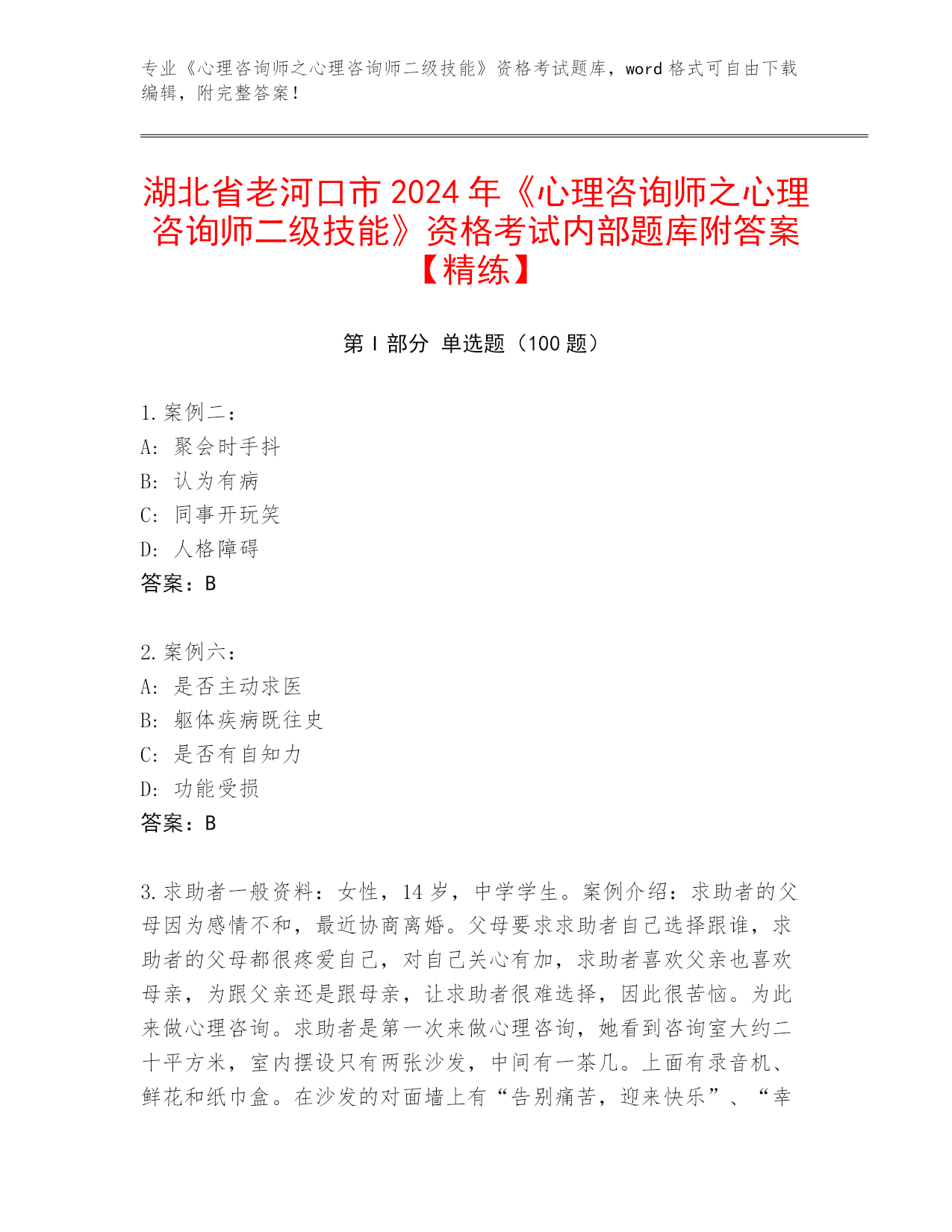 2024湖北省老河口市《心理咨询师之心理咨询师二级技能》资格考试题库附答案解析