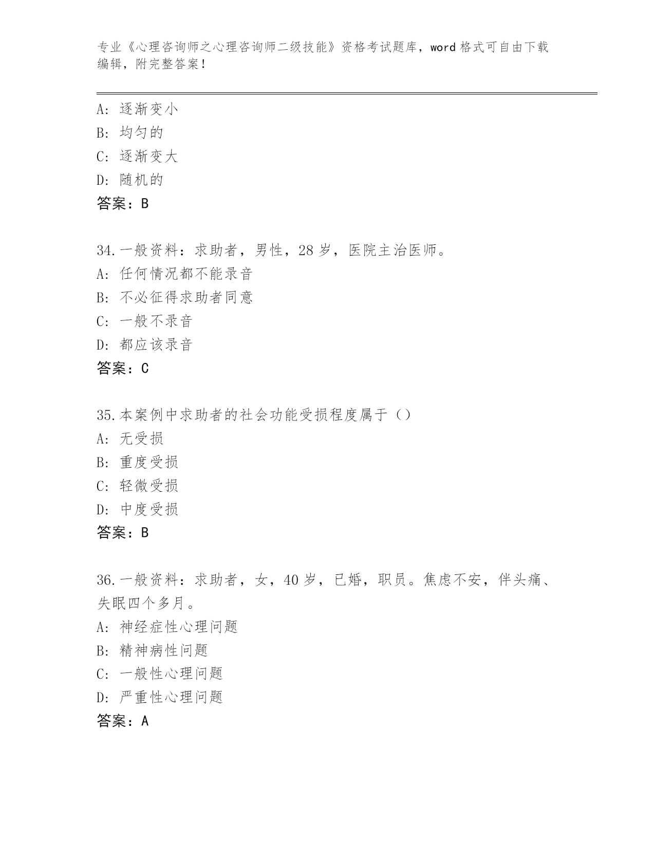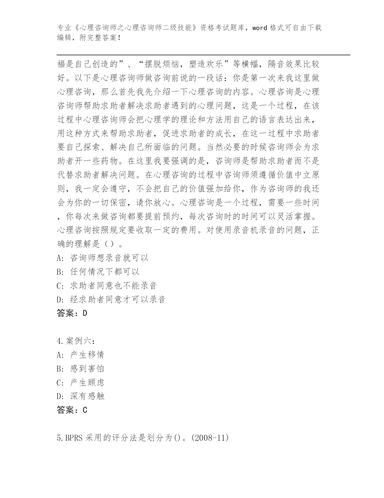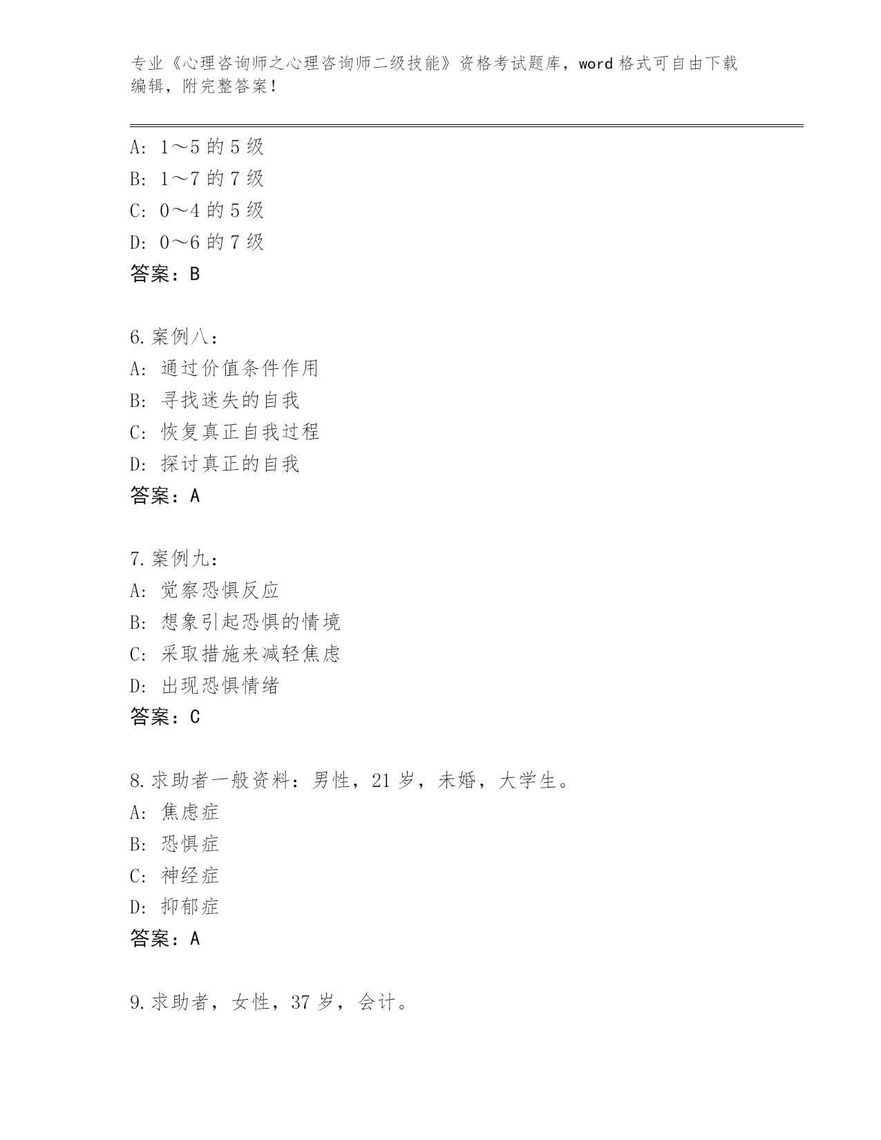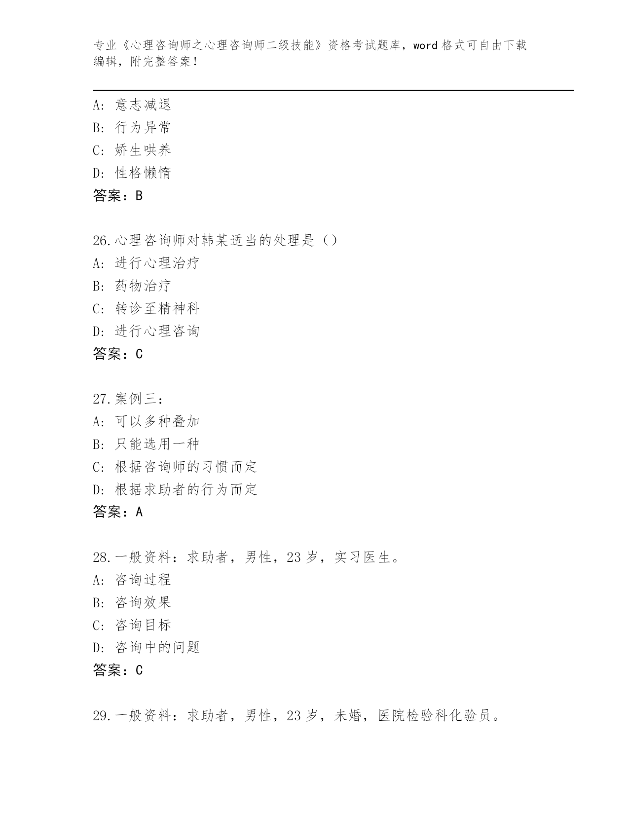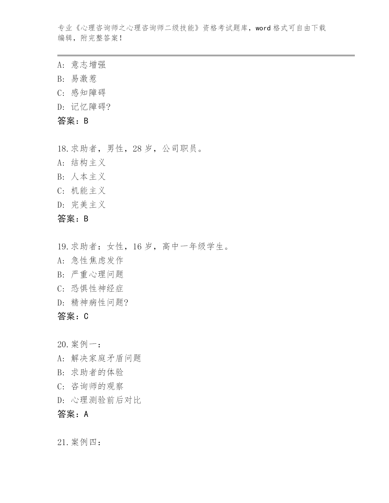 湖北省老河口市《心理咨询师之心理咨询师二级技能》考试必刷200题内部题库附答案(巩固)