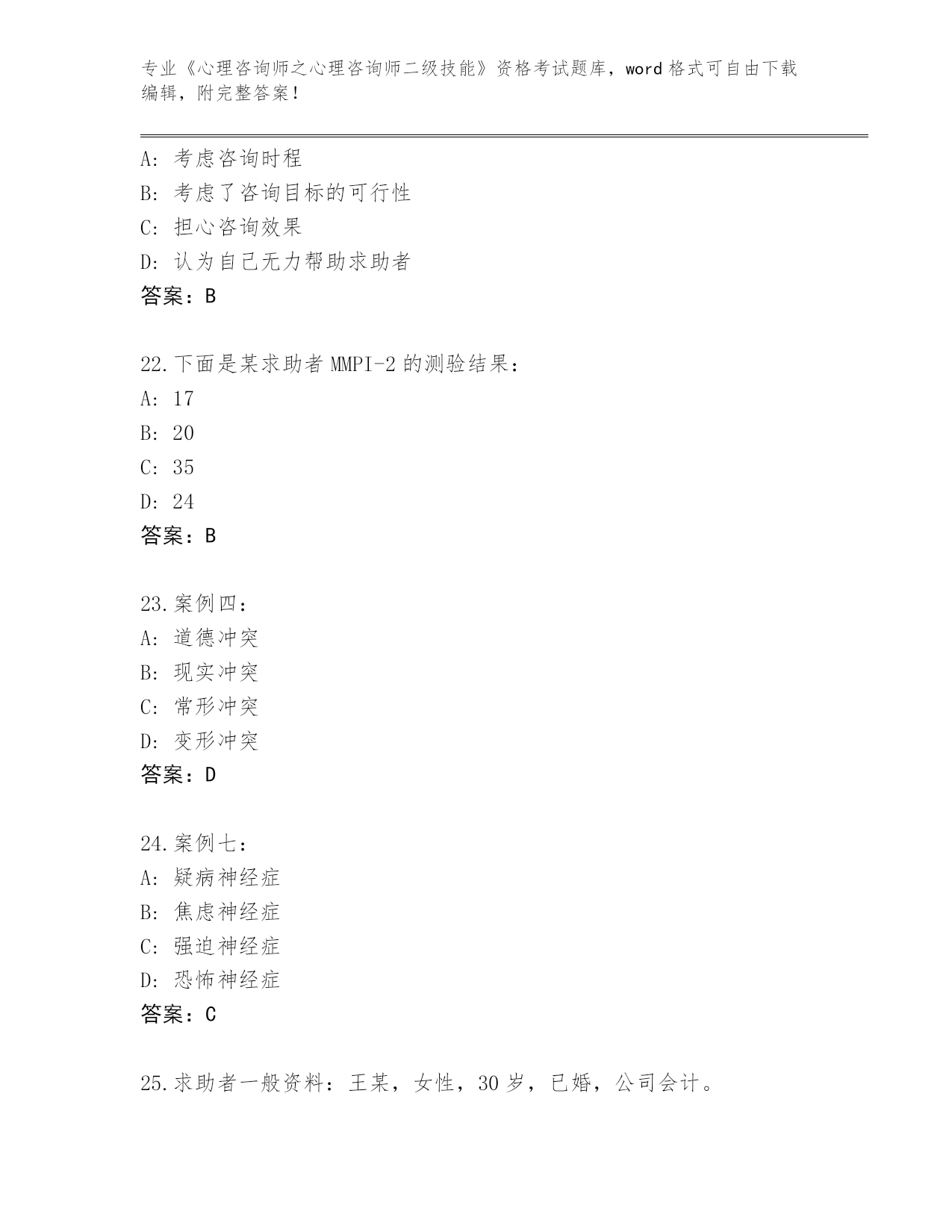 湖北省江汉区2024年《心理咨询师之心理咨询师二级技能》资格考试内部题库(精练)