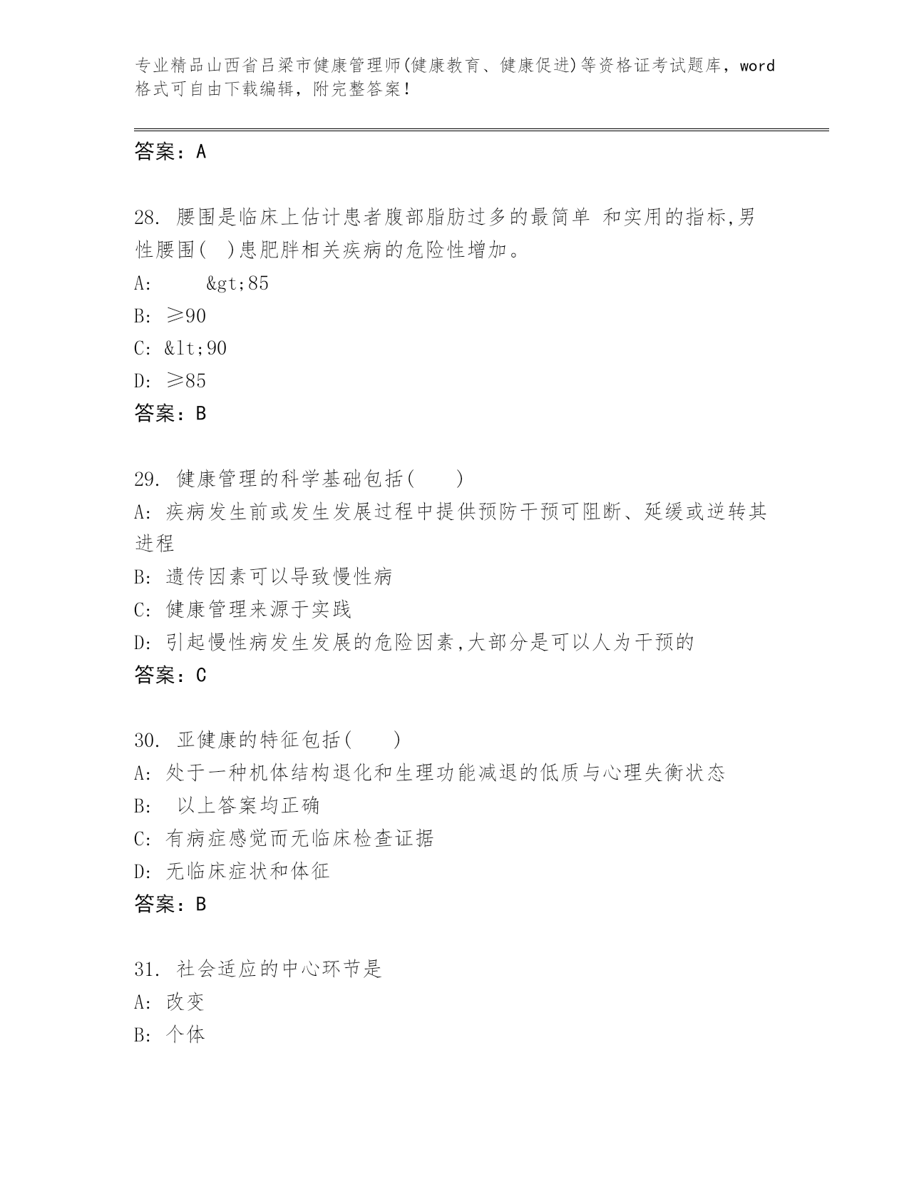 历年山西省吕梁市健康管理师(健康教育、健康促进)等资格证考试大全【B卷】.docx