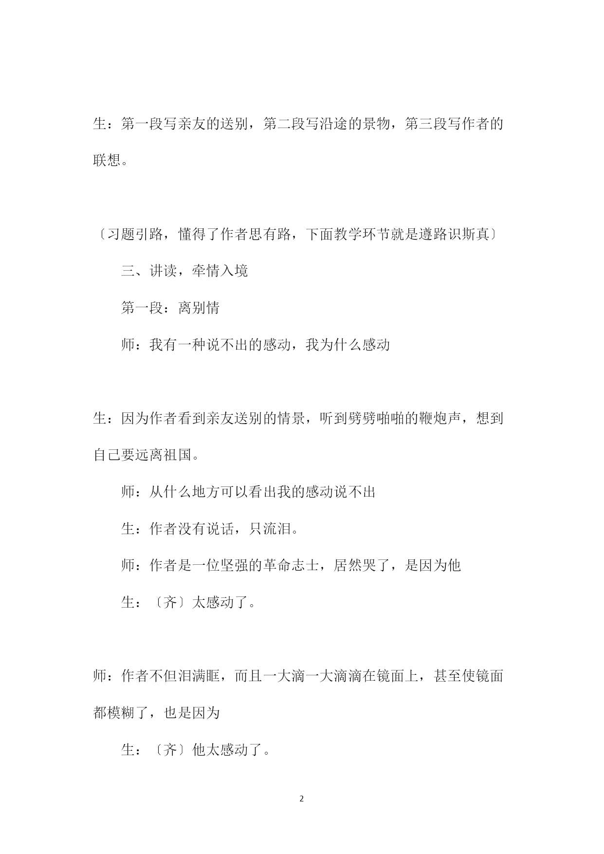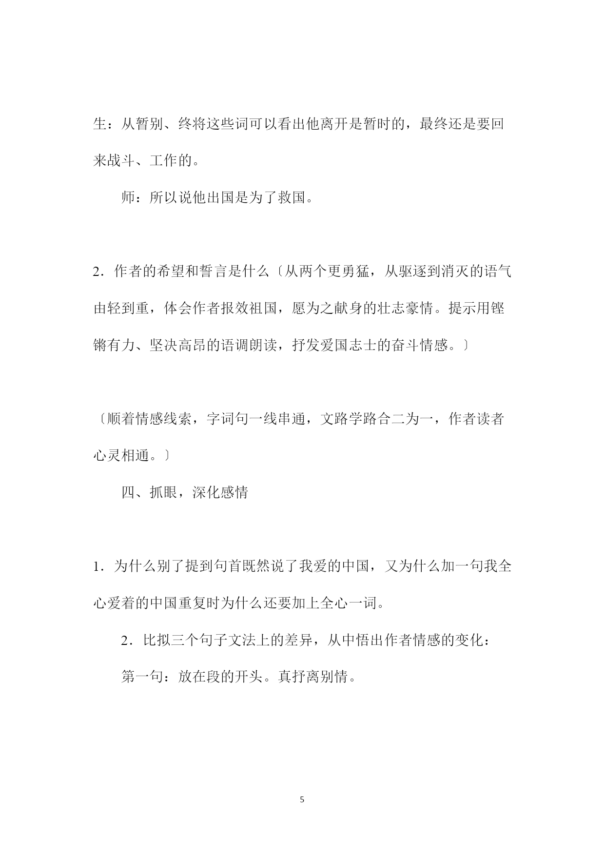 2022小学语文六年级下册教案——《别了,我爱的中国》教学实录
