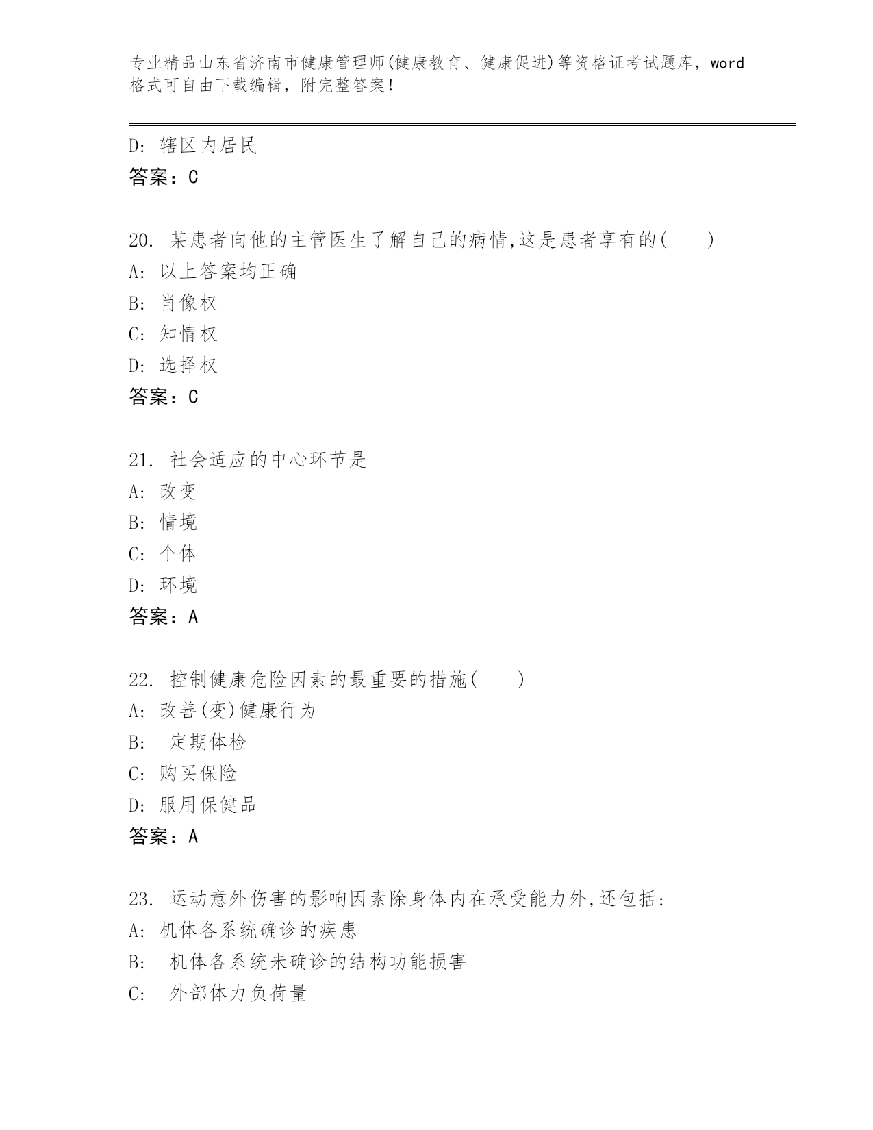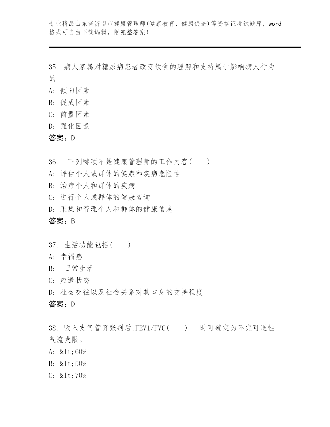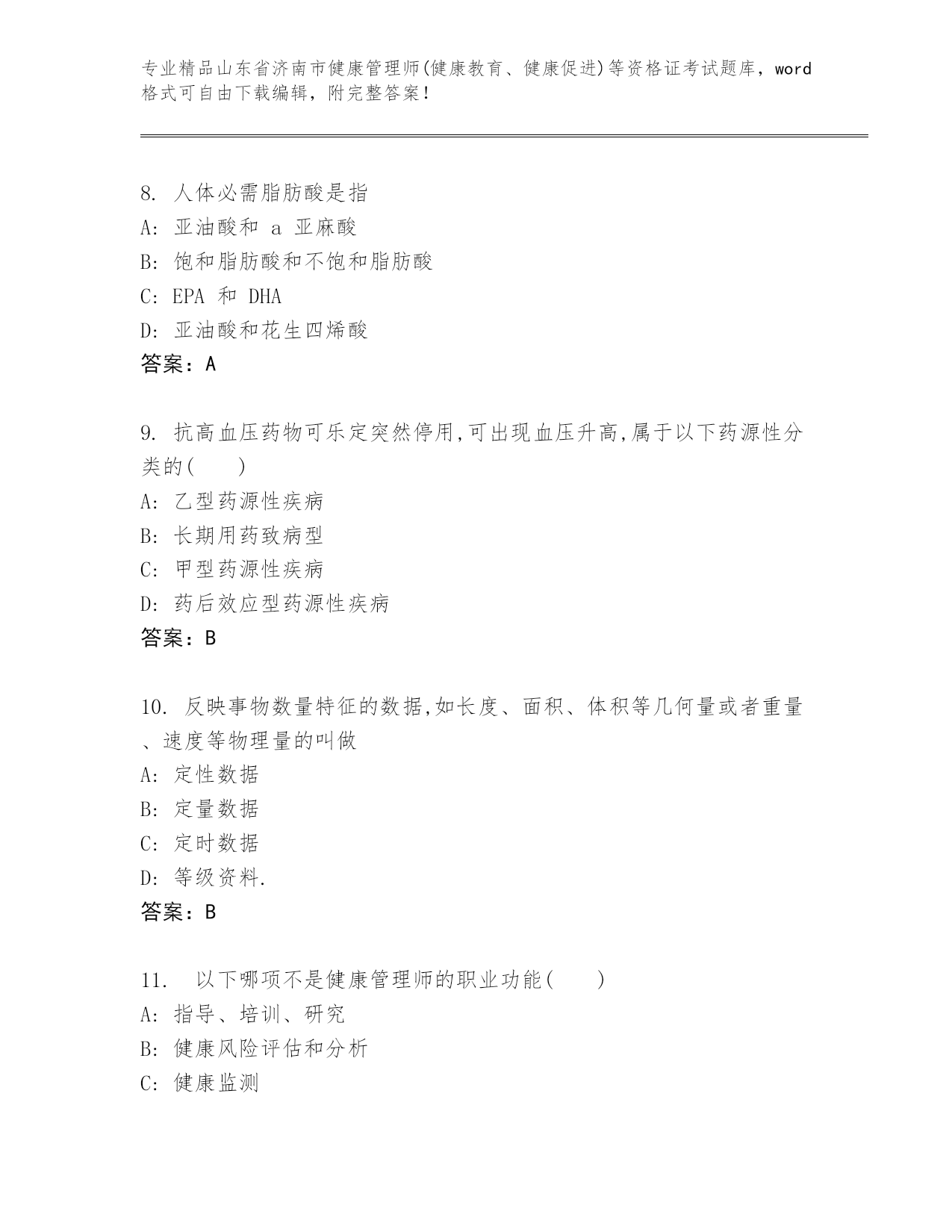 精心整理山东省济南市健康管理师(健康教育、健康促进)等资格证考试大全答案下载